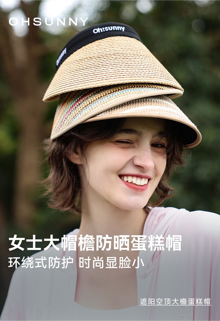 商品名称:防晒空顶草帽户外旅行女春夏防紫外线大檐显脸小遮阳太阳帽子 093325