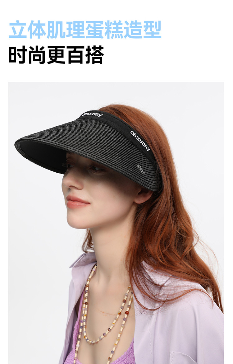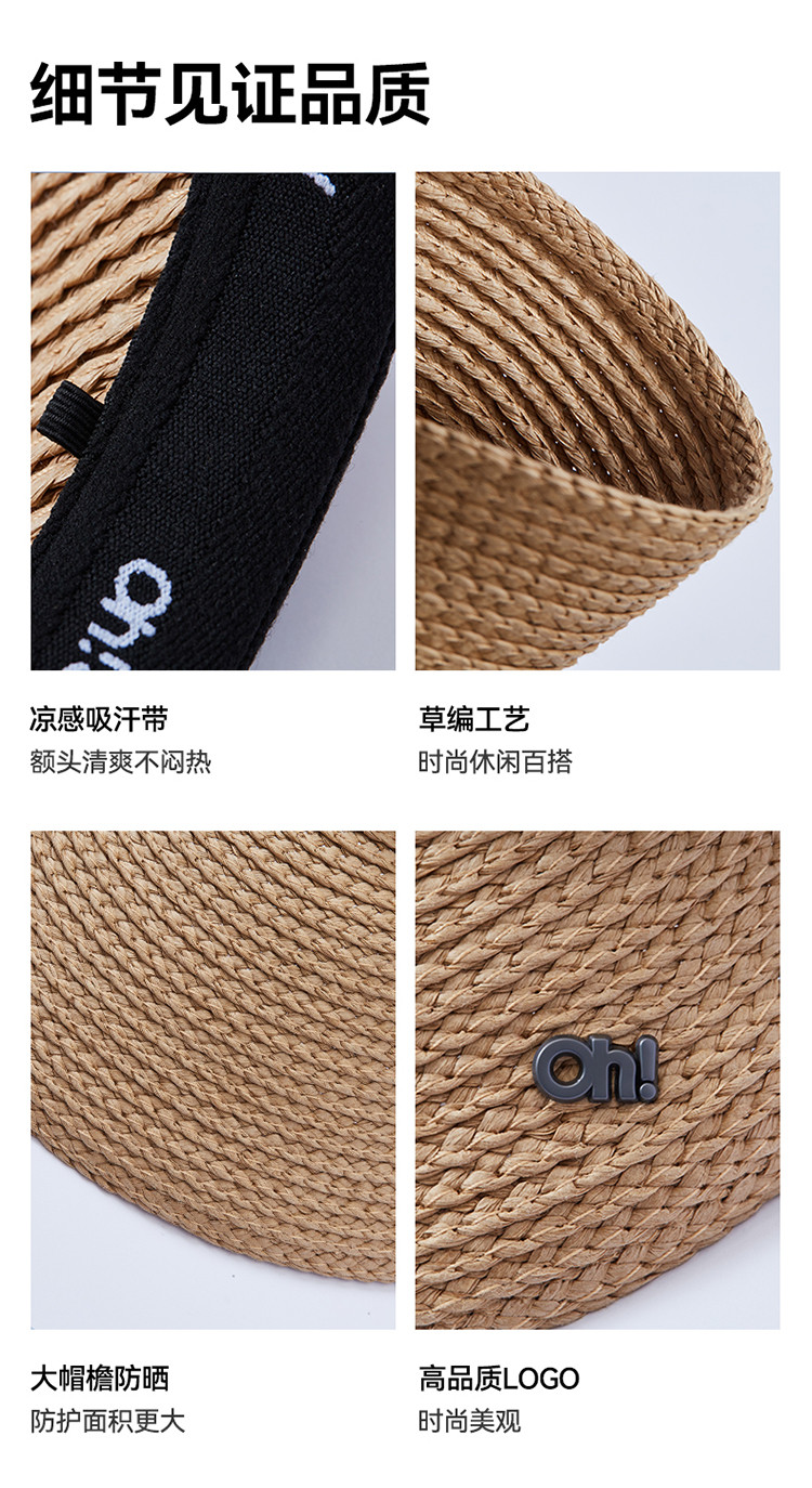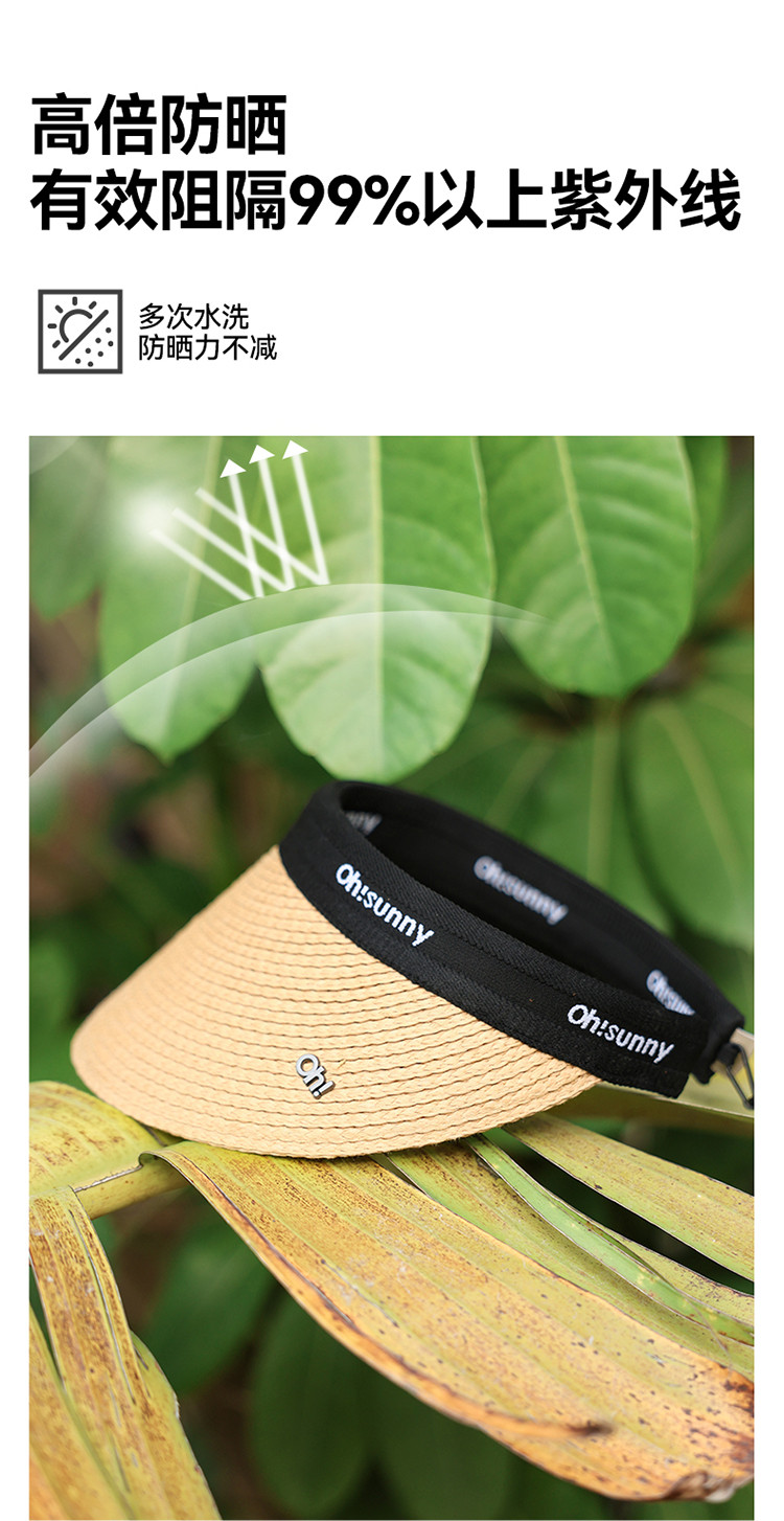 防晒空顶草帽户外旅行女春夏防紫外线大檐显脸小遮阳太阳帽子 093325
