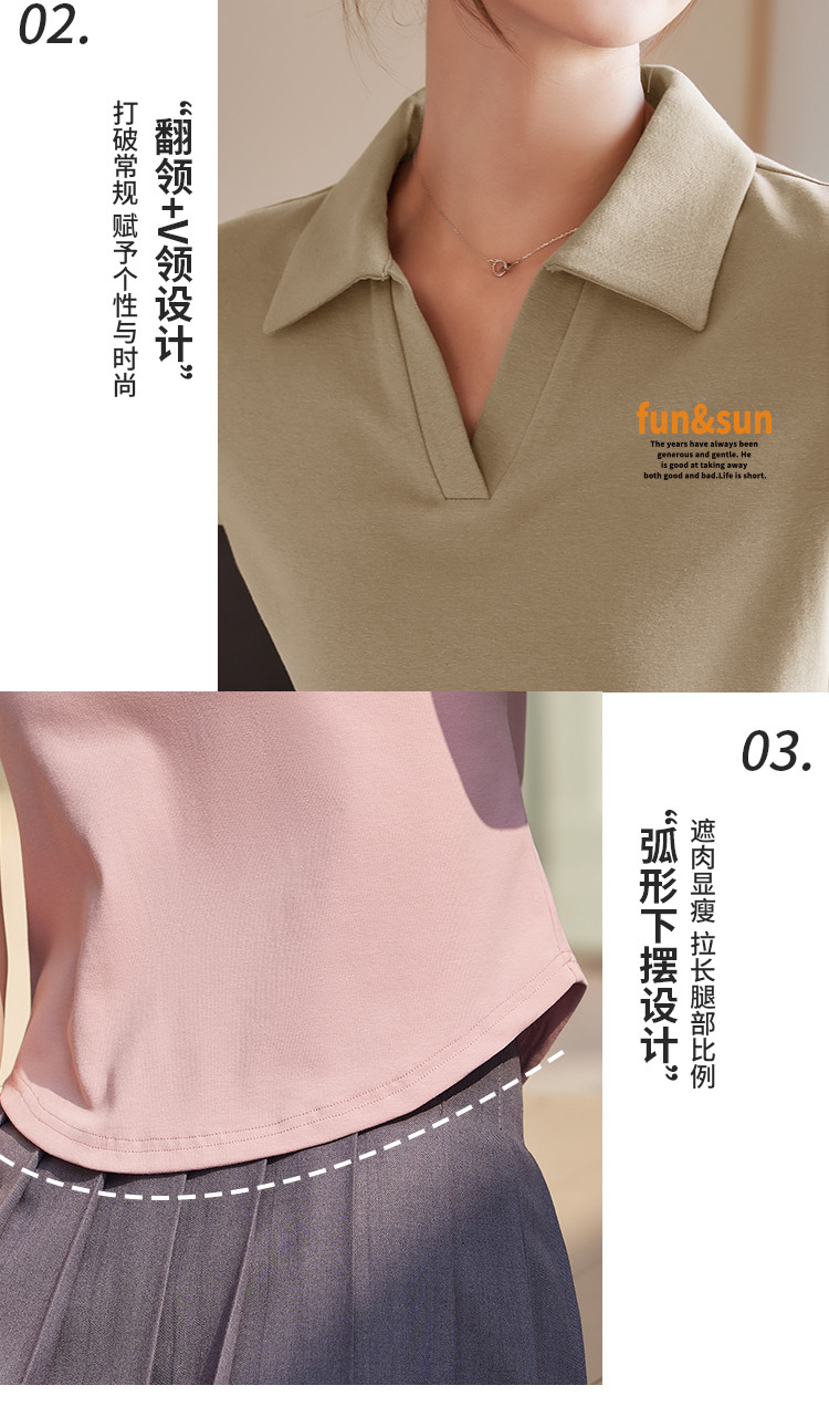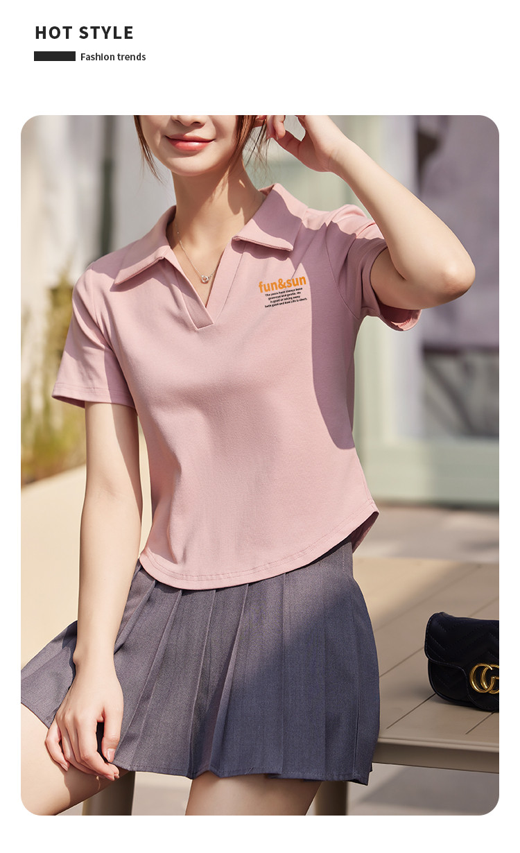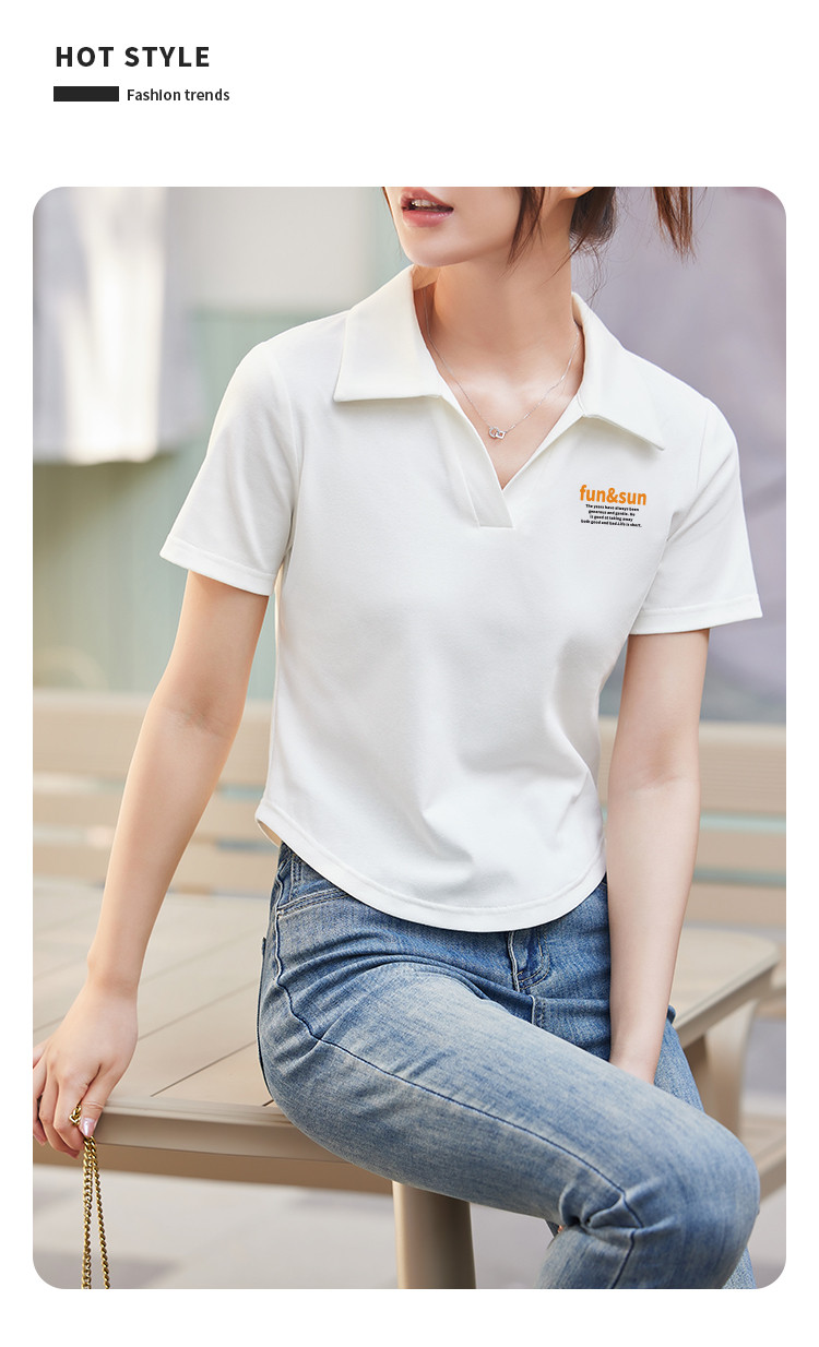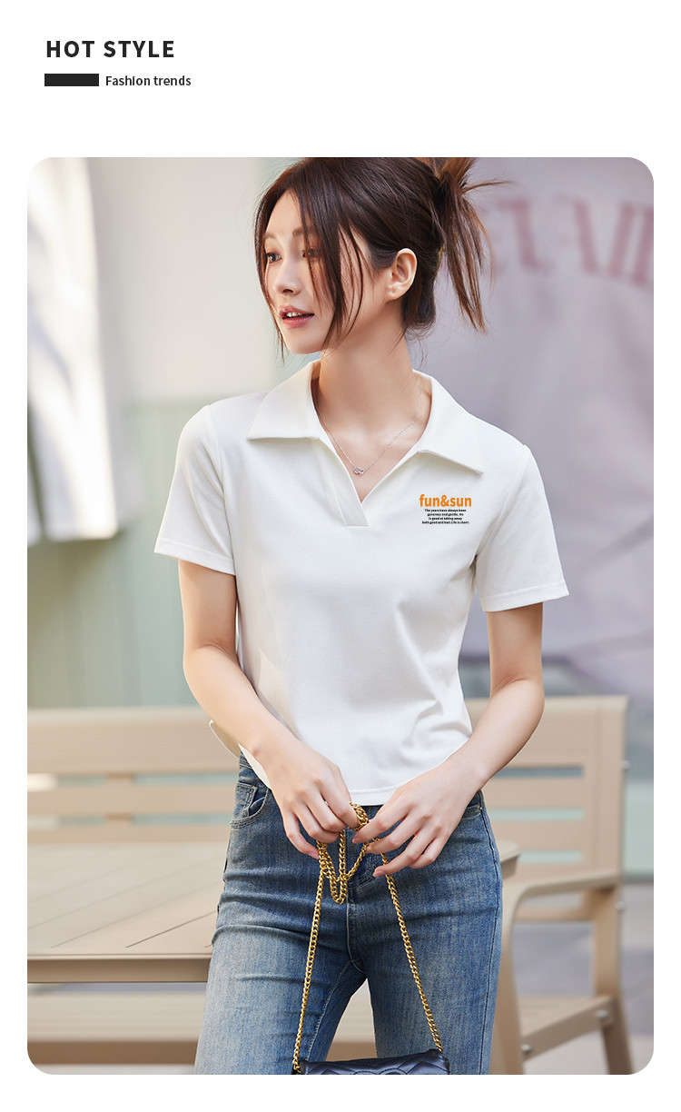 米子旗夏季款印花polo领T恤女短款修身短袖上衣 299354