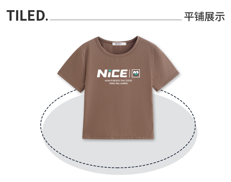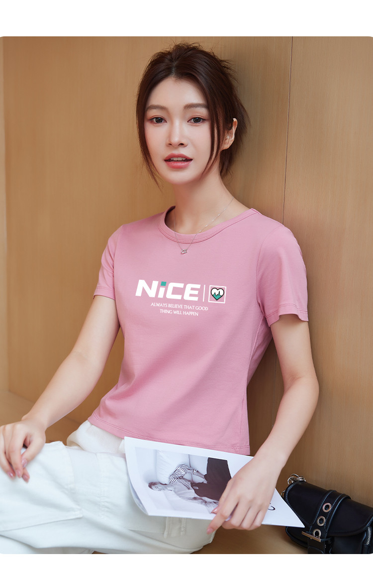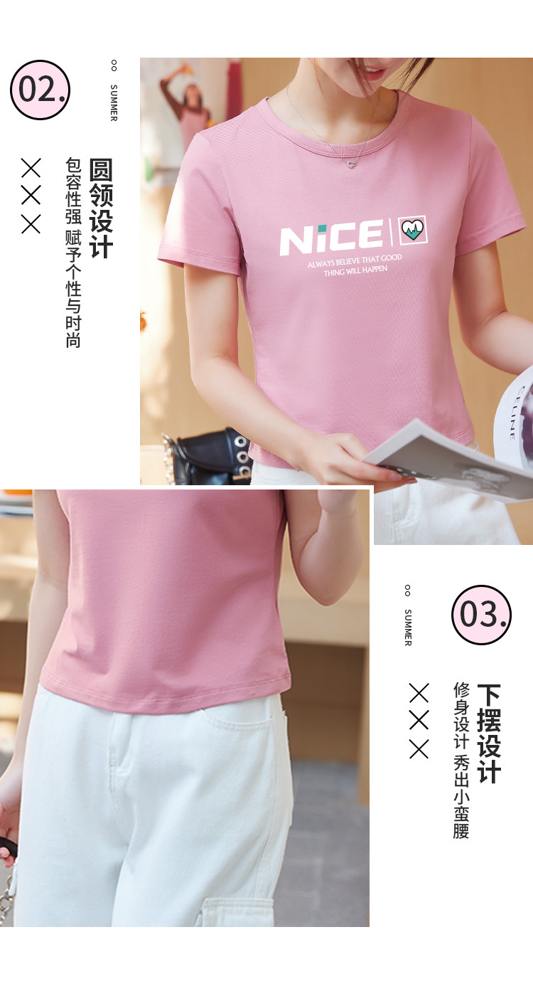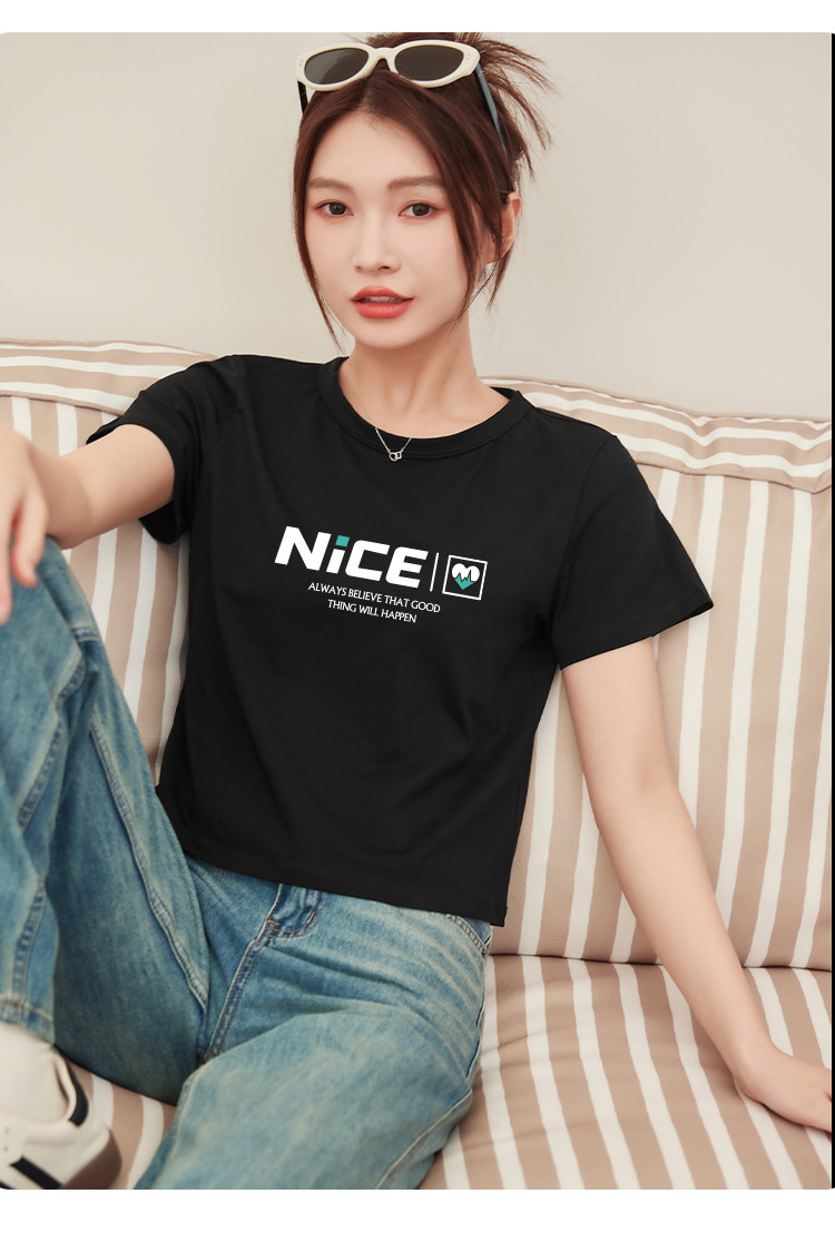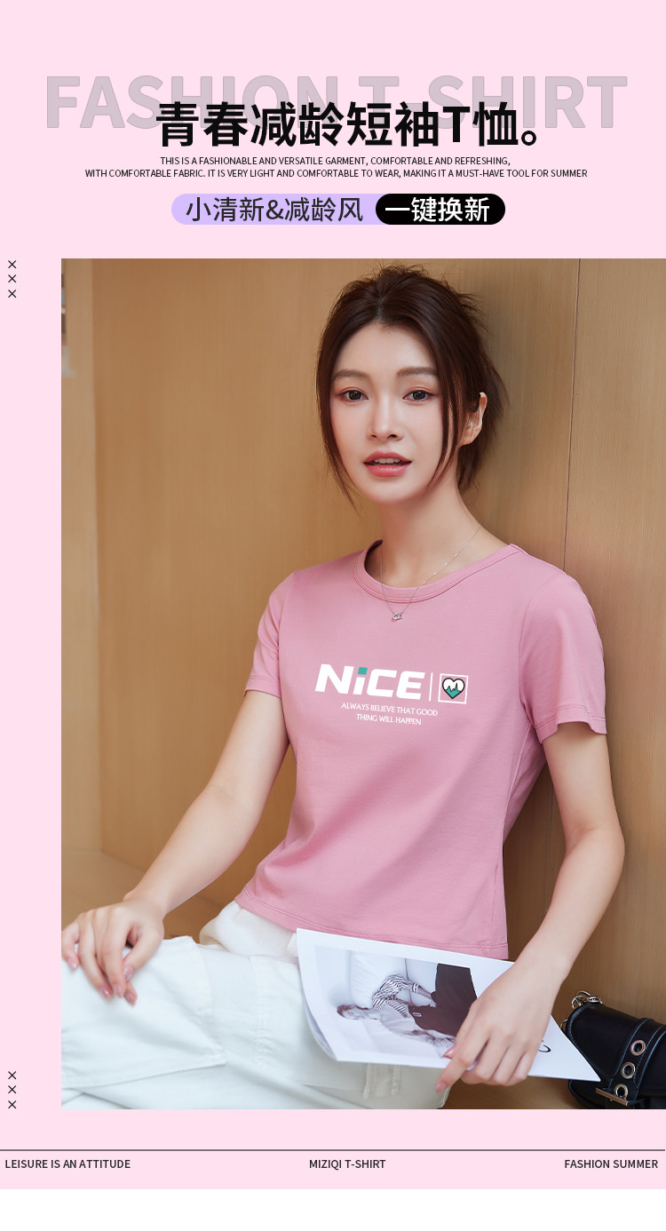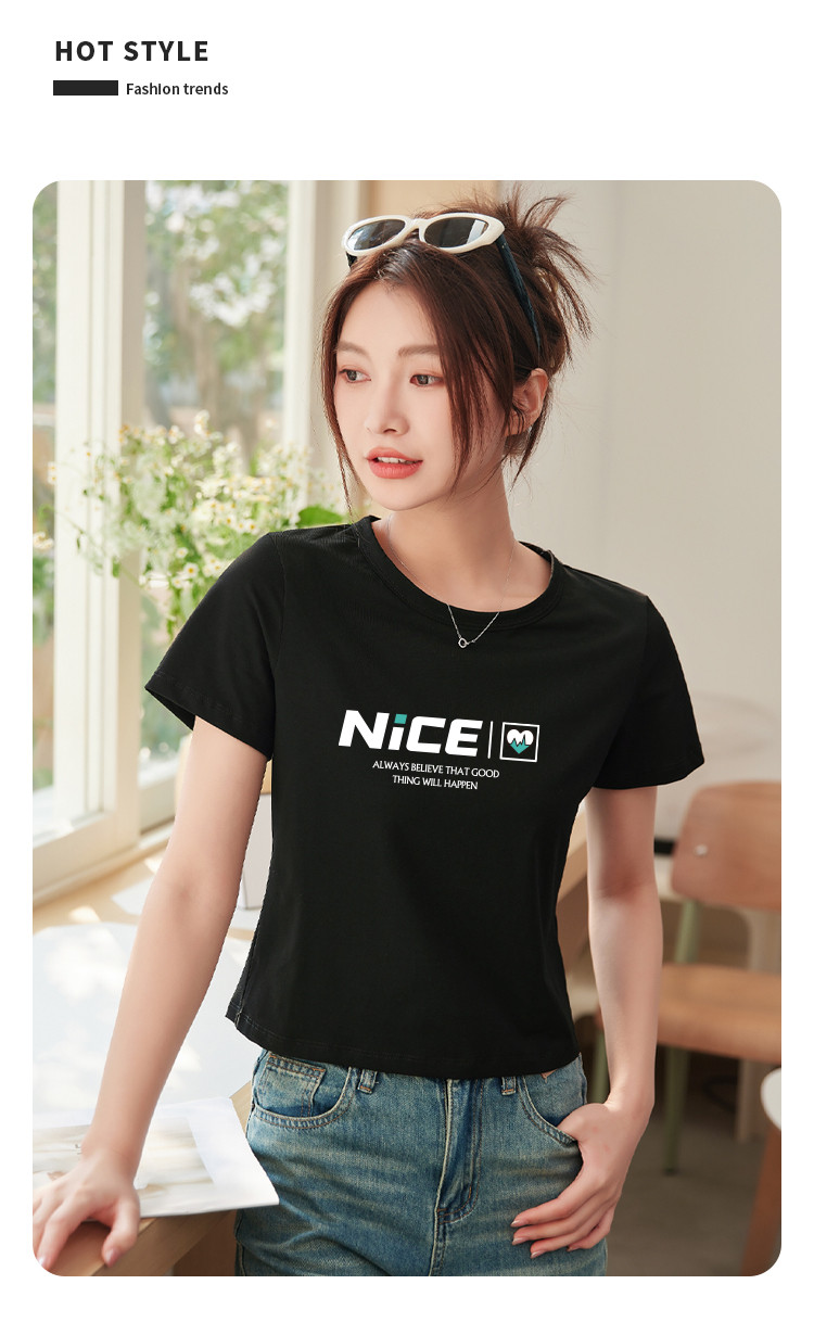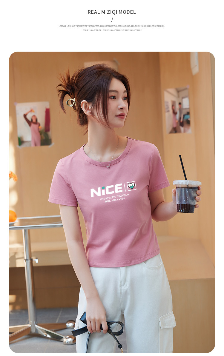 商品名称:米子旗夏季圆领创意印花T恤女休闲简约修身版短袖上衣 744986