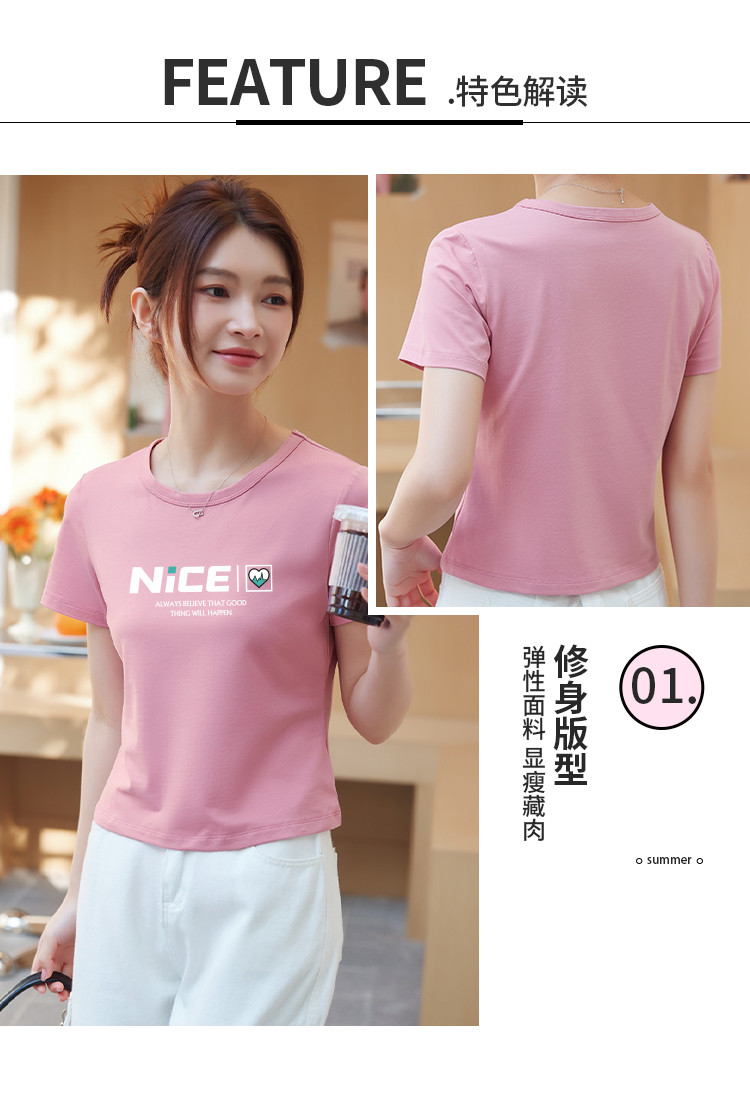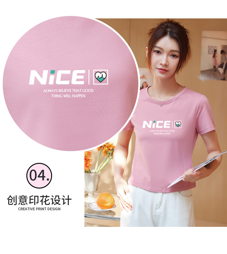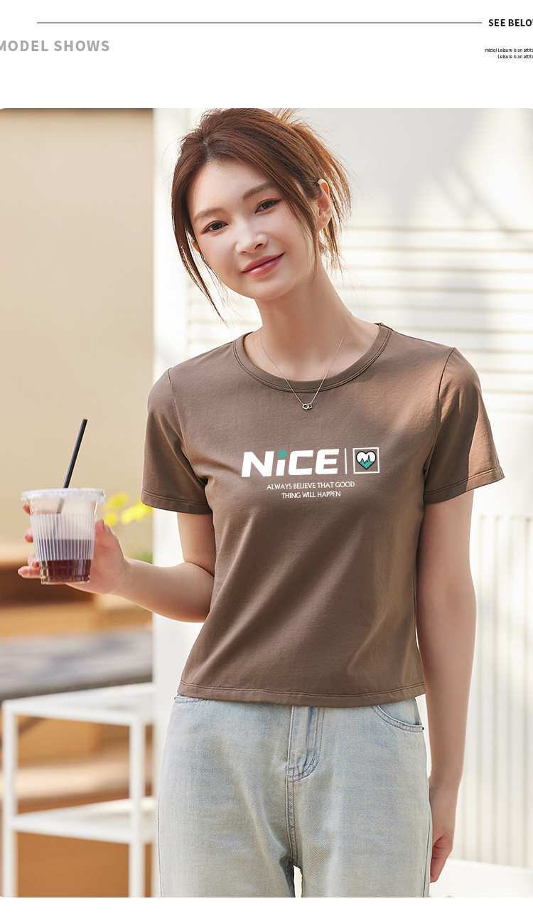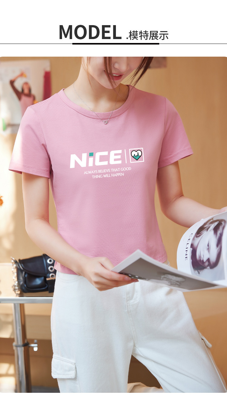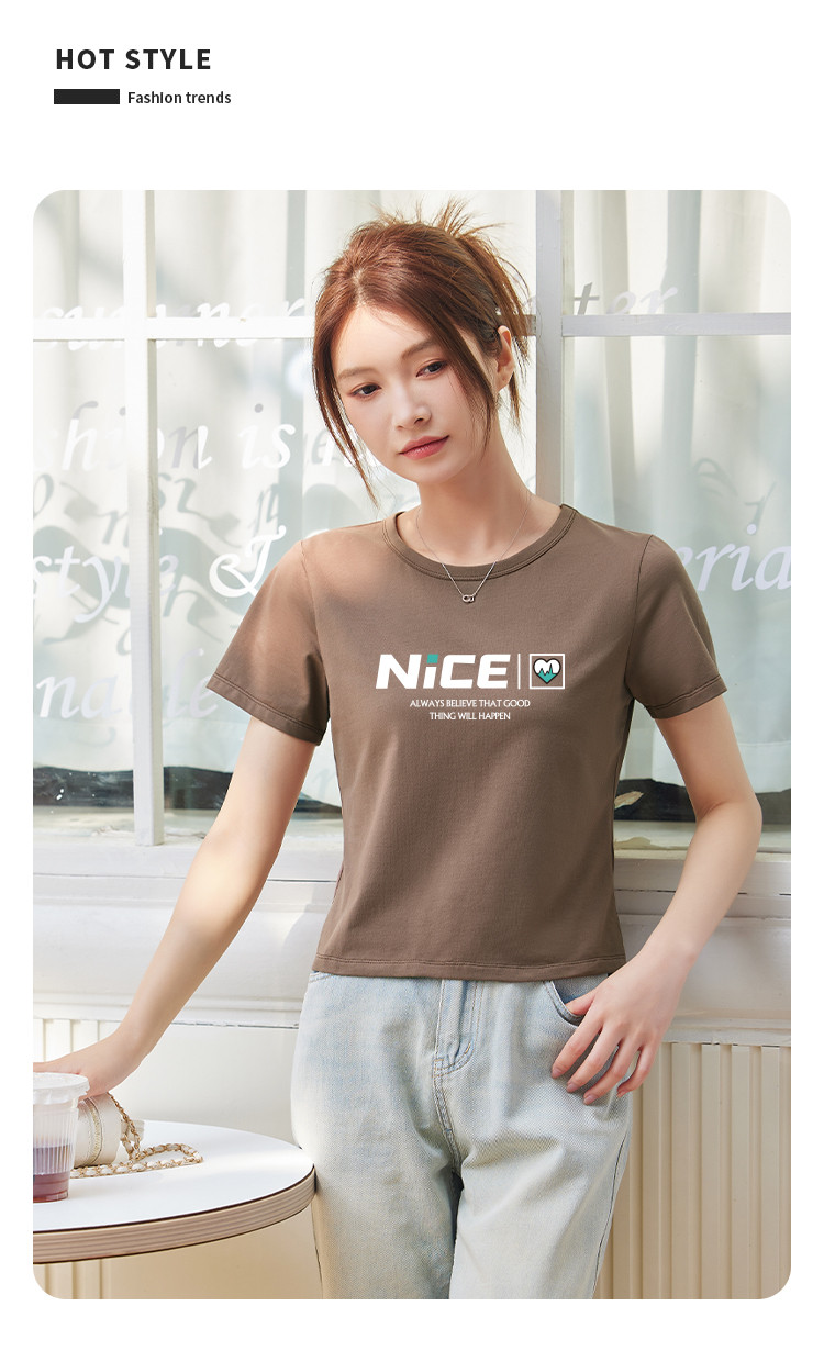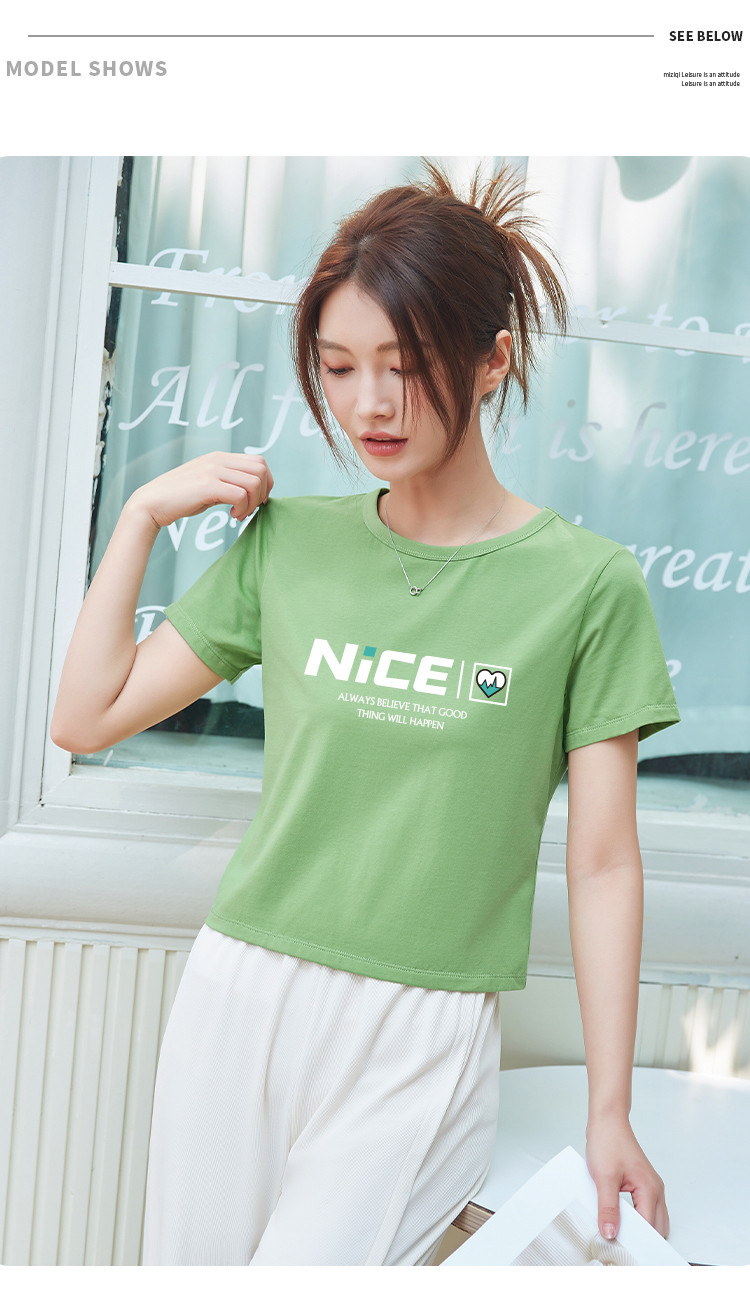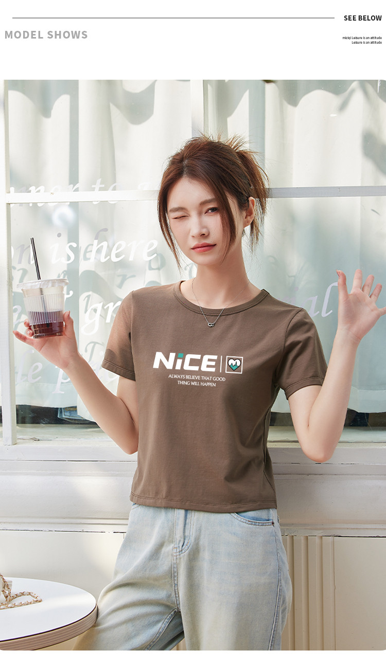商品名称:米子旗夏季圆领创意印花T恤女休闲简约修身版短袖上衣 744986
