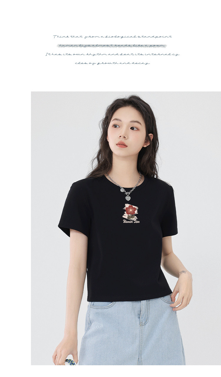 商品名称:【女装100%棉】正肩短袖T恤女夏设计感显高辣妹露脐短款上衣 430163