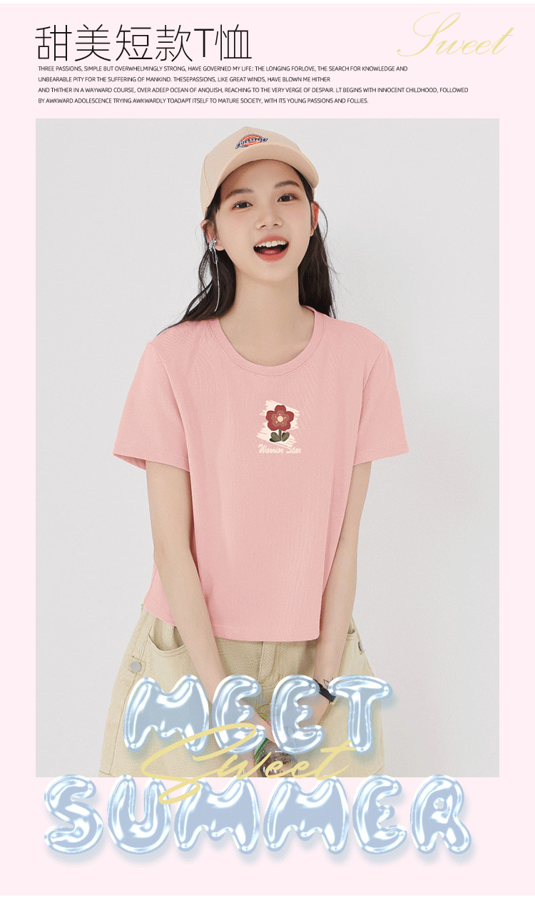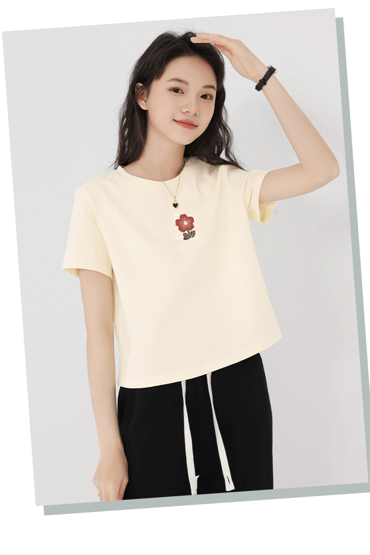 【女装100%棉】正肩短袖T恤女夏设计感显高辣妹露脐短款上衣 430163