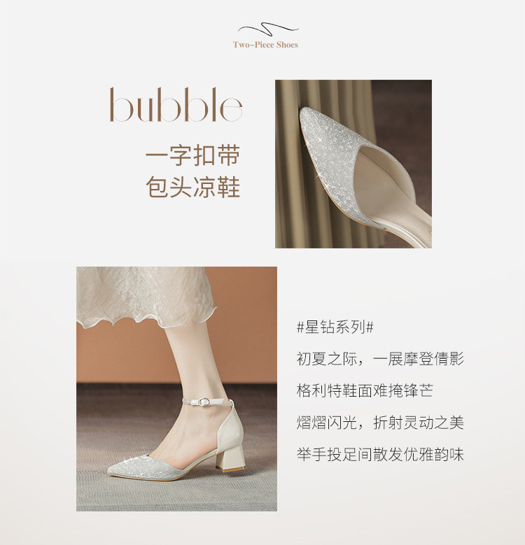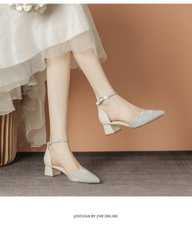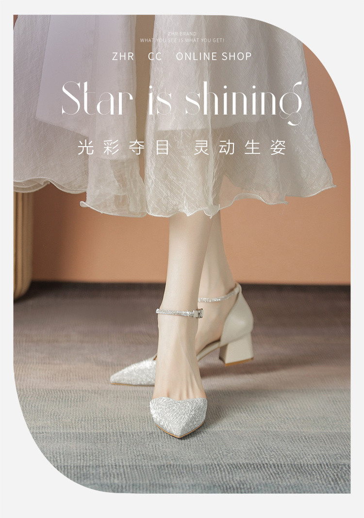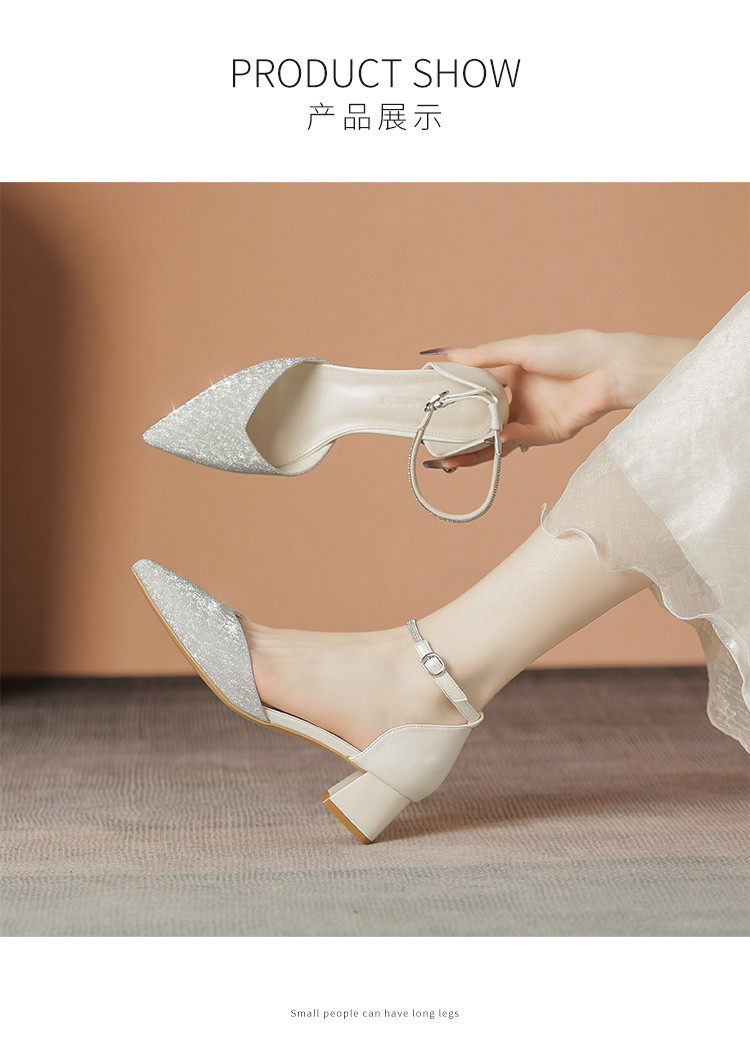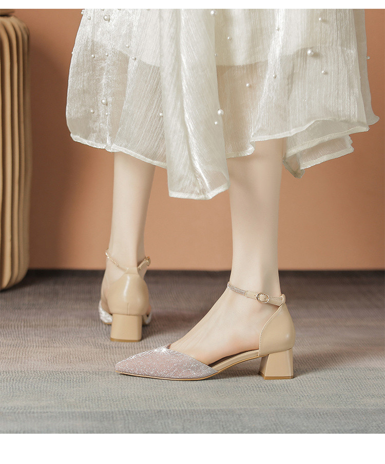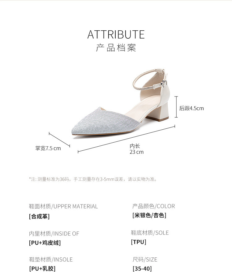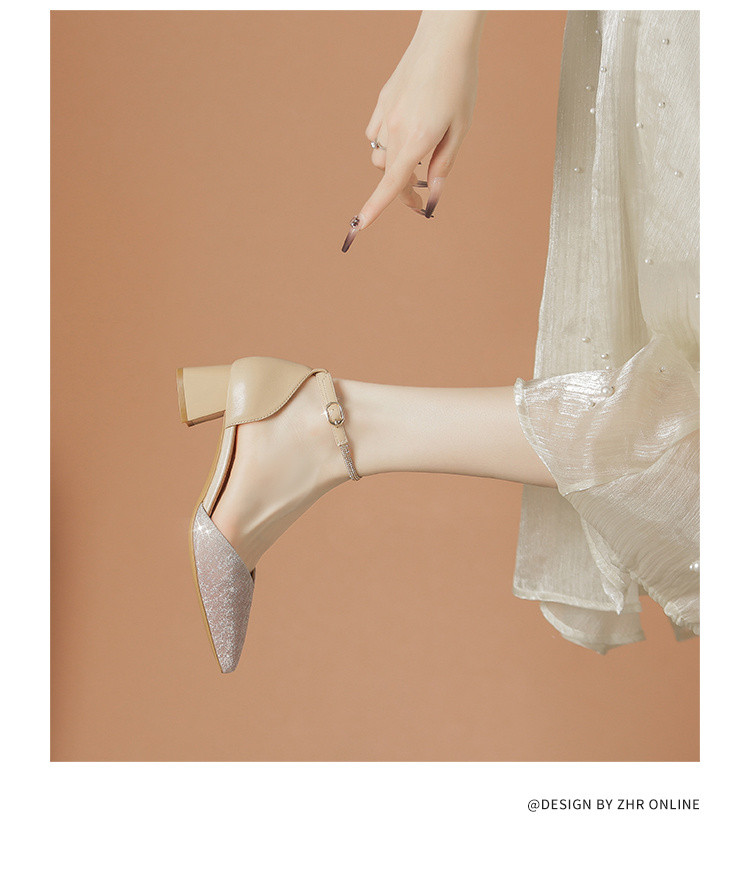 商品名称:【优雅气质】尖头浅口粗跟凉鞋包头凉鞋高跟鞋女士凉鞋夏季女凉鞋 460544