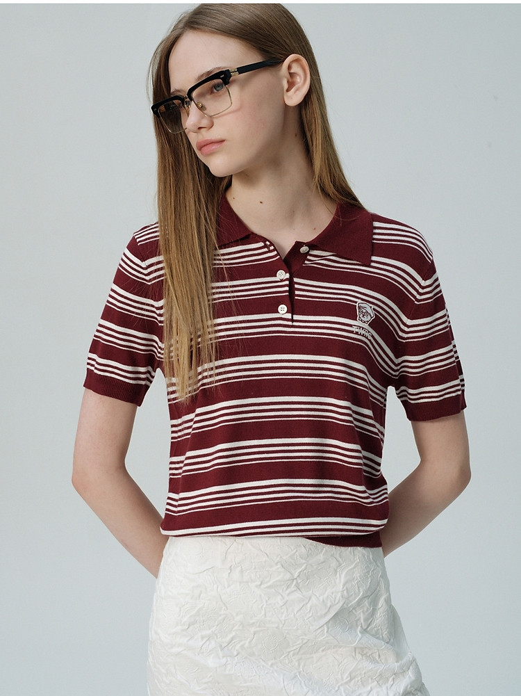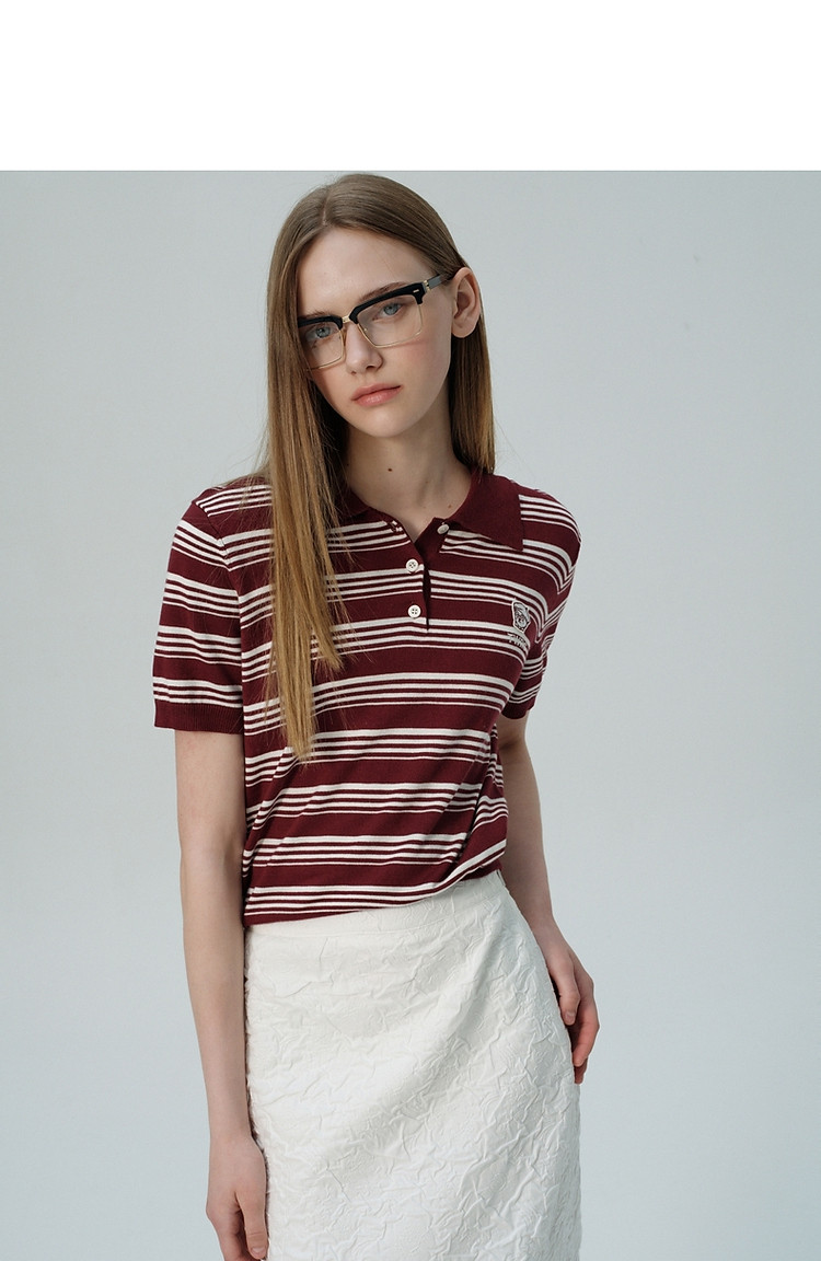 商品名称:小熊针织T恤夏季知识分子风复古刺绣短袖POLO领针织衫通勤上衣女 357889