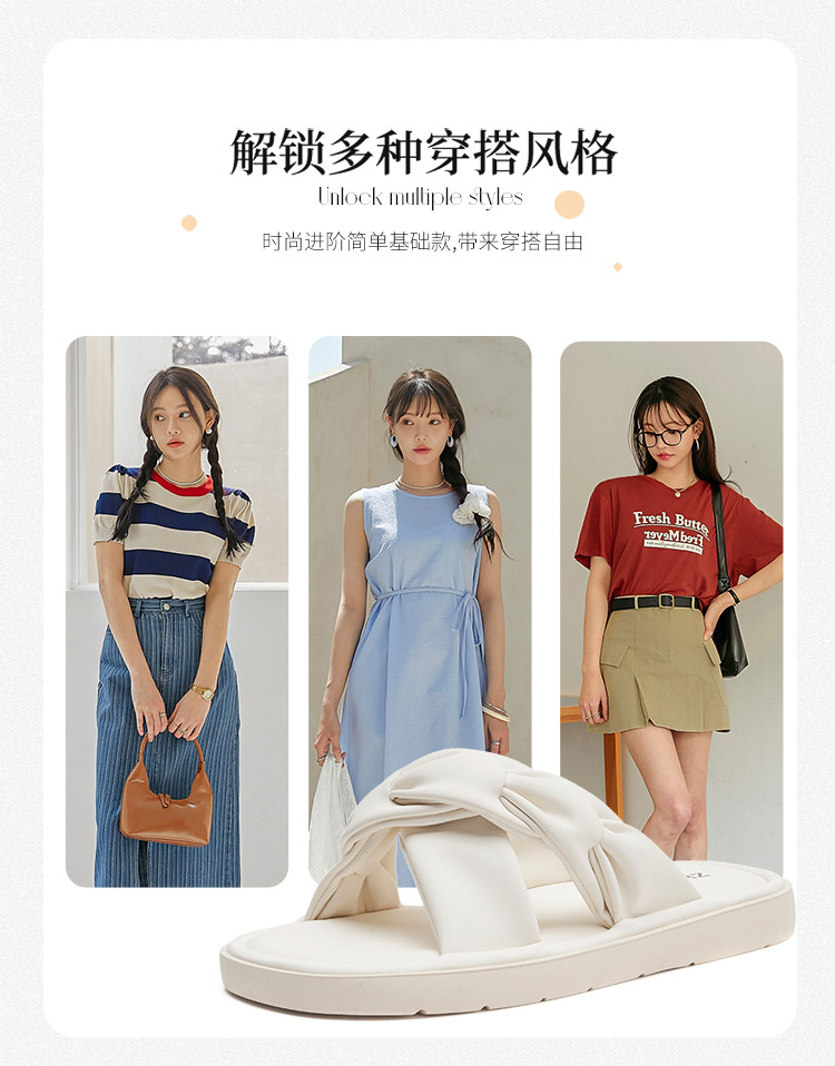【褶皱帮面】时尚平底外穿拖鞋凉拖女凉拖鞋女夏外穿凉拖鞋女外穿 068480