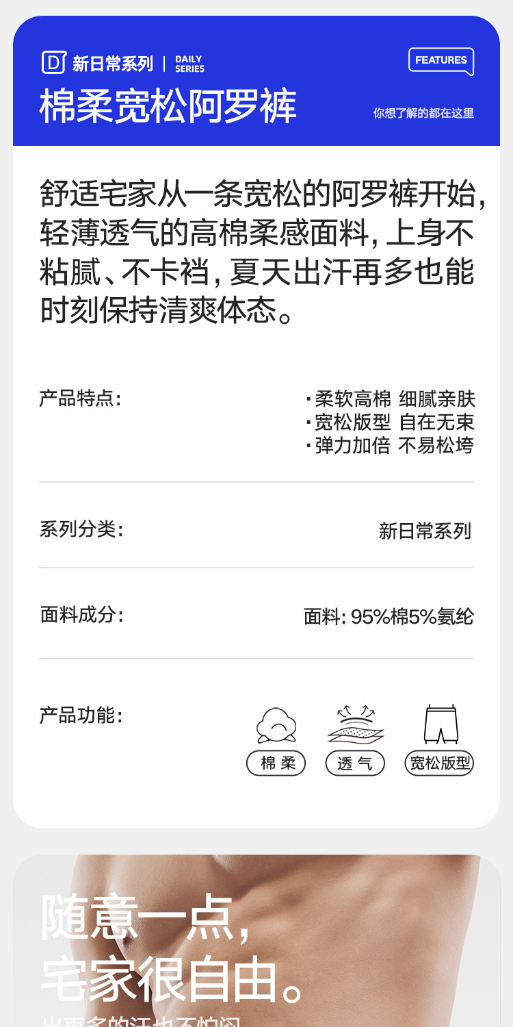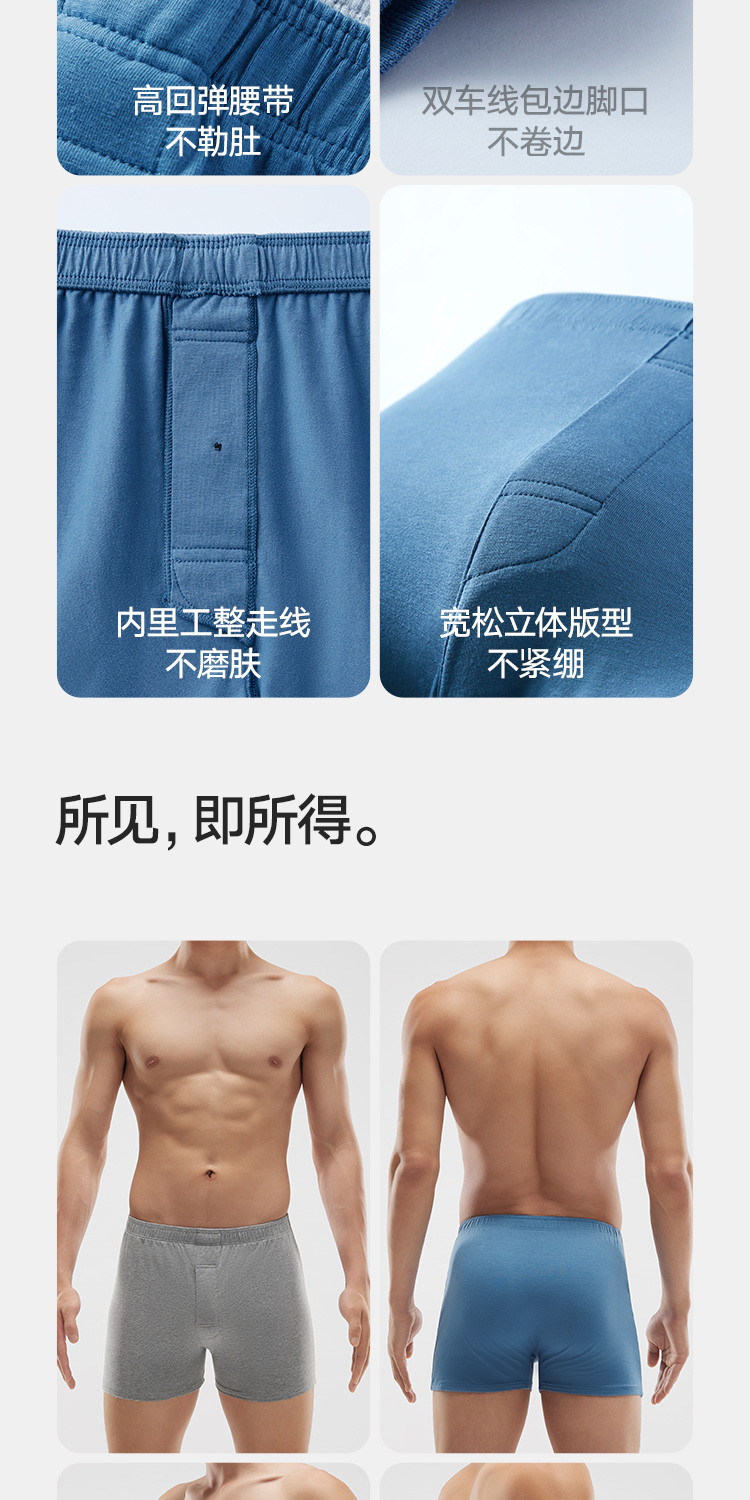 商品名称:【95%棉】3条装男士内裤男宽松透气睡裤休闲居家裤阿罗裤短裤 258650