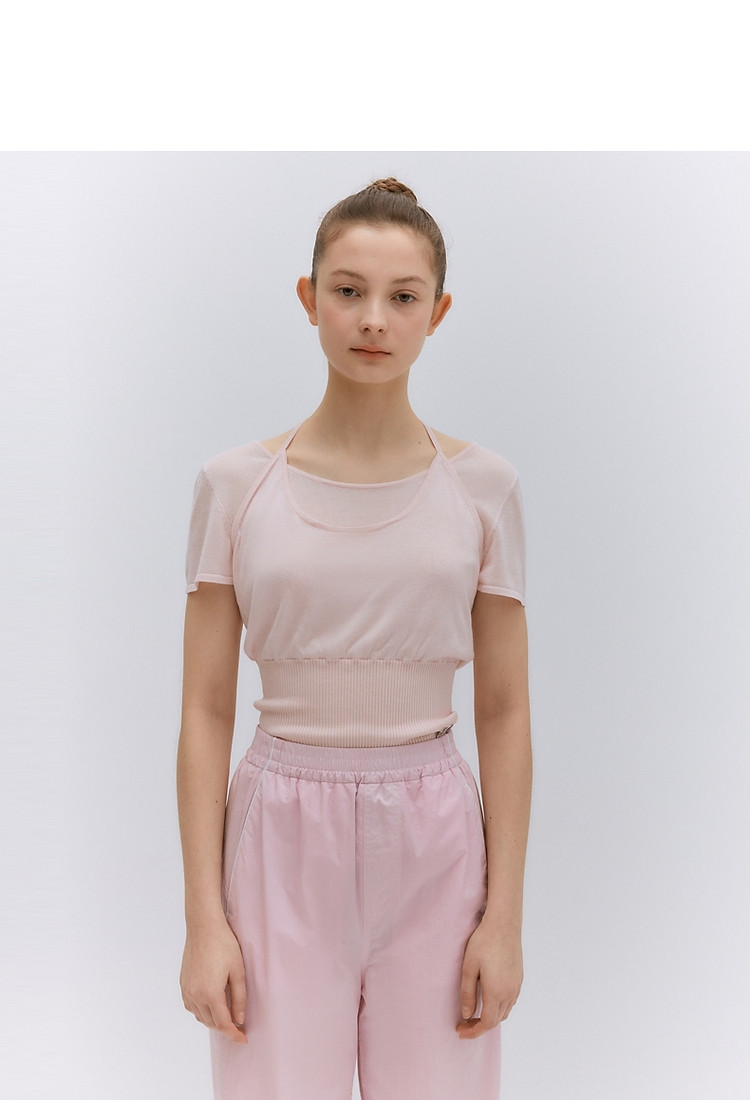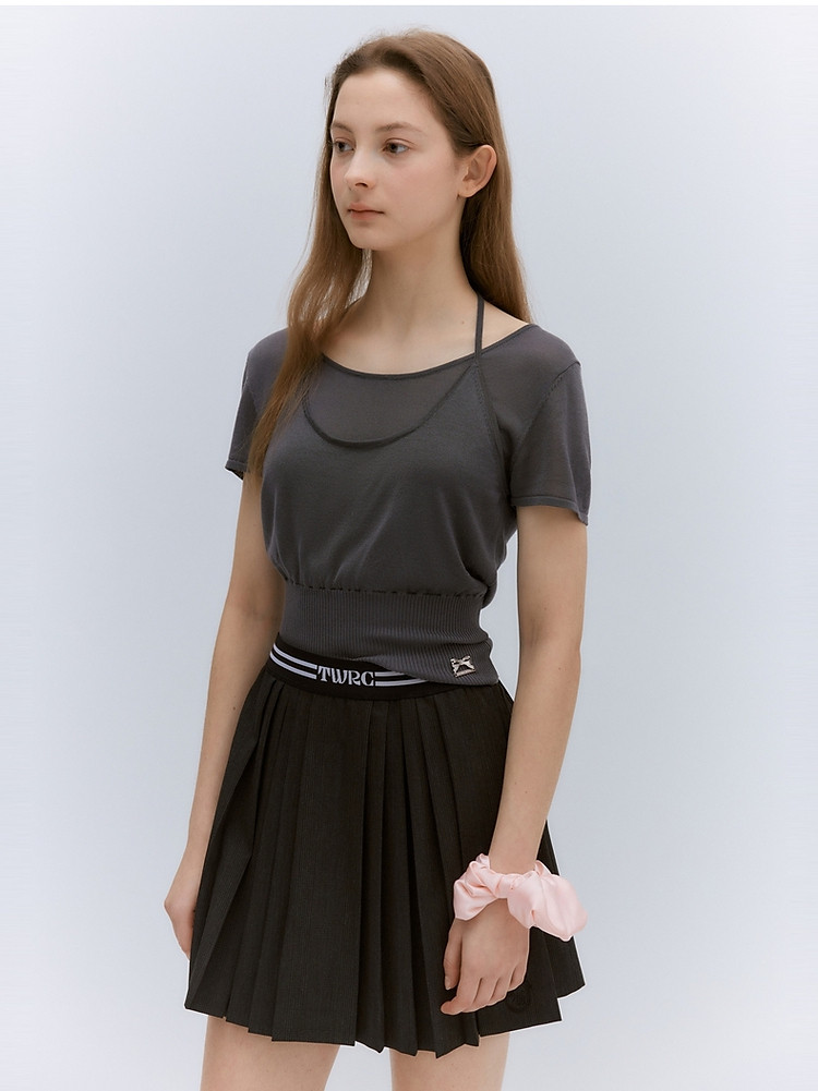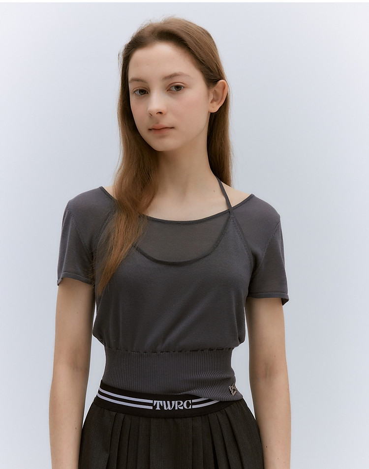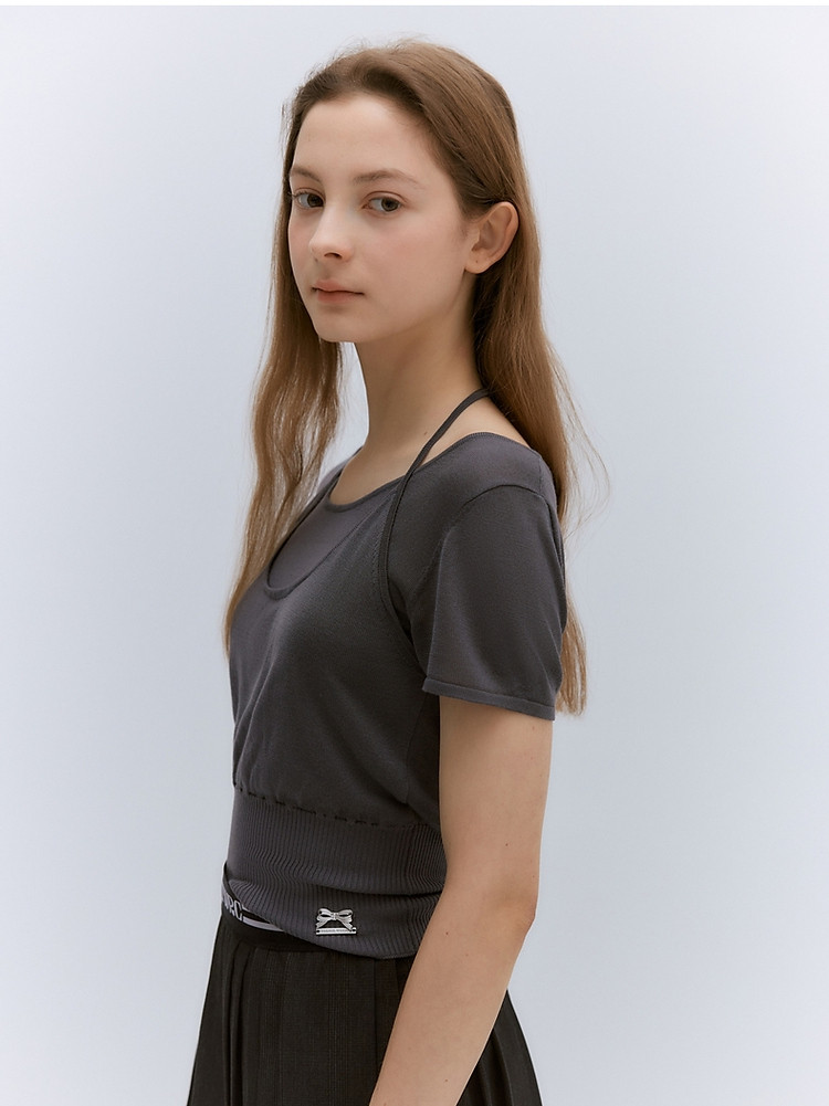 【假两件】【莱赛尔混纺】小熊夏假两件薄款针织T恤 345281