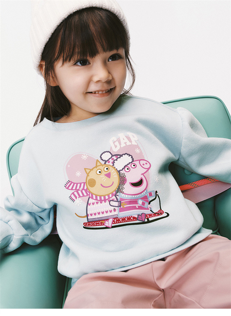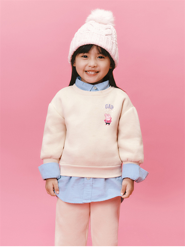 【小猪佩奇联名】Gap女幼童春秋印花抓绒保暖运动卫衣847235 084890