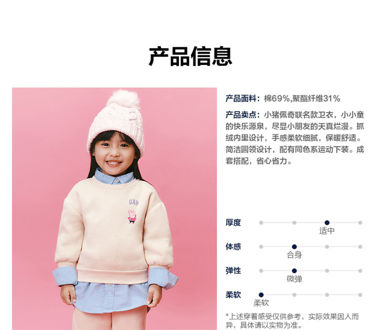 商品名称:【小猪佩奇联名】Gap女幼童春秋印花抓绒保暖运动卫衣847235 084890