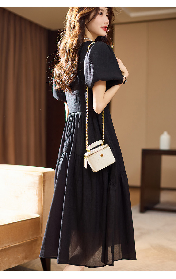 法式浪漫高级感连衣裙2025夏季新款轻薄飘逸泡泡袖宽松连衣裙 471241