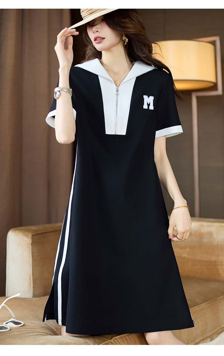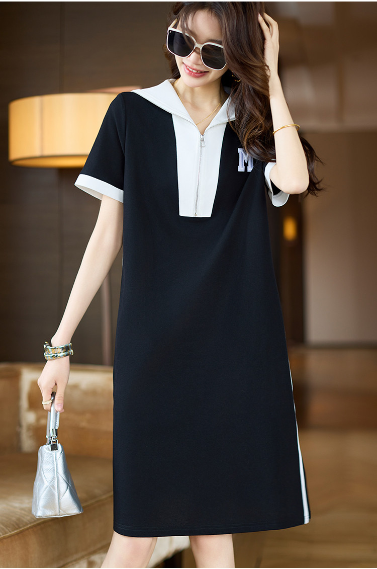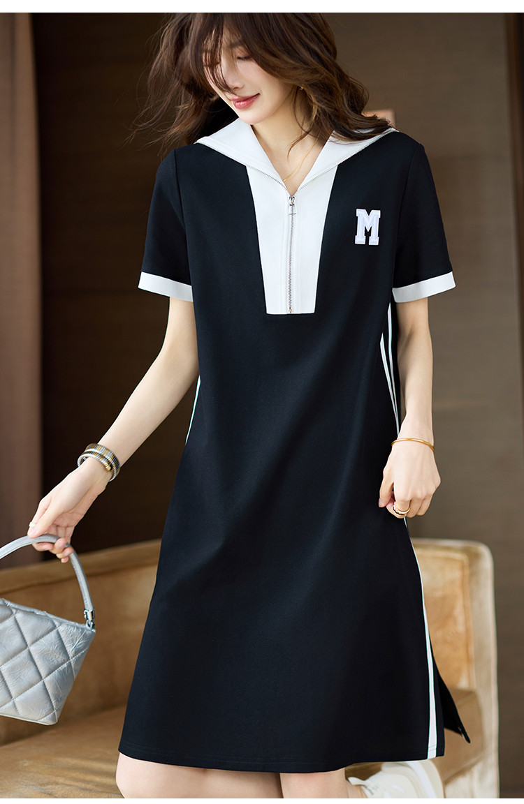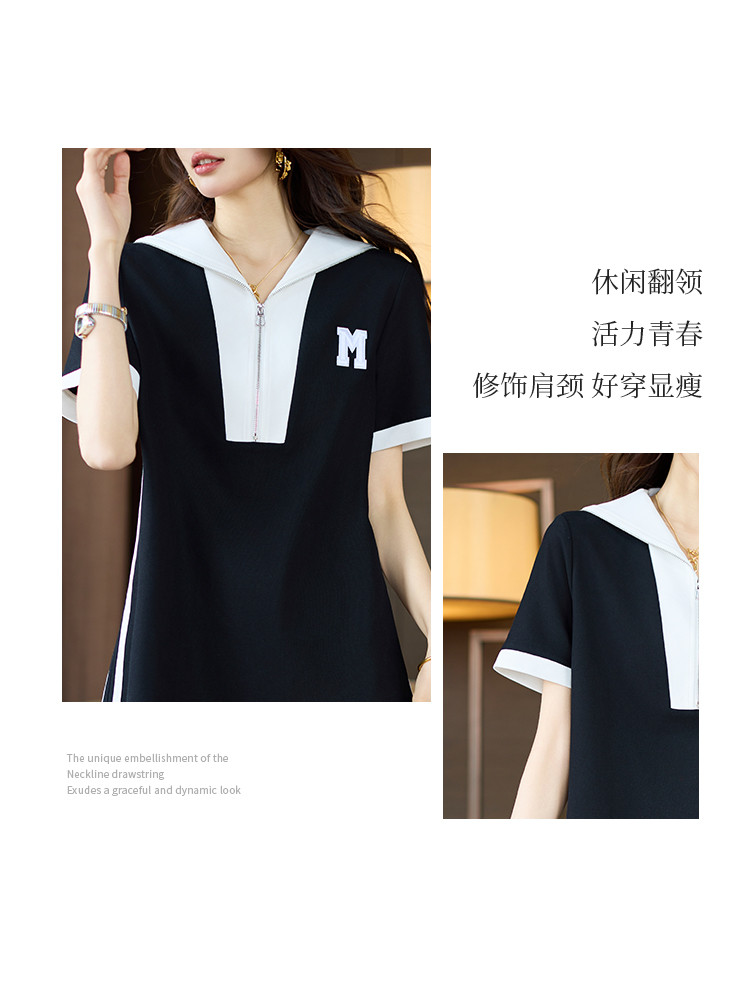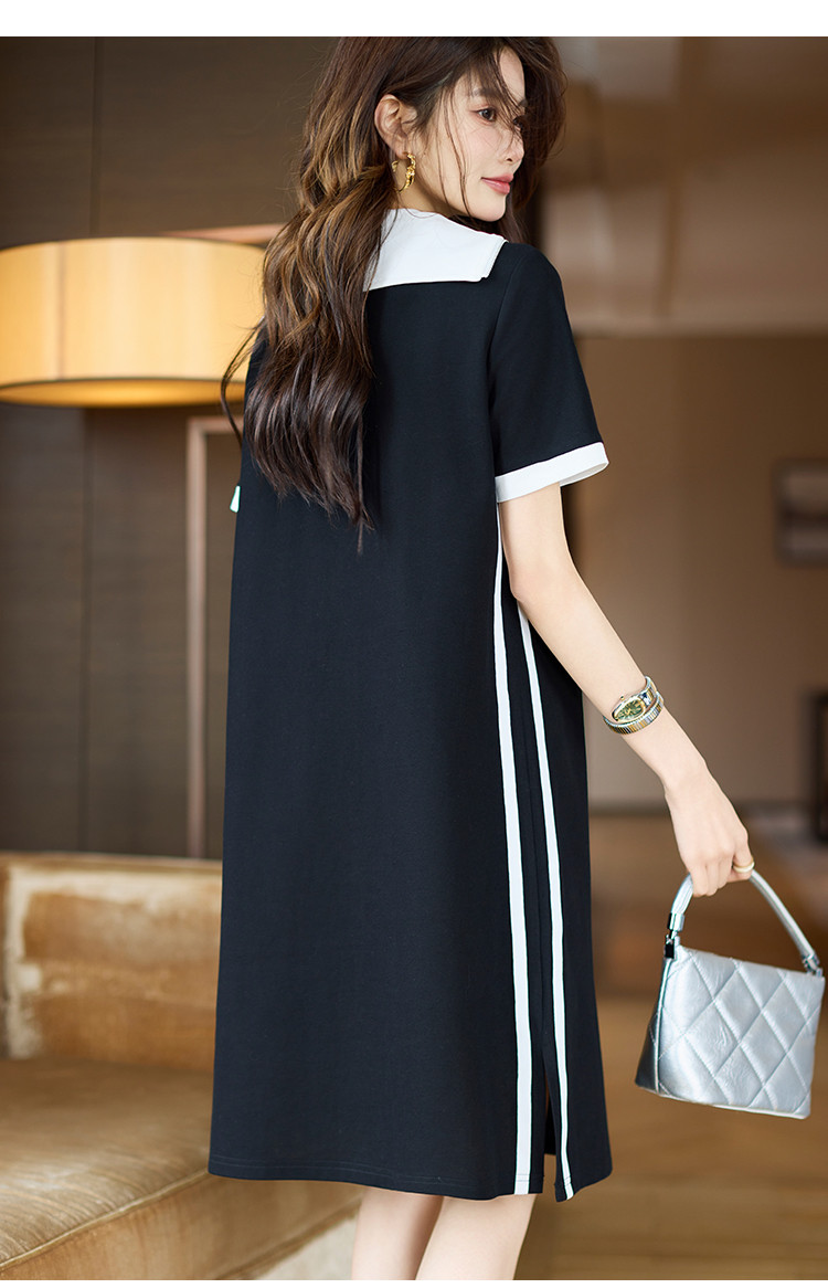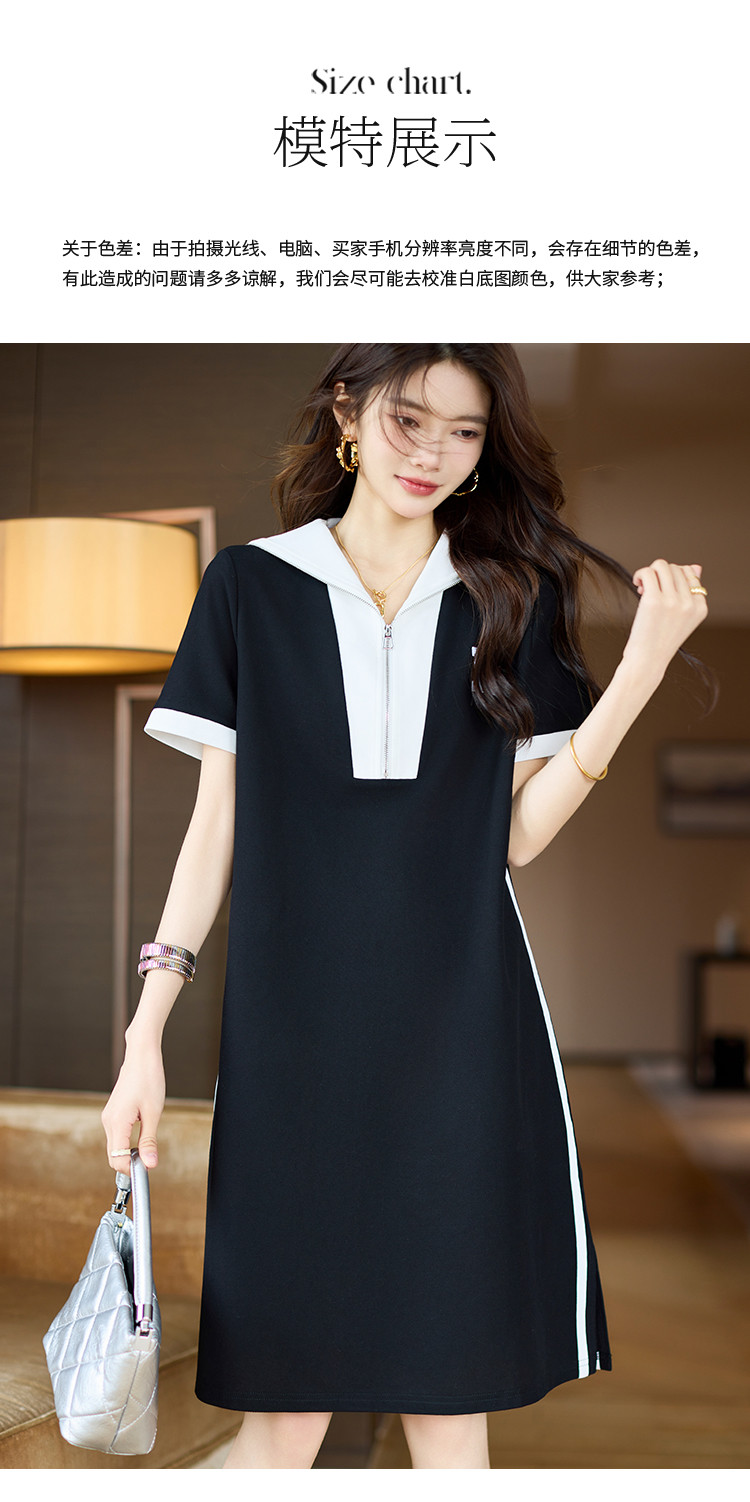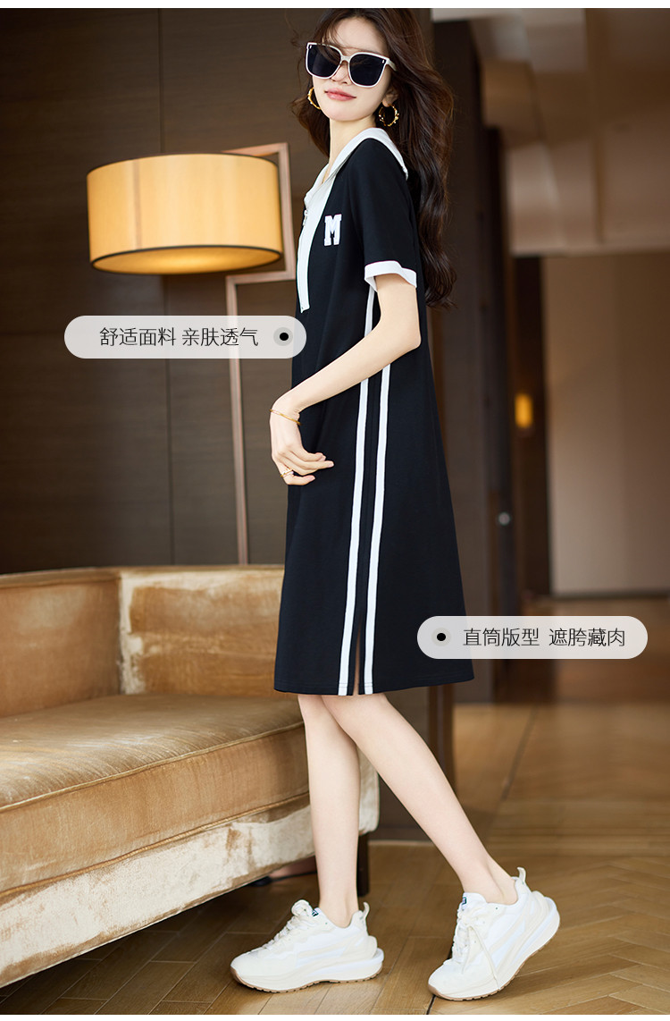 商品名称:撞色拼接POLO裙2025夏季新款休闲舒适复古T恤裙连衣裙女 758089