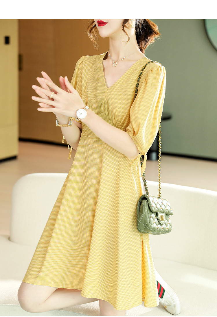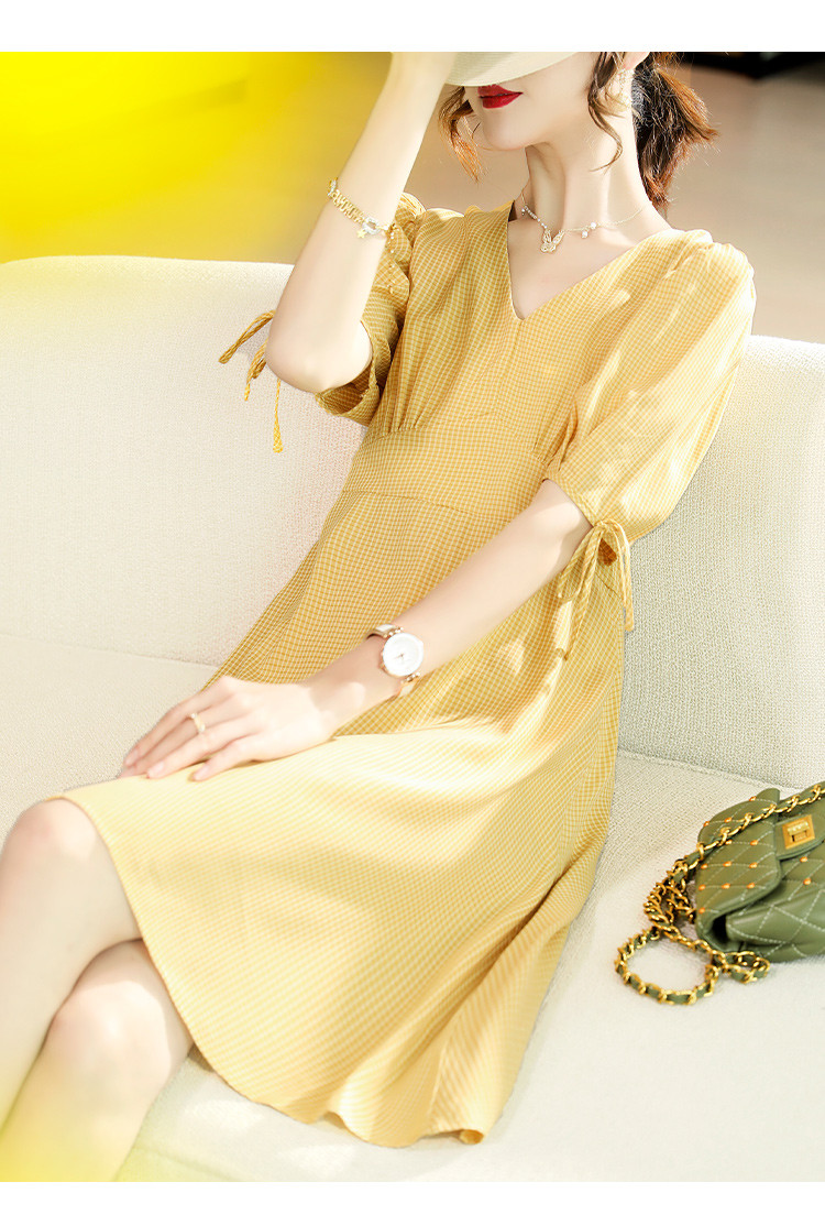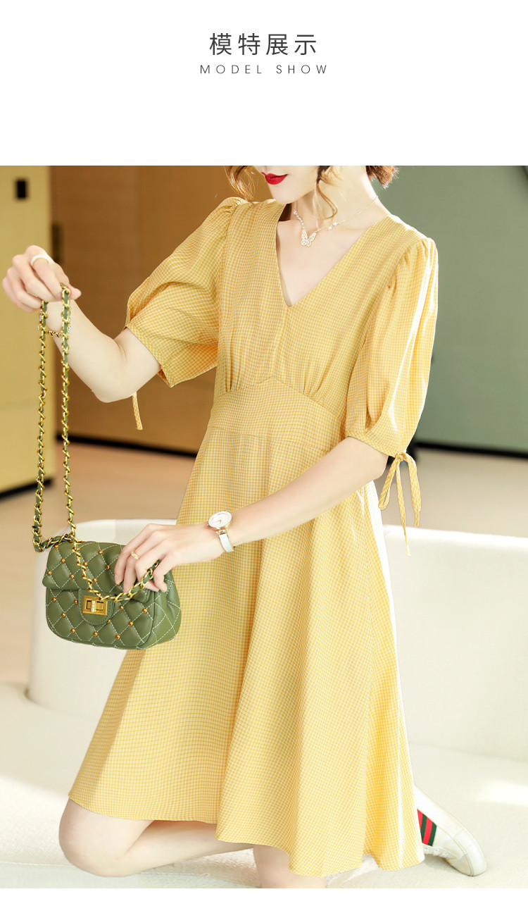 商品名称:【小清新连衣裙】2025夏季新款干净清新印花显瘦V领连衣裙 426889