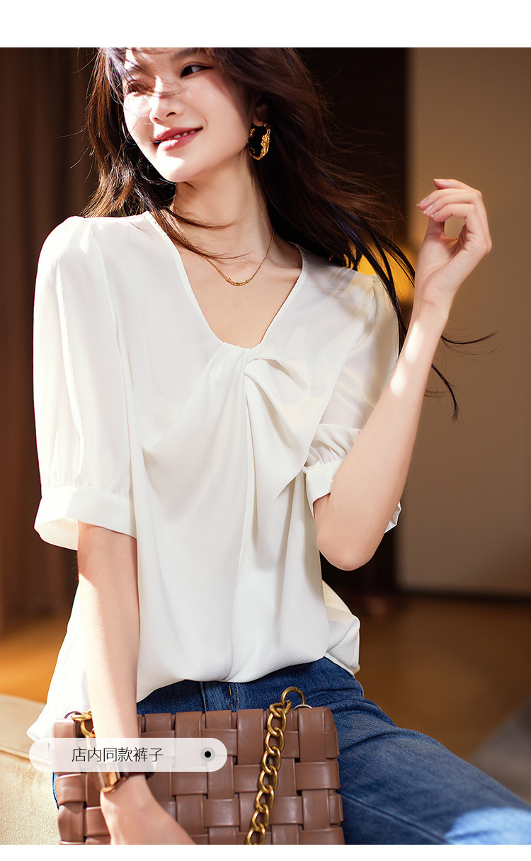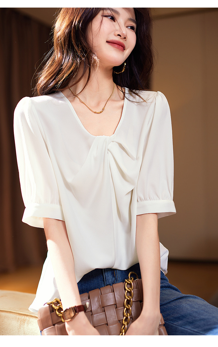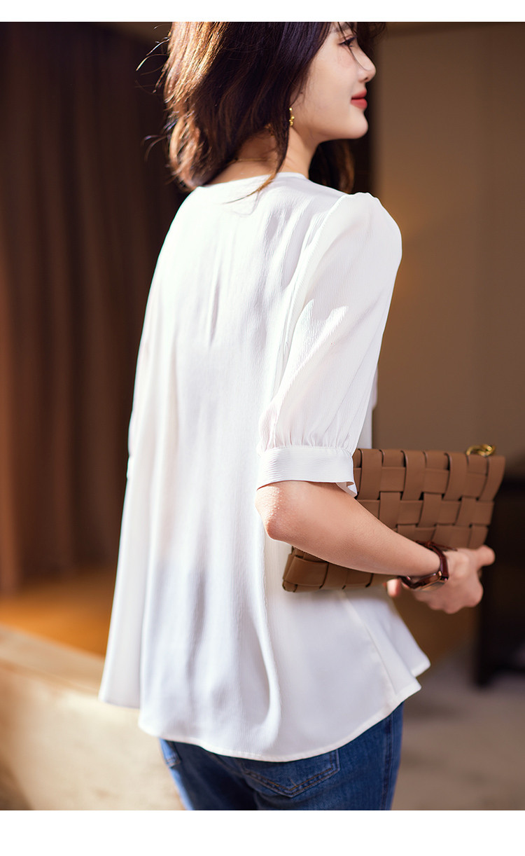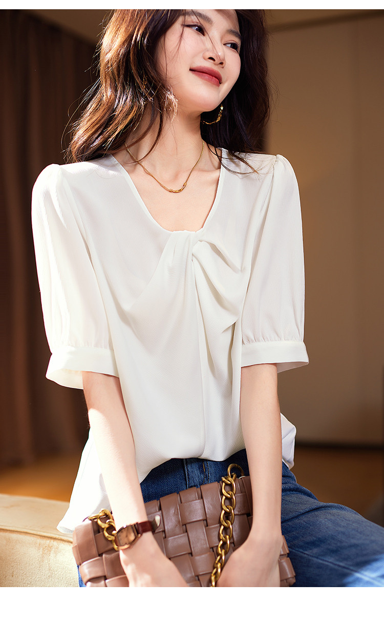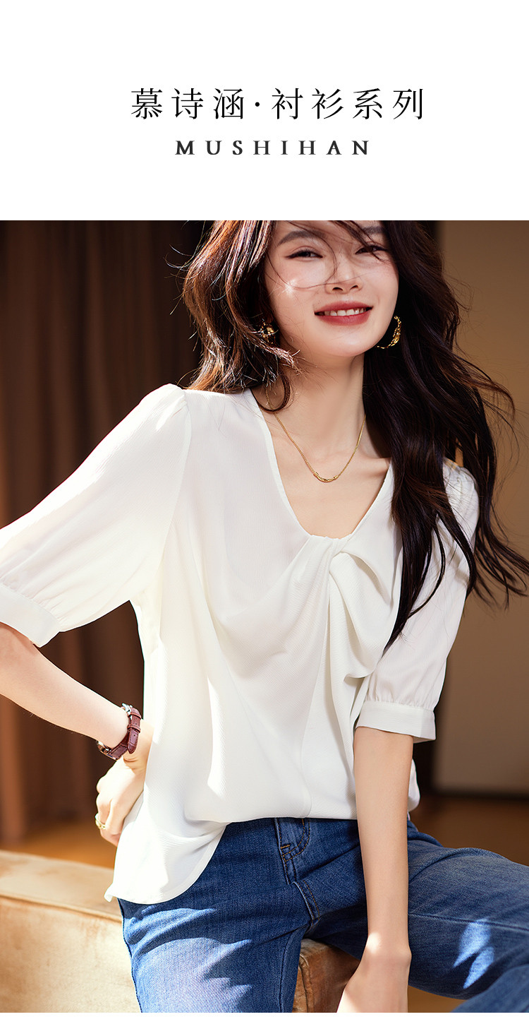 商品名称:优雅小心机衬衫2025夏季新款简约休闲通勤短袖上衣女式衬衣 304649
