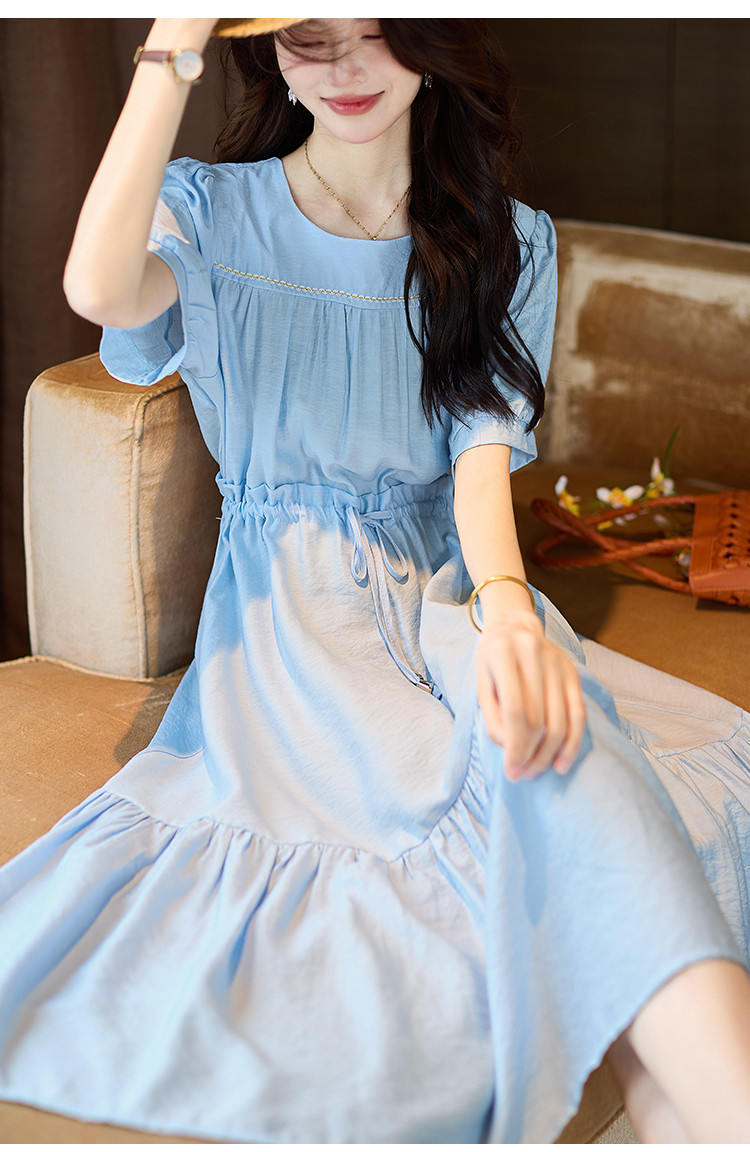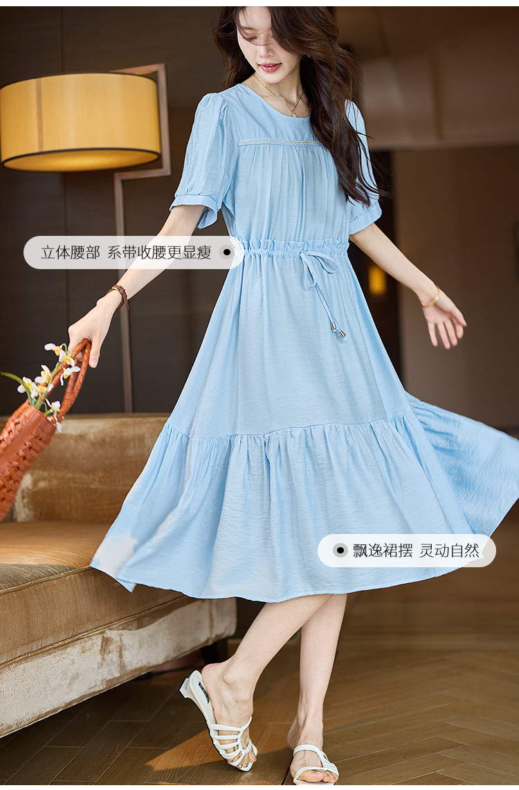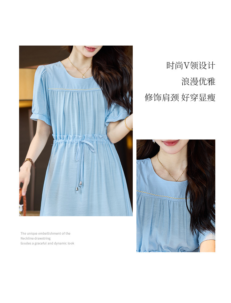 商品名称:优雅气质连衣裙2025夏季新款通勤高级感抽绳收腰大裙摆长裙 526153