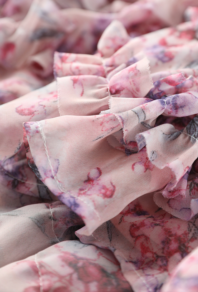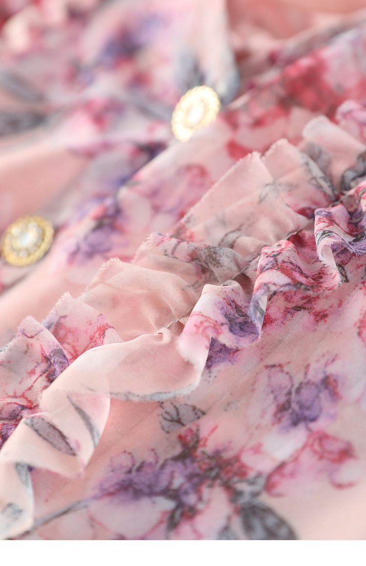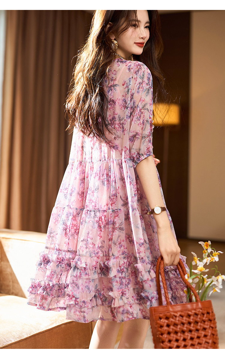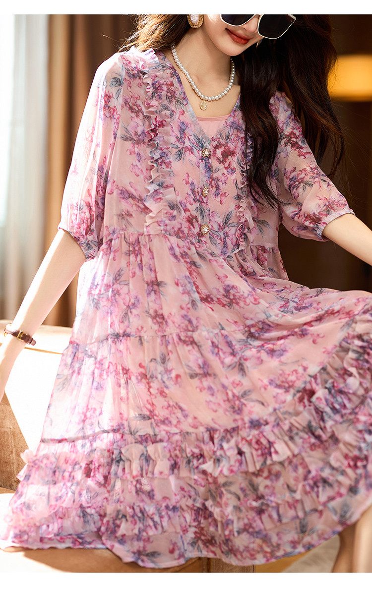 2025夏季新款荷叶边雪纺印花连衣裙女装飘逸灵动中长裙子女装 274633