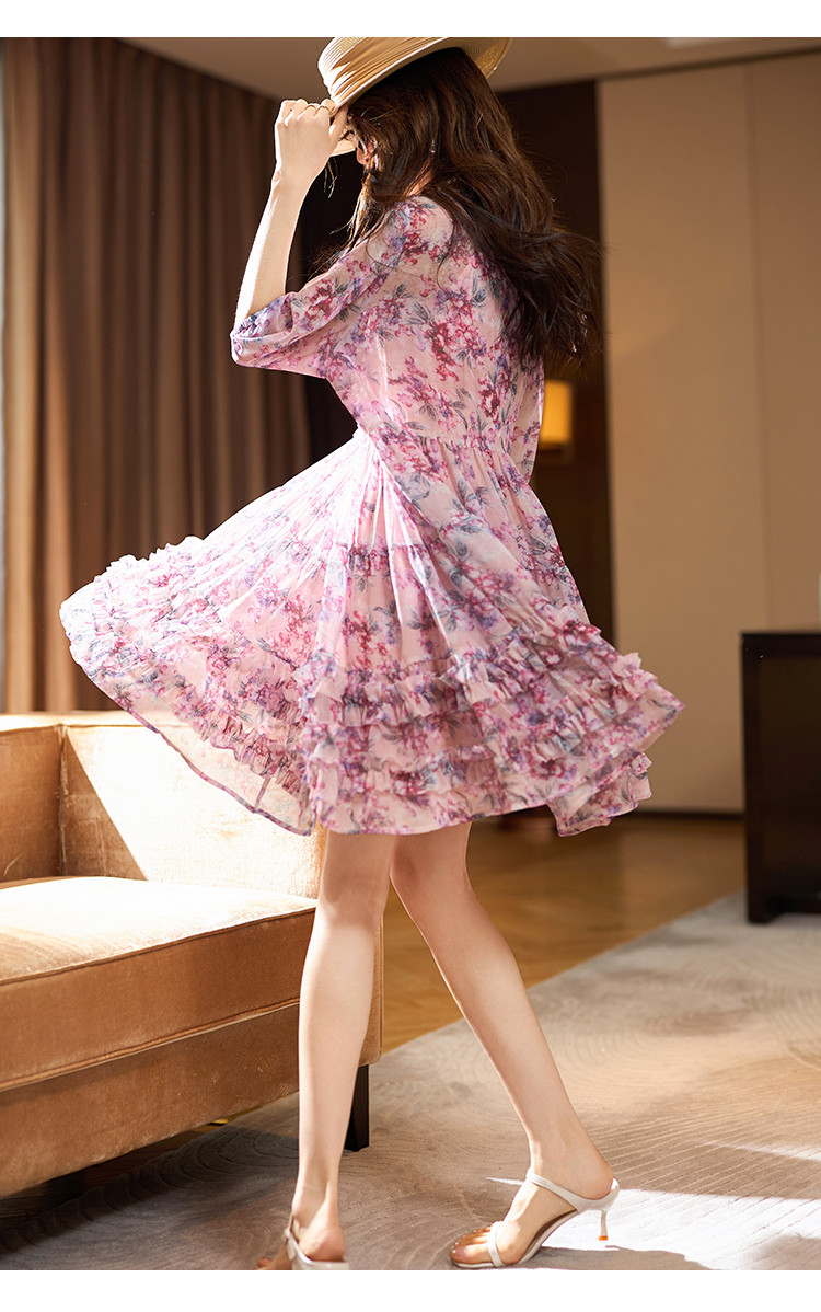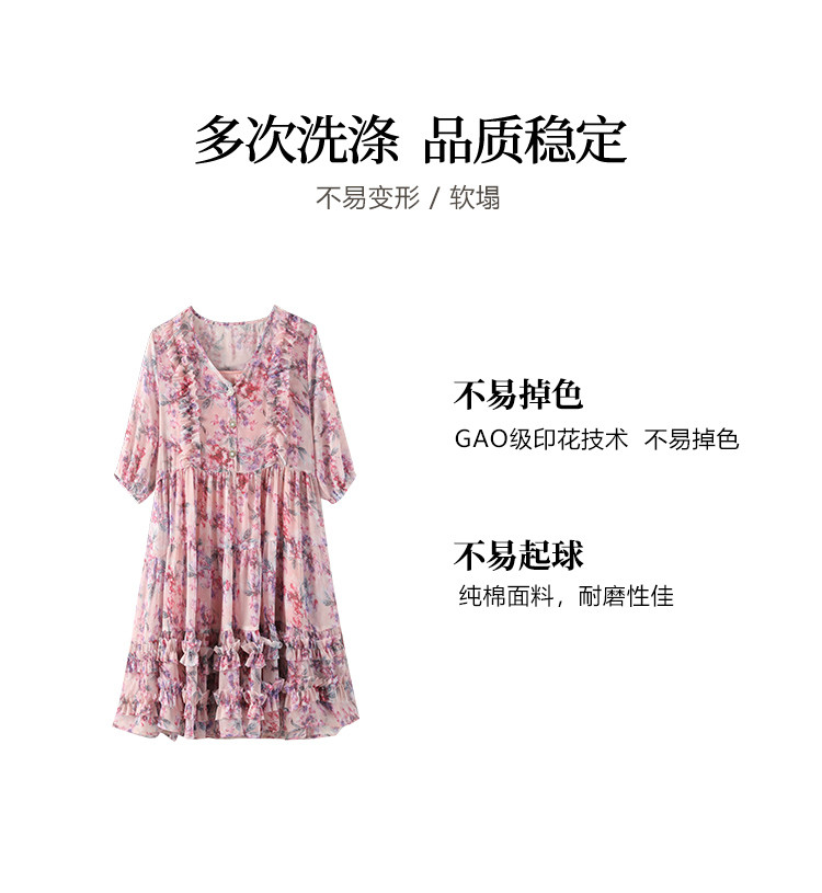 商品名称:繁花似锦 法式浪漫碎花裙夏季高级感摇曳裙摆V领短袖连衣裙 047561