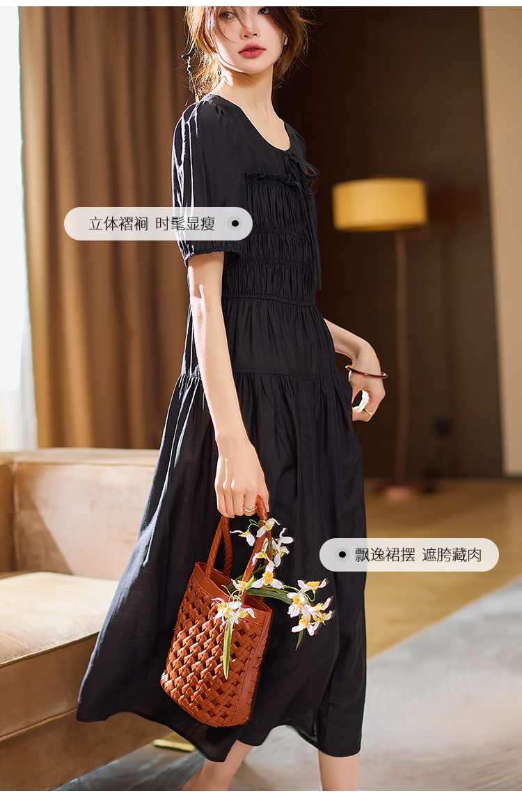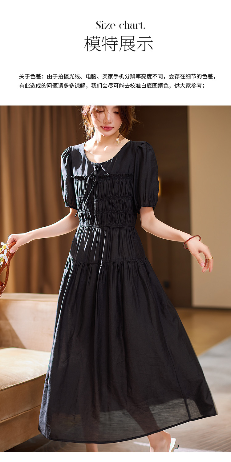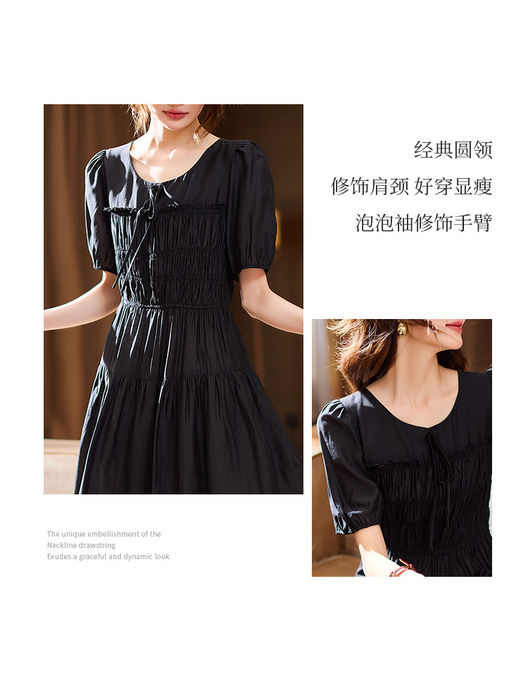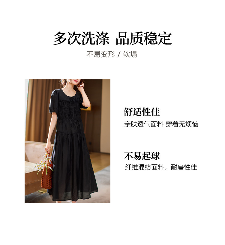 商品名称:优雅气质小黑裙2025夏季新款通勤气质简约收腰显瘦短袖连衣裙 933193