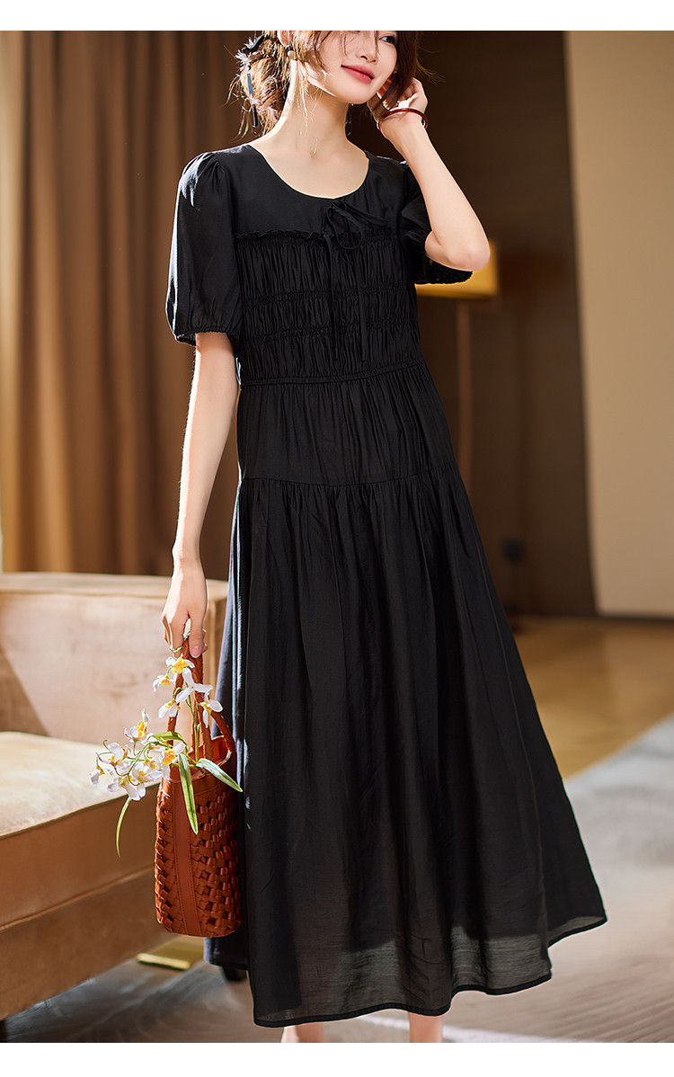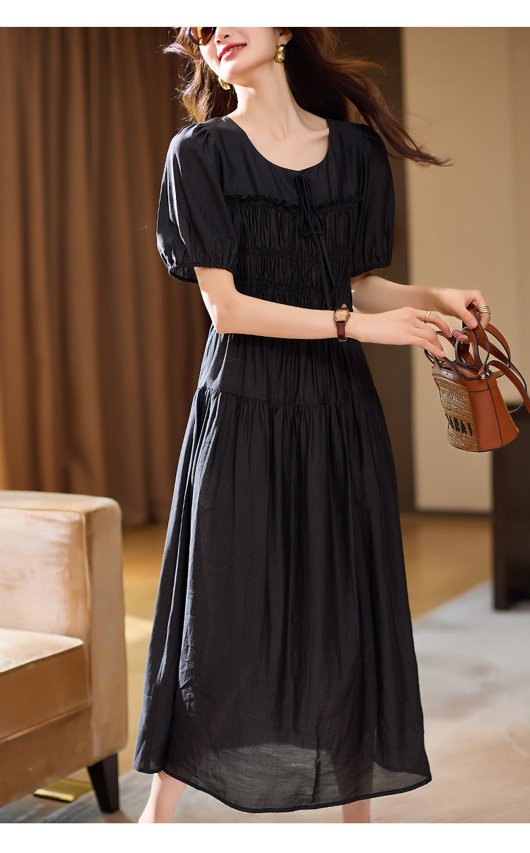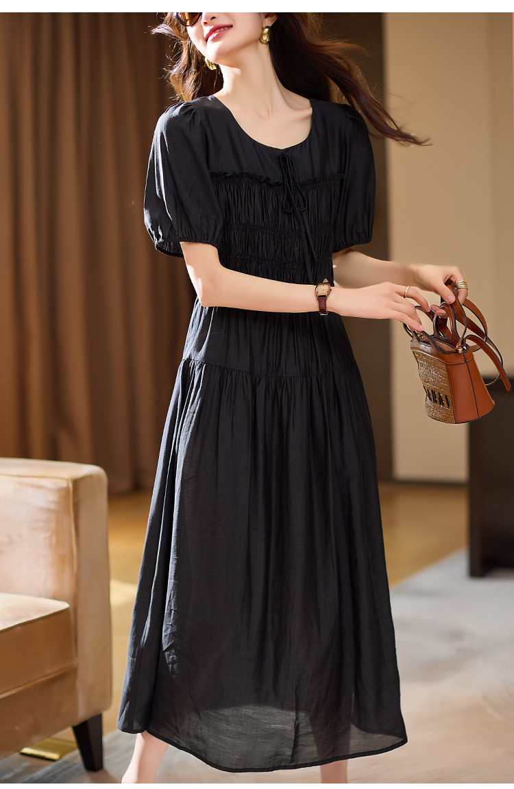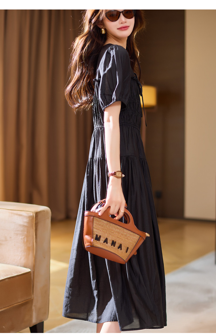 商品名称:优雅气质小黑裙2025夏季新款通勤气质简约收腰显瘦短袖连衣裙 933193