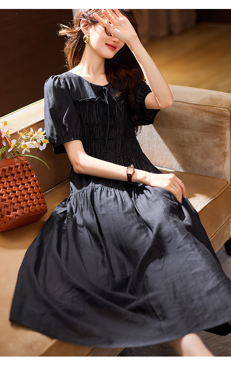 优雅气质小黑裙2025夏季新款通勤气质简约收腰显瘦短袖连衣裙 933193