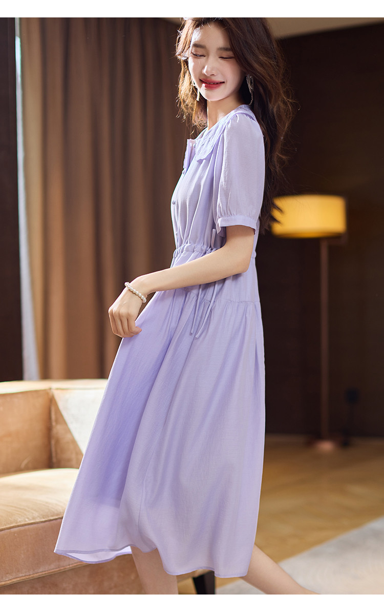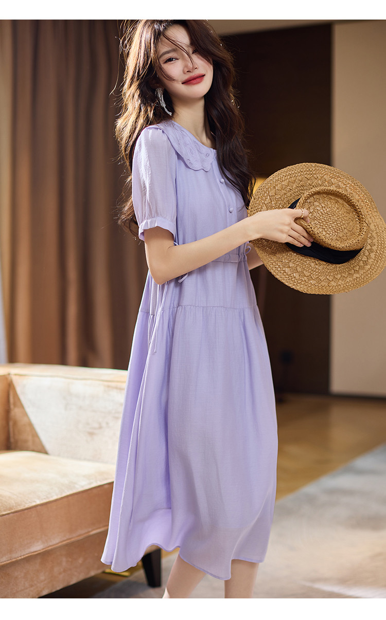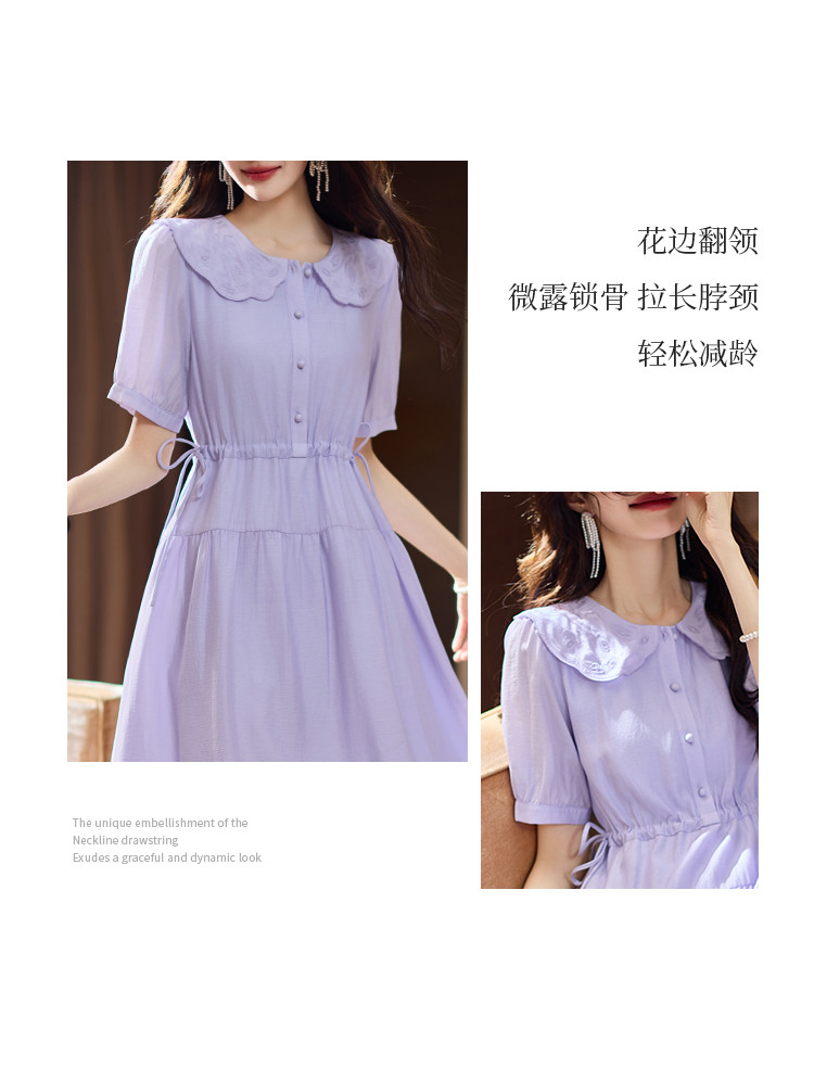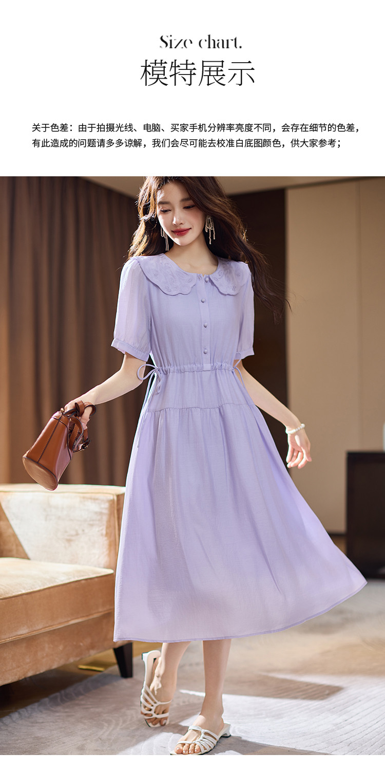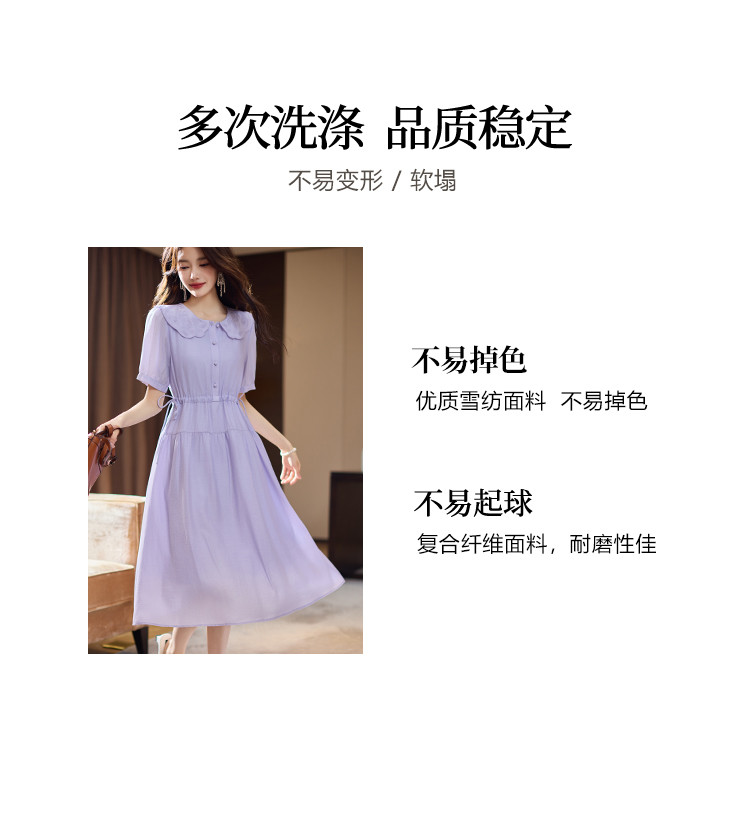 商品名称:2025年夏季新雪纺连衣裙飘逸大裙摆气质浪漫纯色仙女裙中长裙 278729