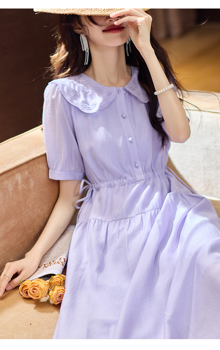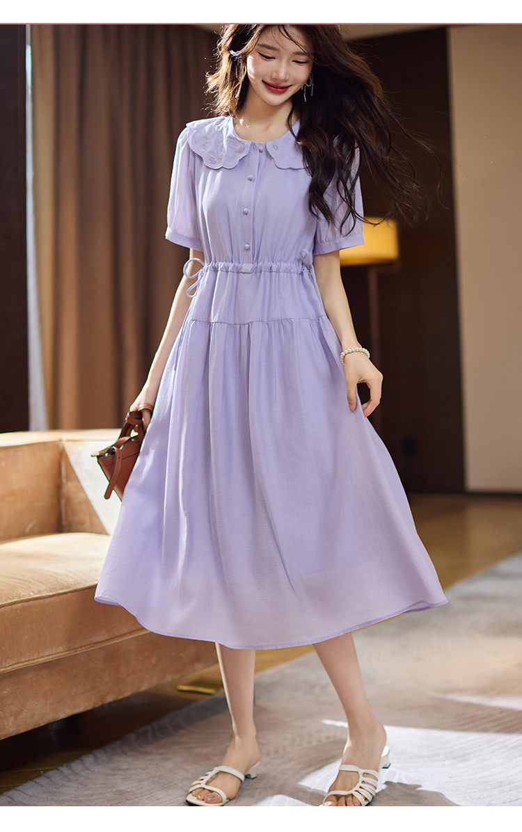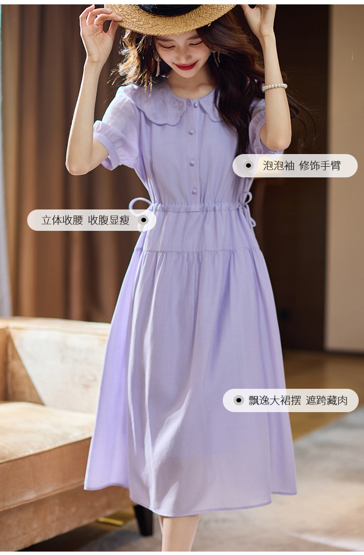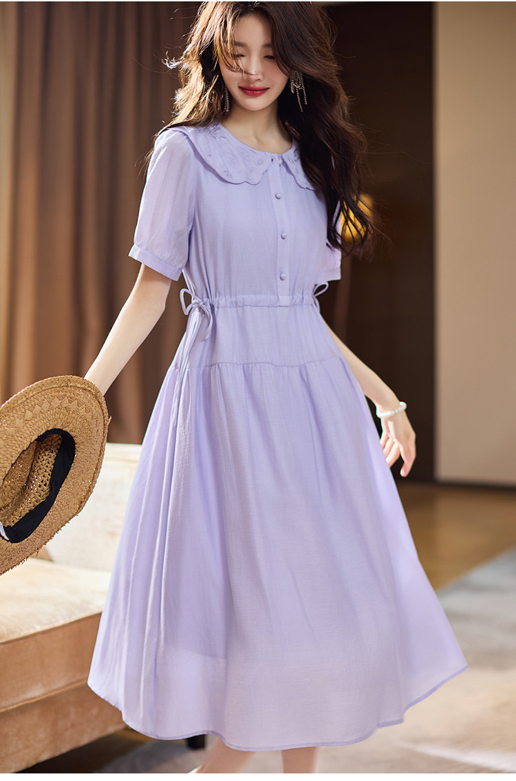 商品名称:2025年夏季新雪纺连衣裙飘逸大裙摆气质浪漫纯色仙女裙中长裙 278729