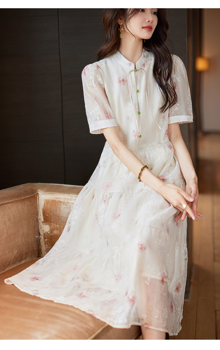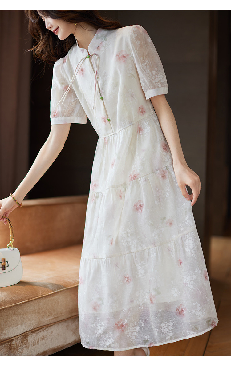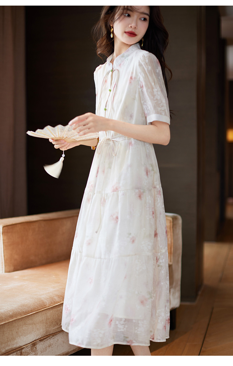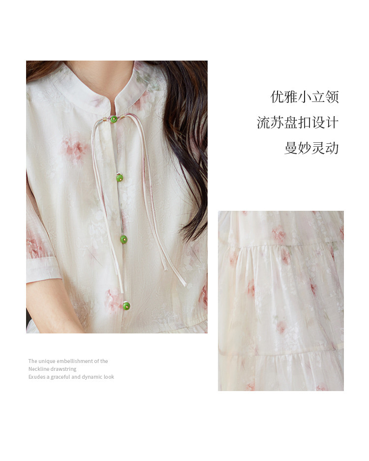 改良新中式连衣裙夏季新款国风古典气质盘扣收腰印花短袖连衣裙 737609