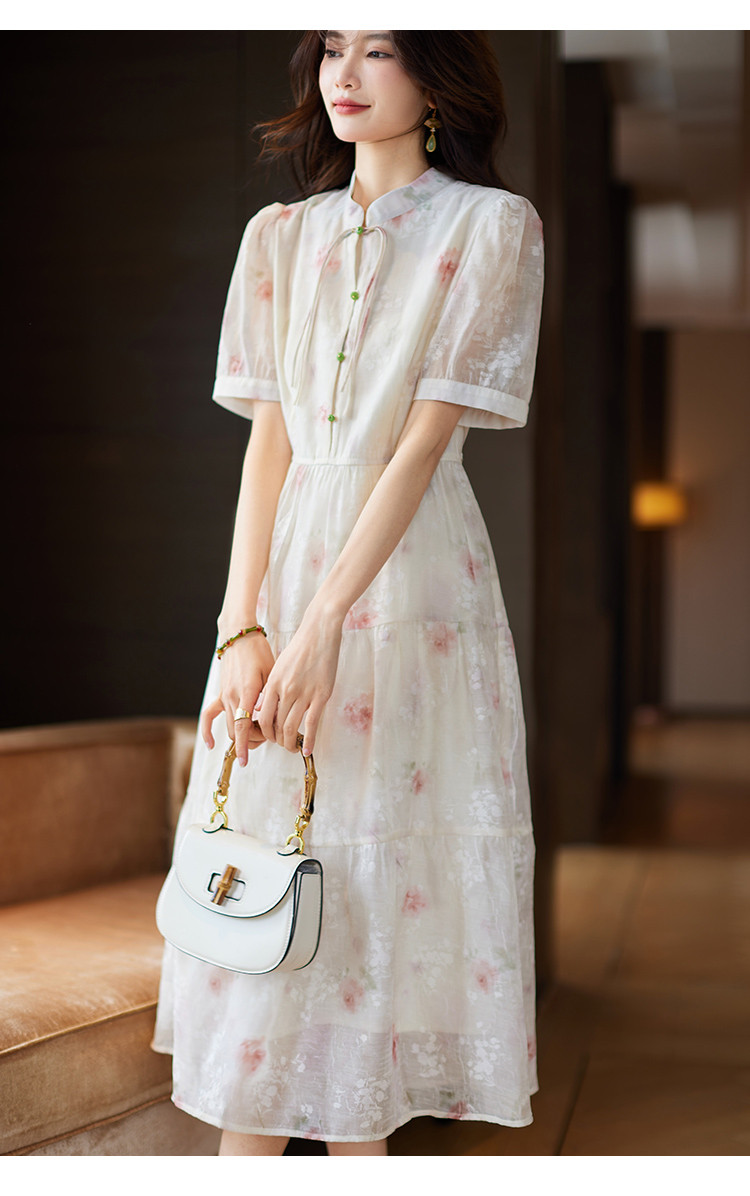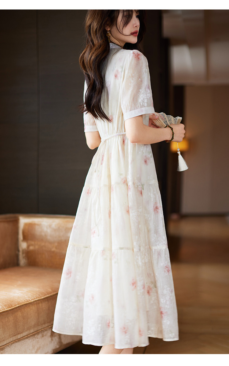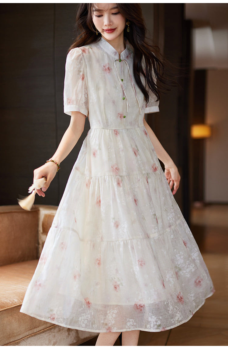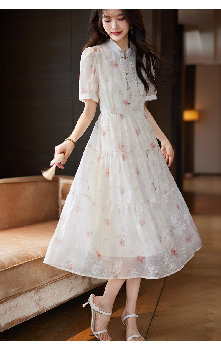 改良新中式连衣裙夏季新款国风古典气质盘扣收腰印花短袖连衣裙 737609