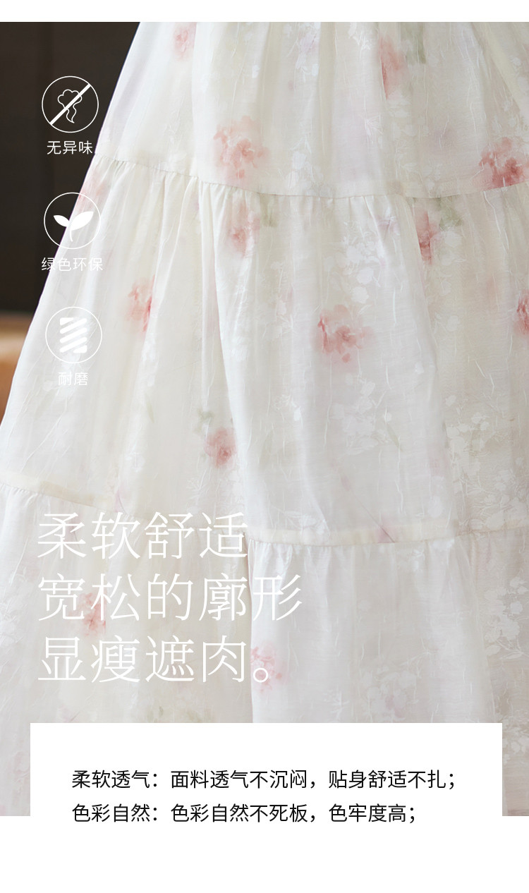 商品名称:改良新中式连衣裙夏季新款国风古典气质盘扣收腰印花短袖连衣裙 737609