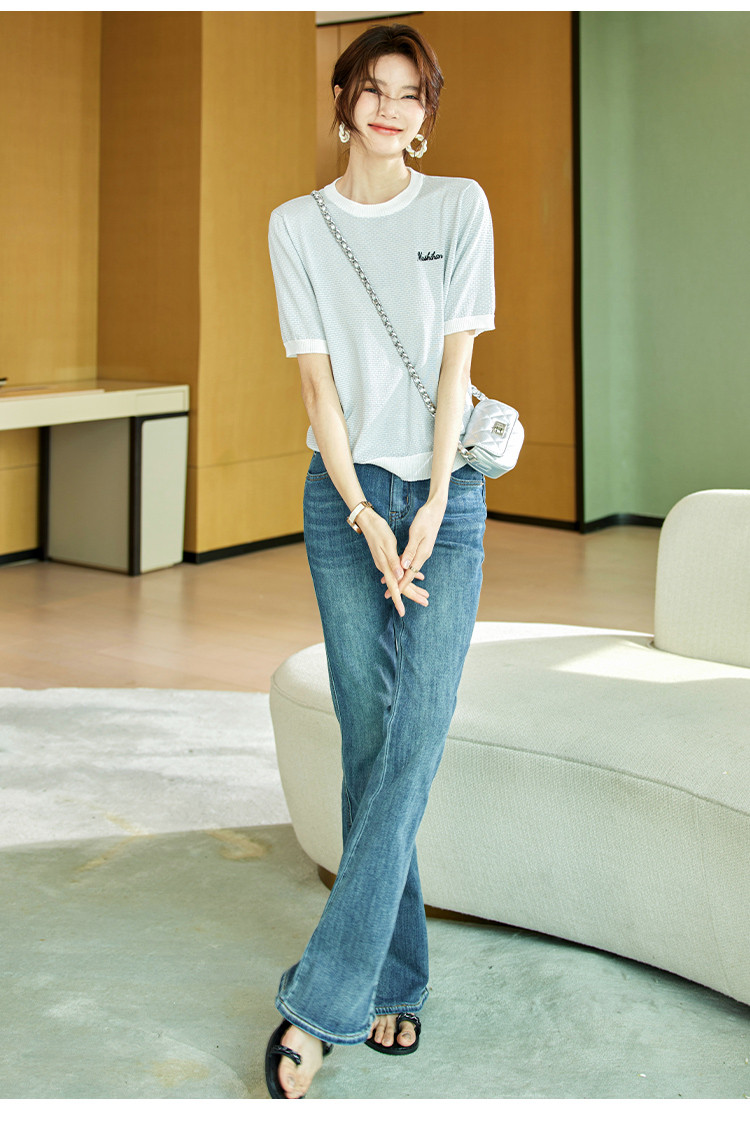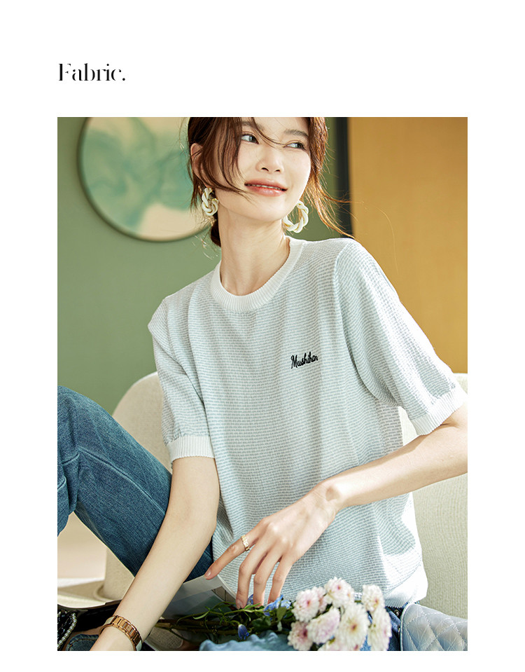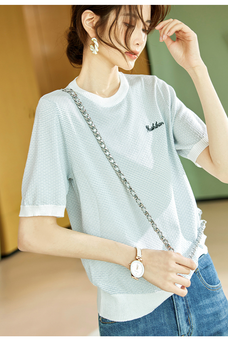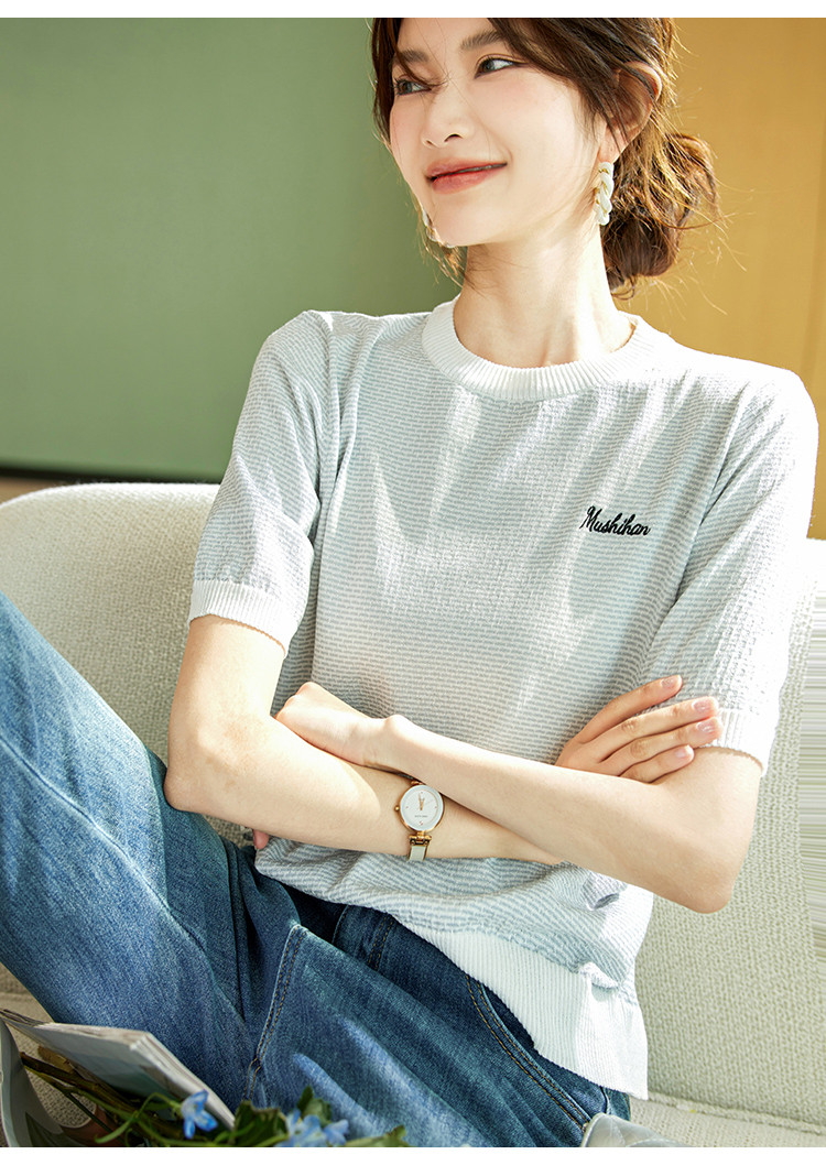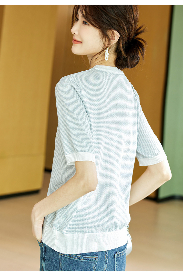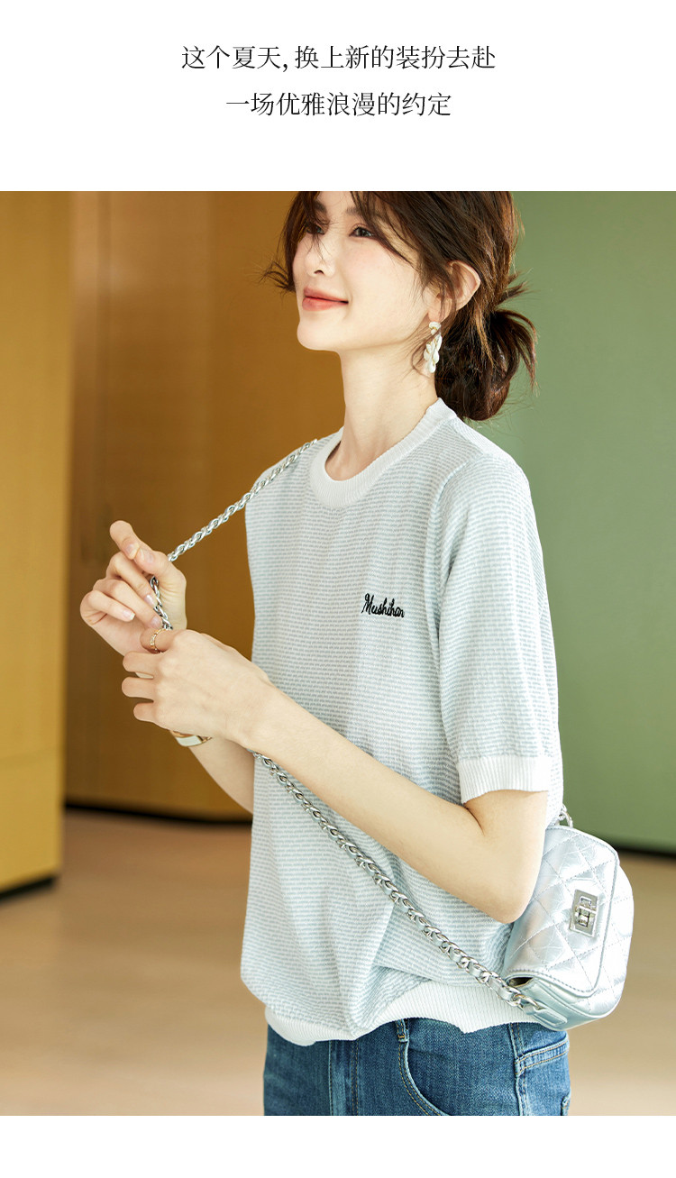 商品名称:休闲短袖女t恤高级感2025春夏新款撞色宽松舒适女式针织衫 526729