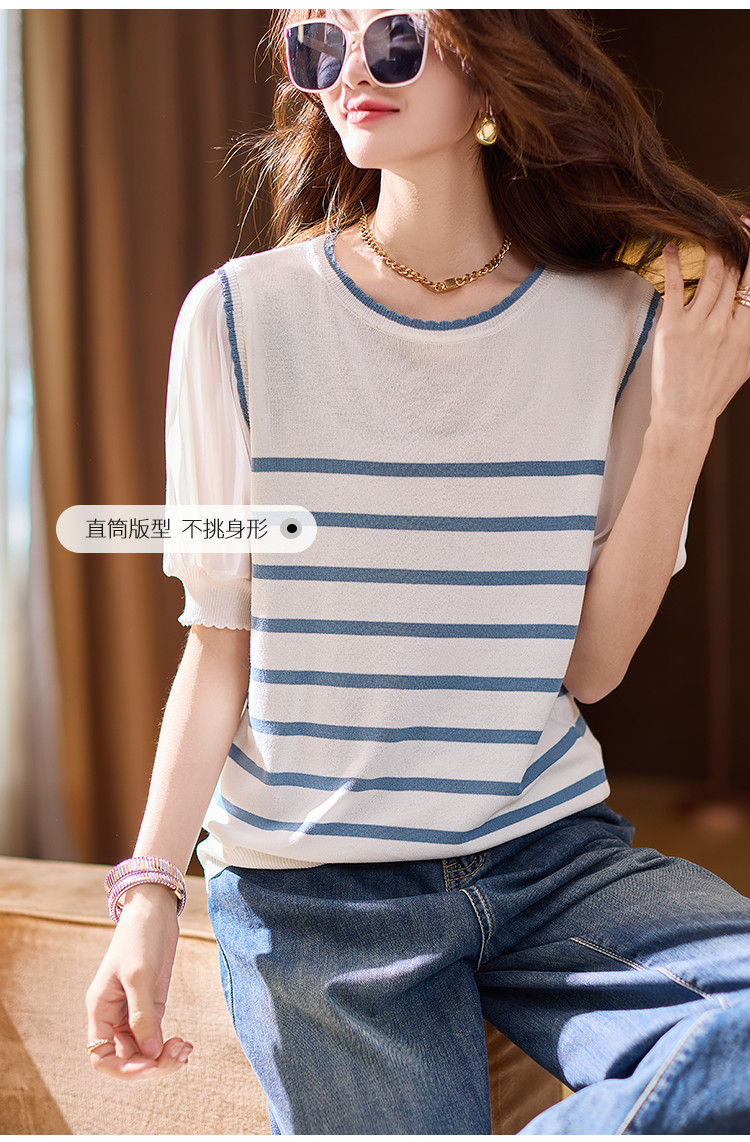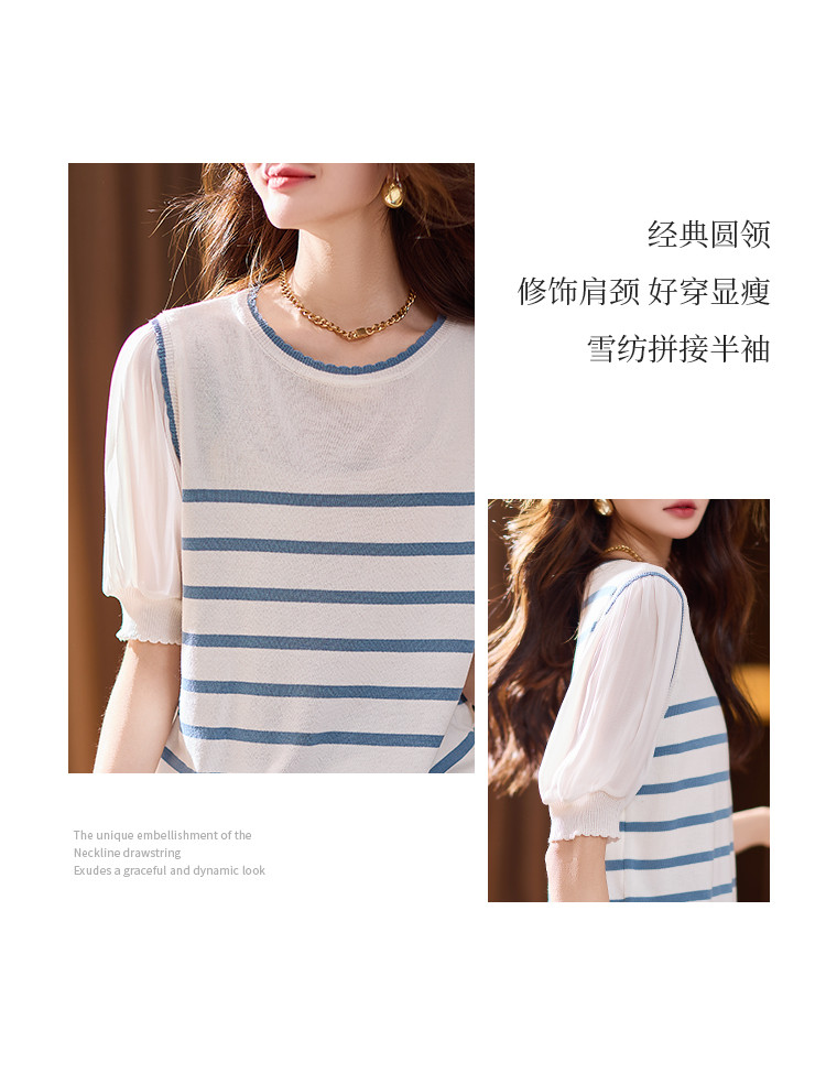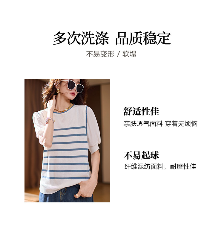 商品名称:经典条纹撞色T恤2025夏季新款宽松休闲百搭条纹圆领短袖T恤 920905