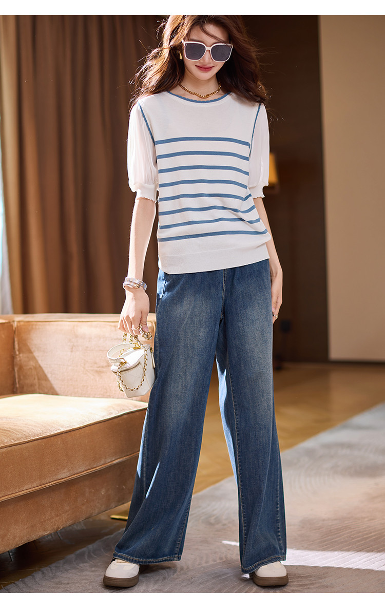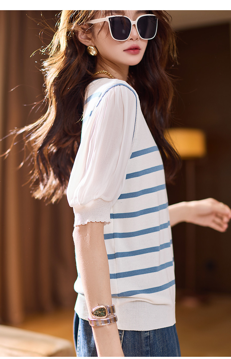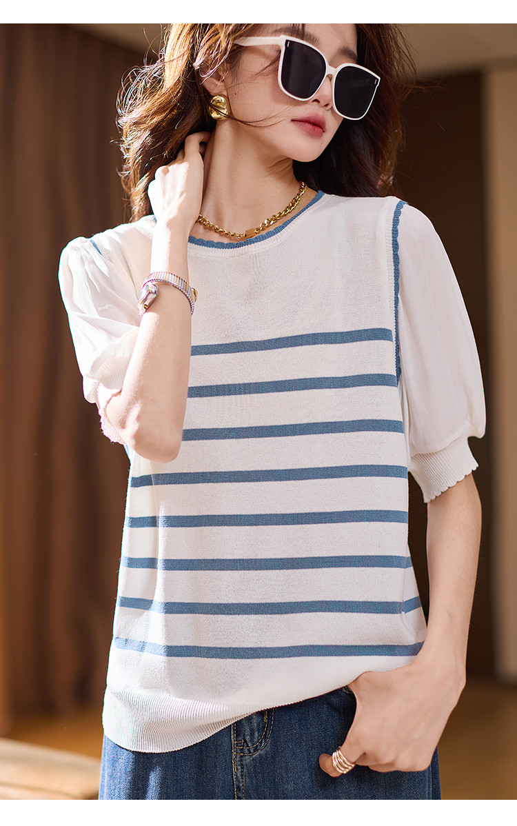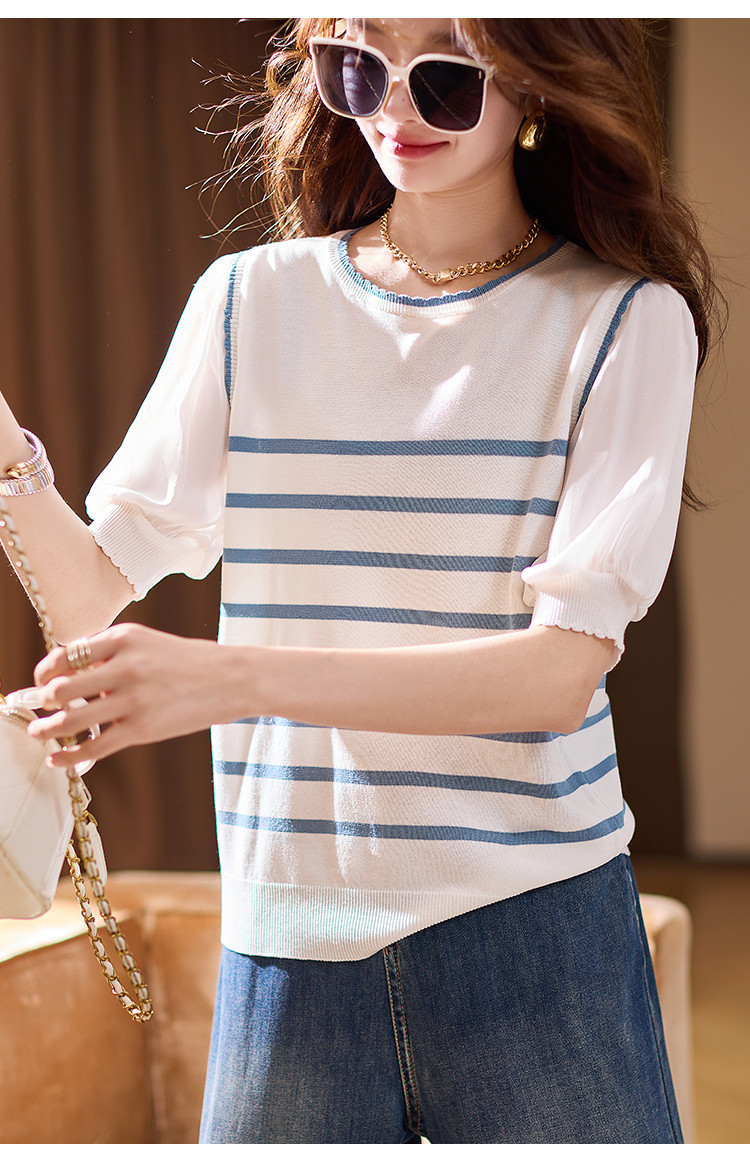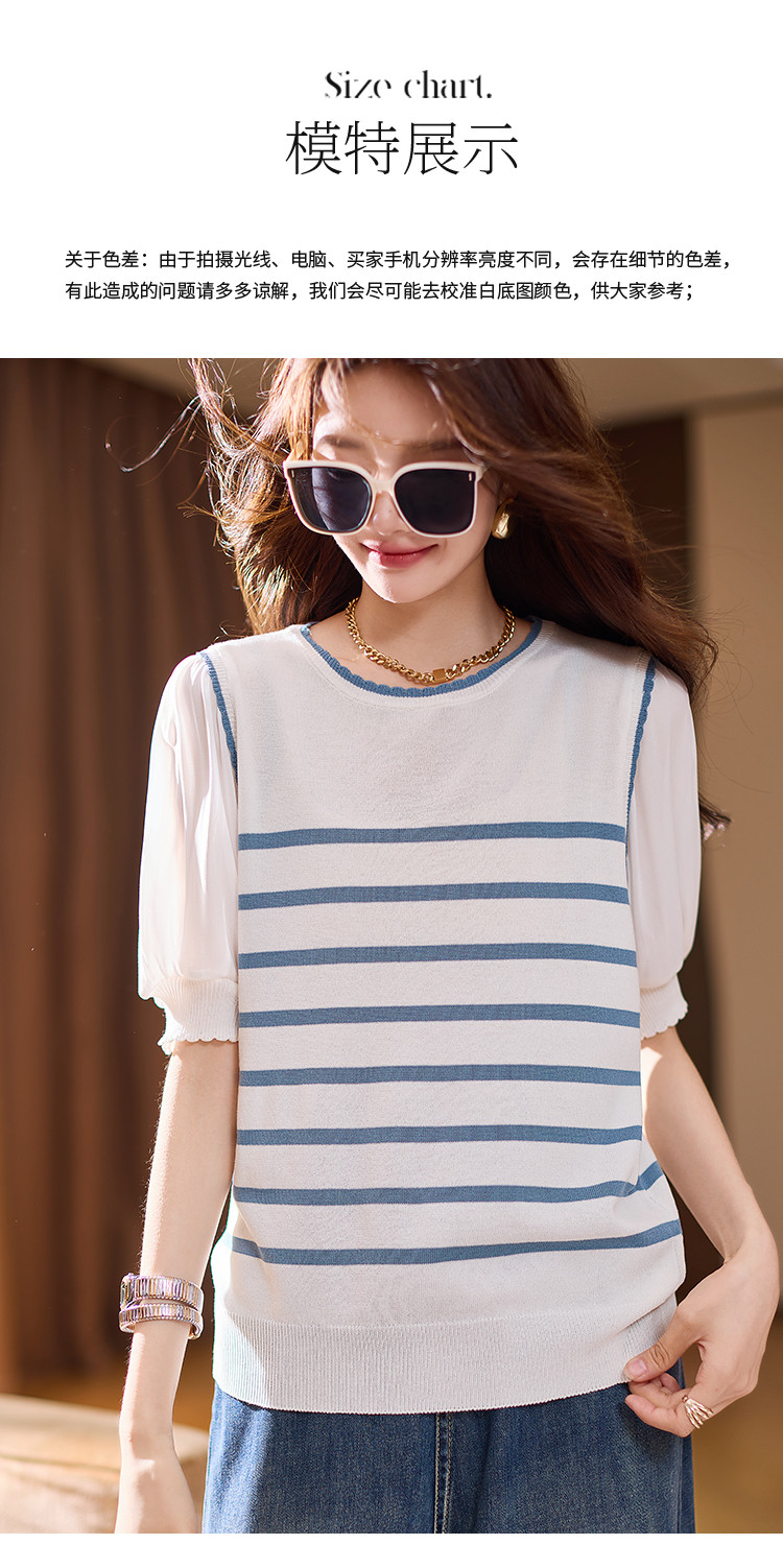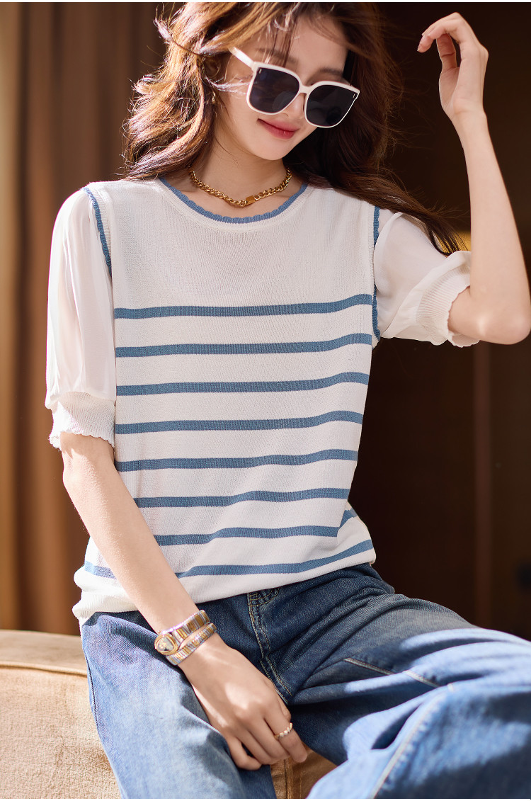 经典条纹撞色T恤2025夏季新款宽松休闲百搭条纹圆领短袖T恤 920905