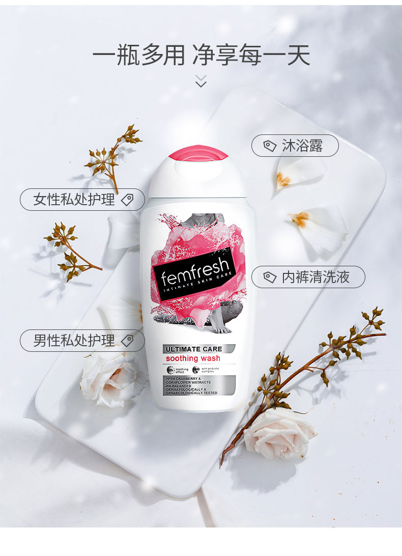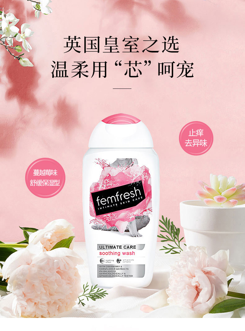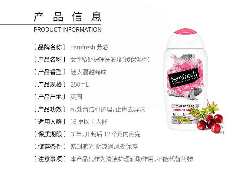 商品名称:FEMFRESH/芳芯 女性护理清洁液 舒缓保湿 蔓越莓味 250ml