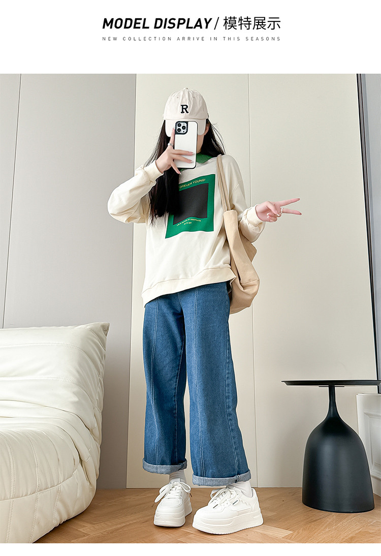 【拼色侧边杠】春秋款女式休闲时尚撞色设计甜美简约日常针织衫 489675