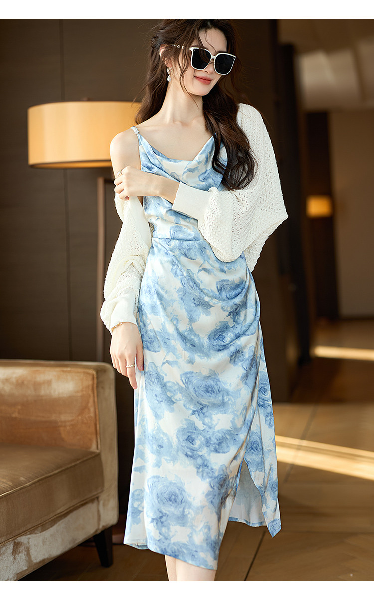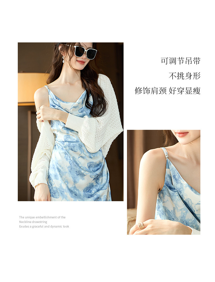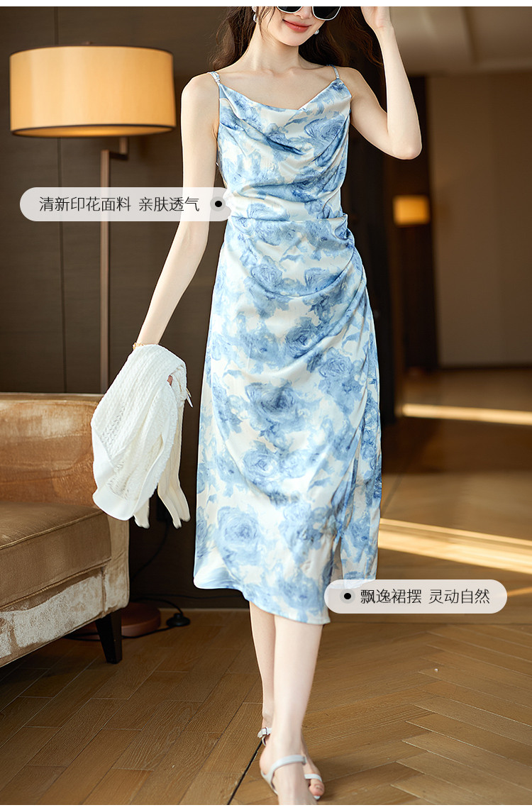 商品名称:浪漫假日吊带女式连衣裙夏季灵动荡领度假休闲风海浪飘逸吊带裙 532681