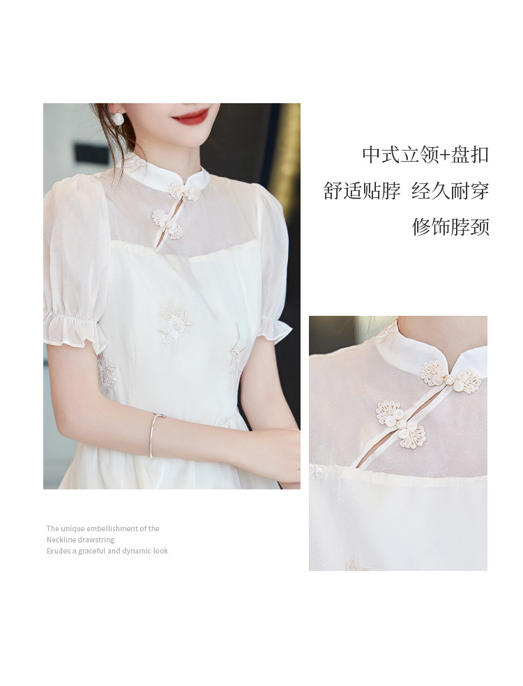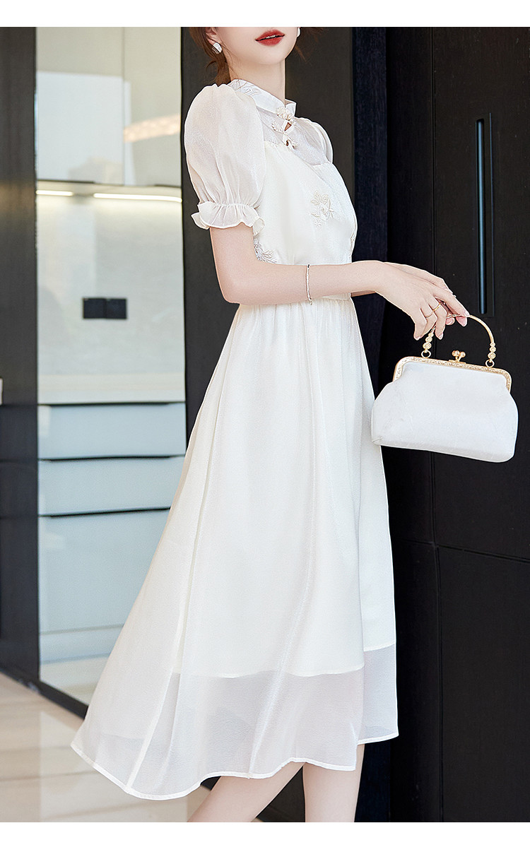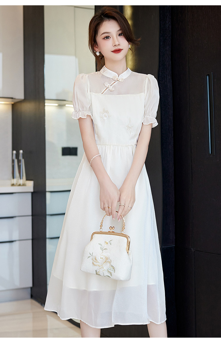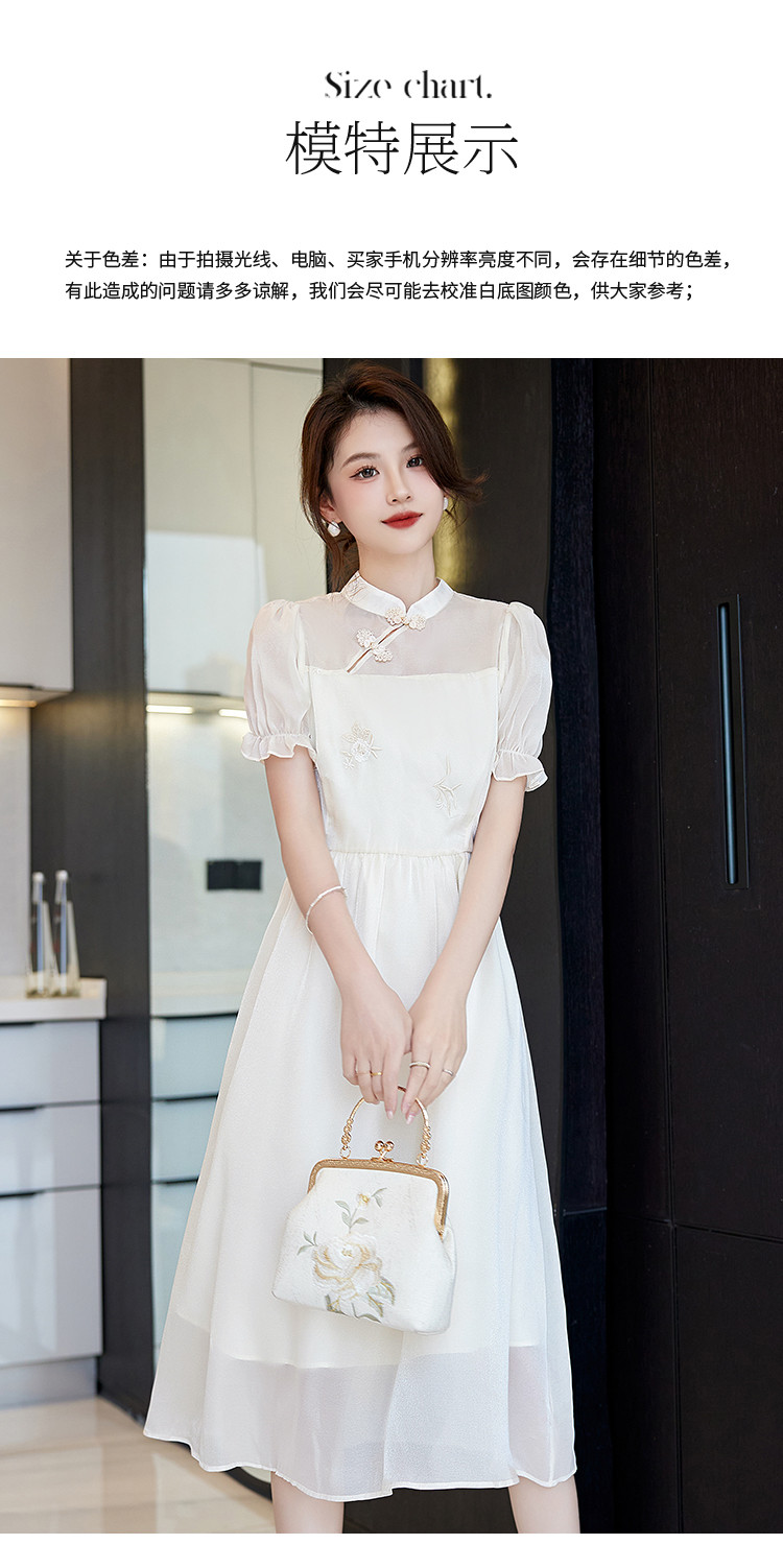 商品名称:改良新中式连衣裙2025夏季新款优雅古典国风斜襟收腰女式长裙 642313