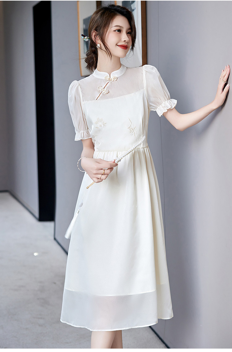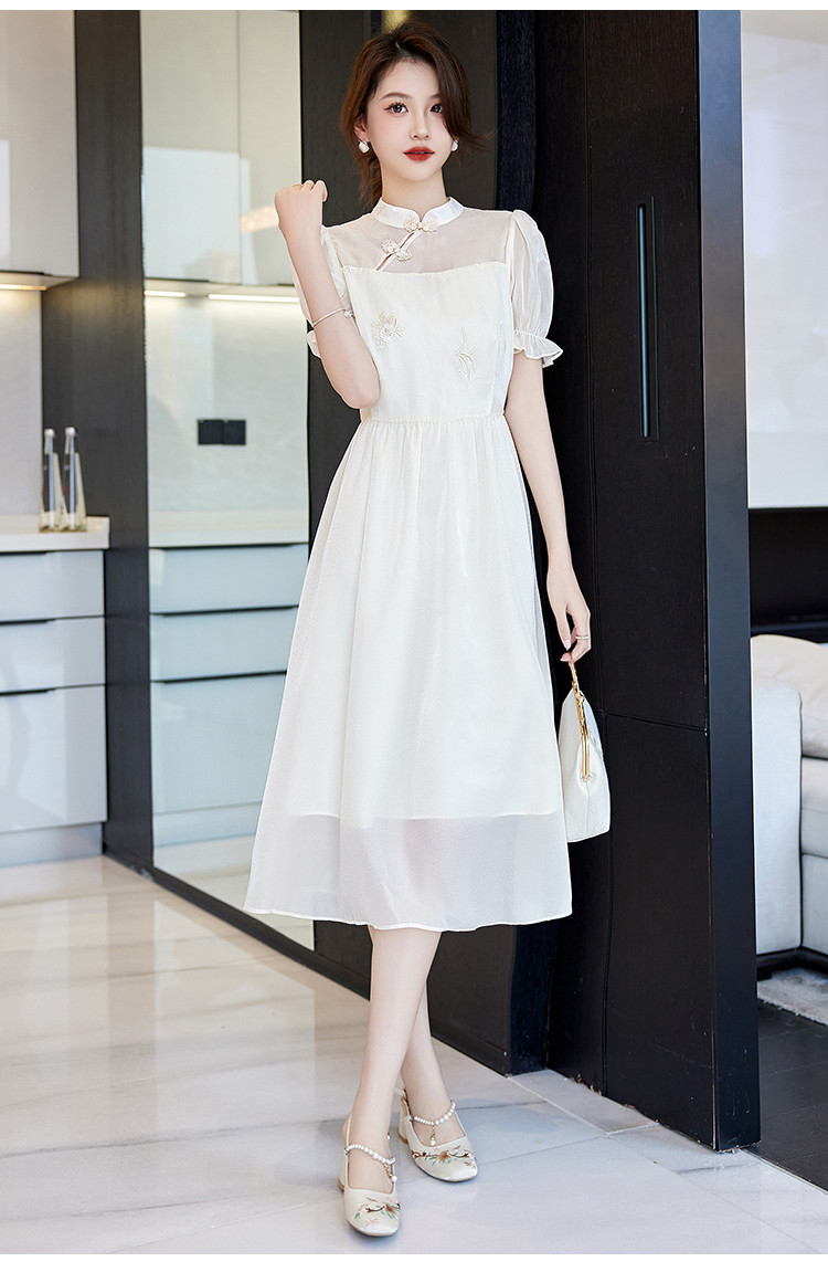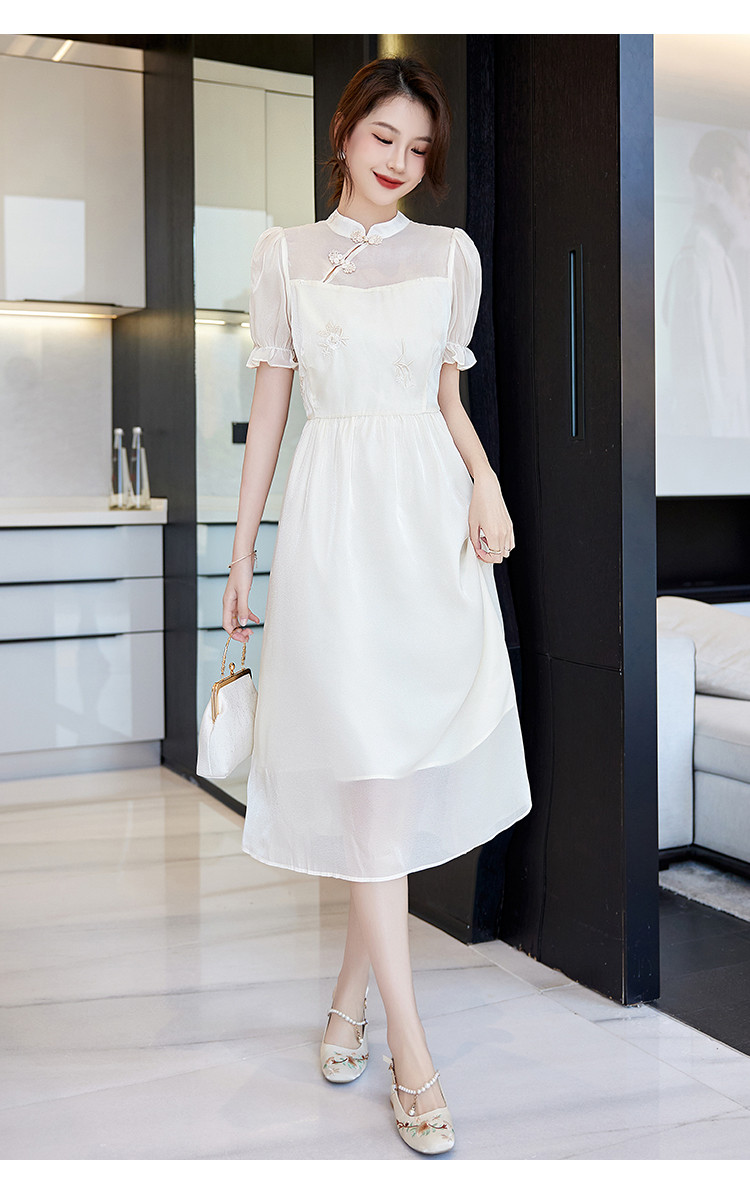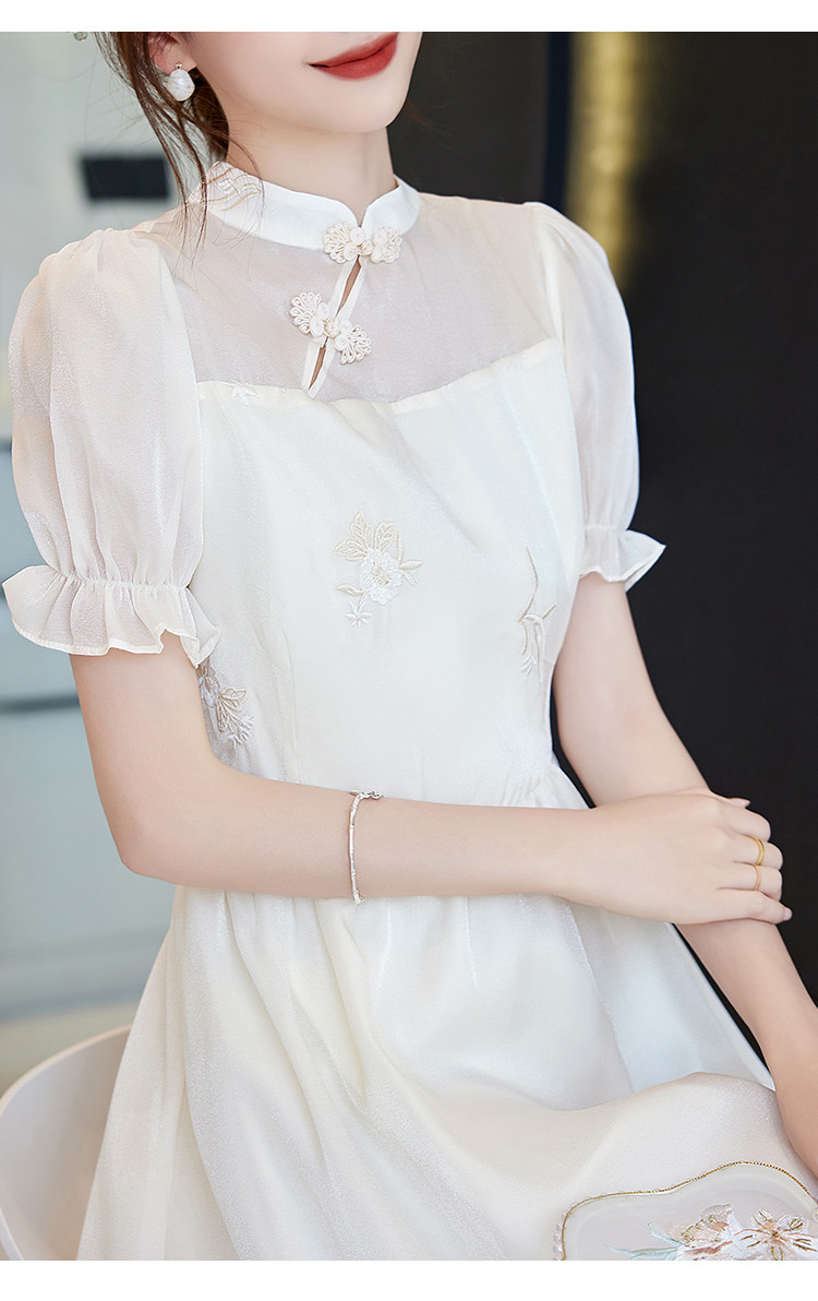 商品名称:改良新中式连衣裙2025夏季新款优雅古典国风斜襟收腰女式长裙 642313