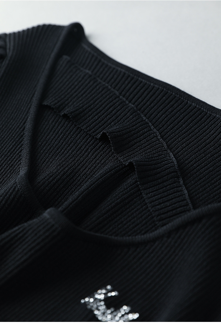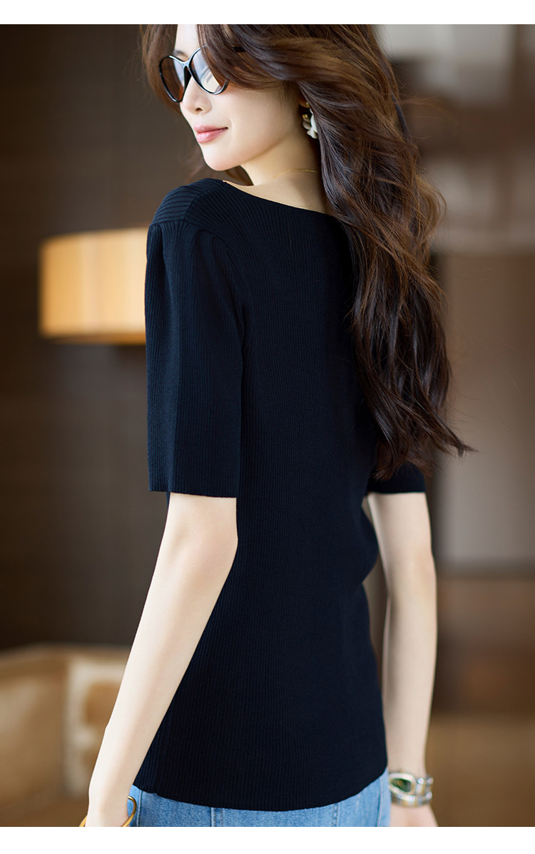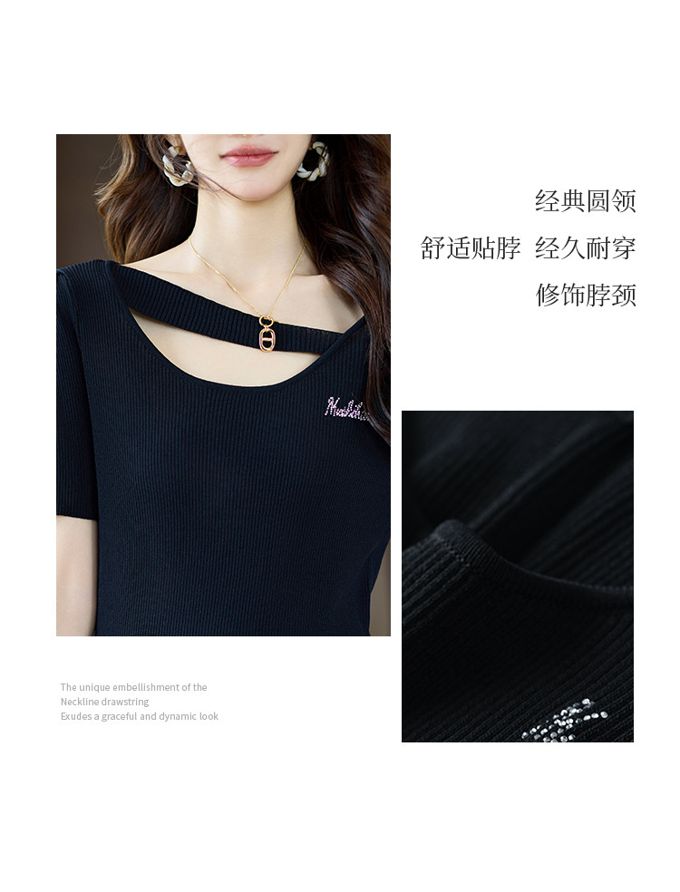 商品名称:【纯欲辣妹风】2025夏季女短袖T恤圆领针织衫黑色条纹性感 911497