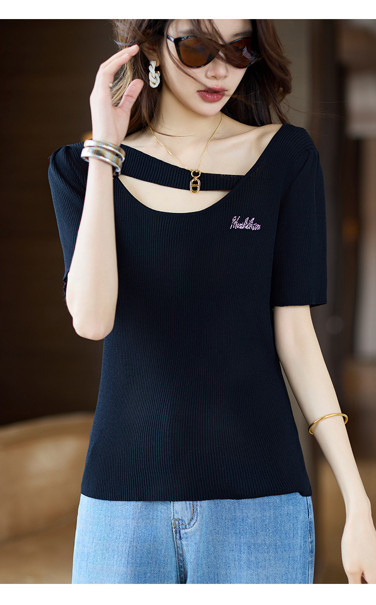 【纯欲辣妹风】2025夏季女短袖T恤圆领针织衫黑色条纹性感 911497