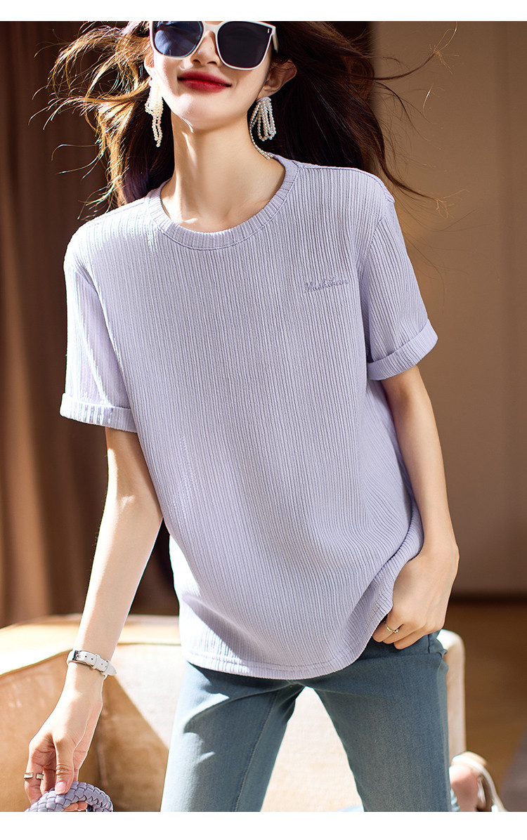商品名称:舒适趣味绣花短袖T恤女2025夏季学院风百搭休闲圆领上衣 782089