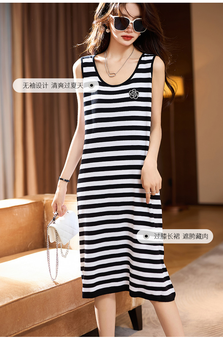 商品名称:经典条纹无袖连衣裙2025夏季新款亲肤舒适简约休闲直筒背心裙 126729