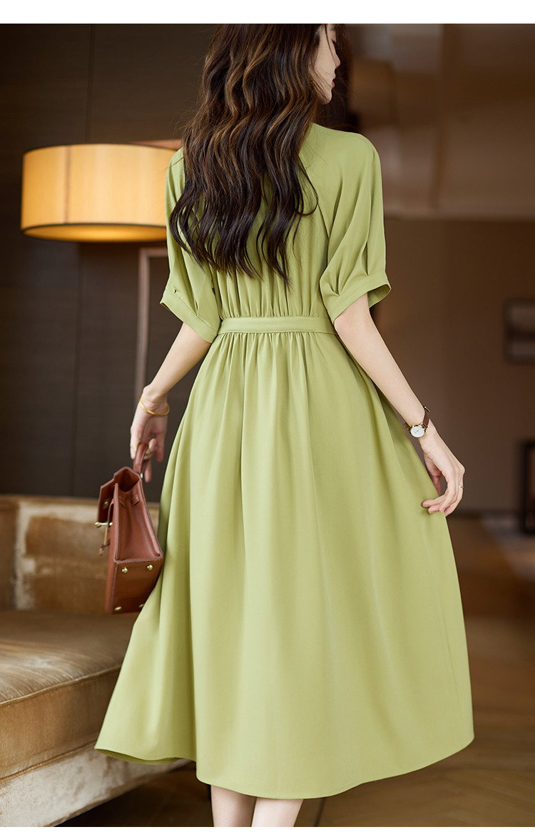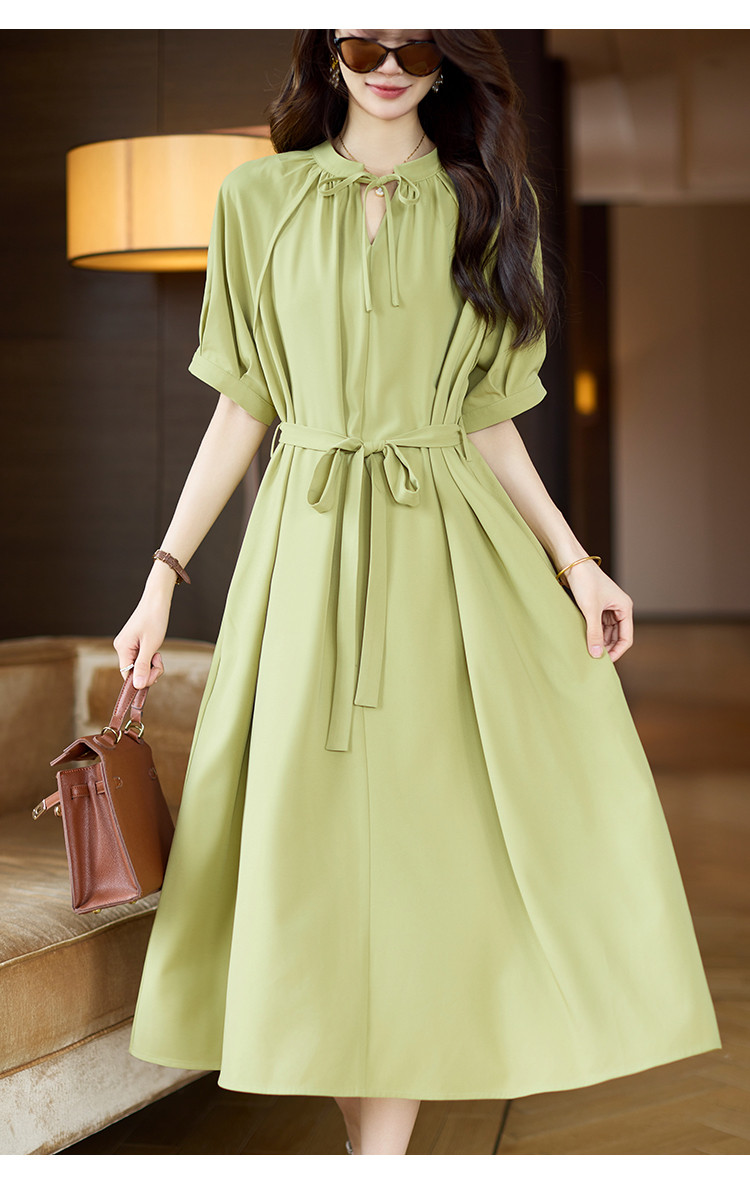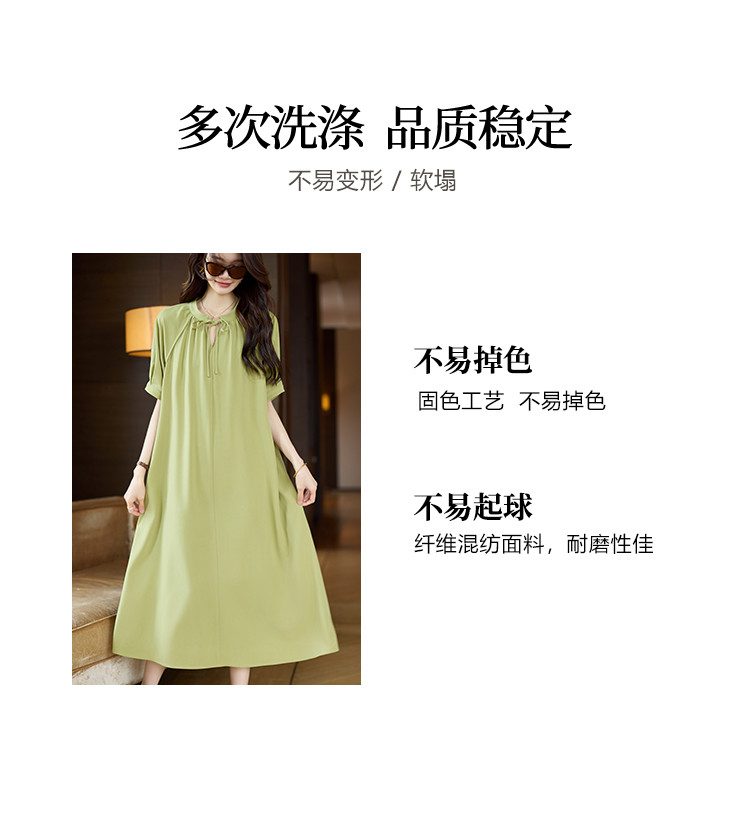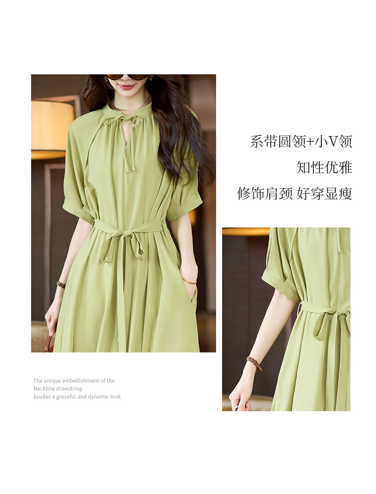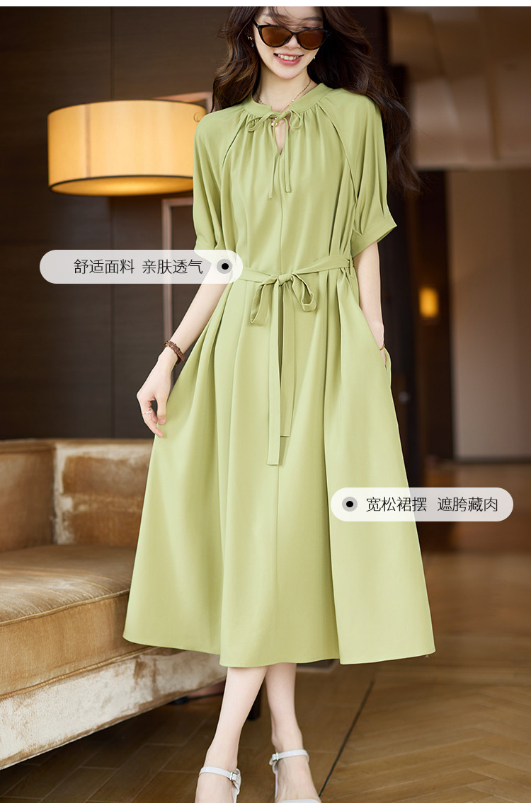 商品名称:清新法式连衣裙女2025夏季新款高级感优雅通勤收腰短袖长裙 040073