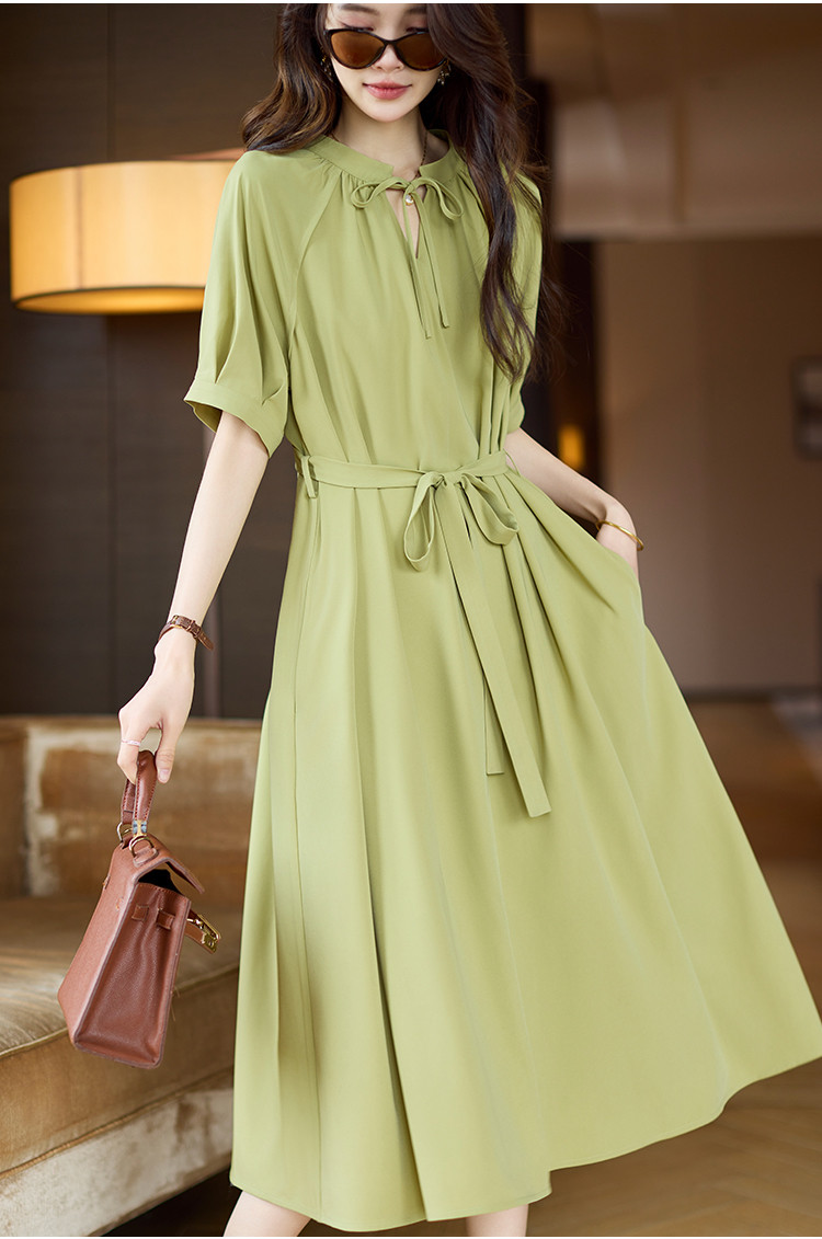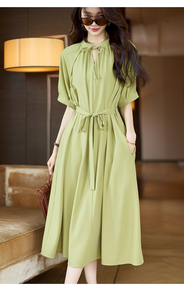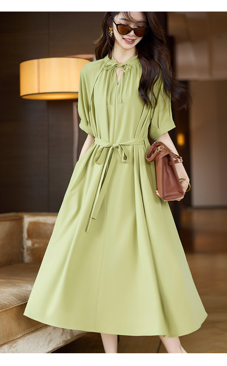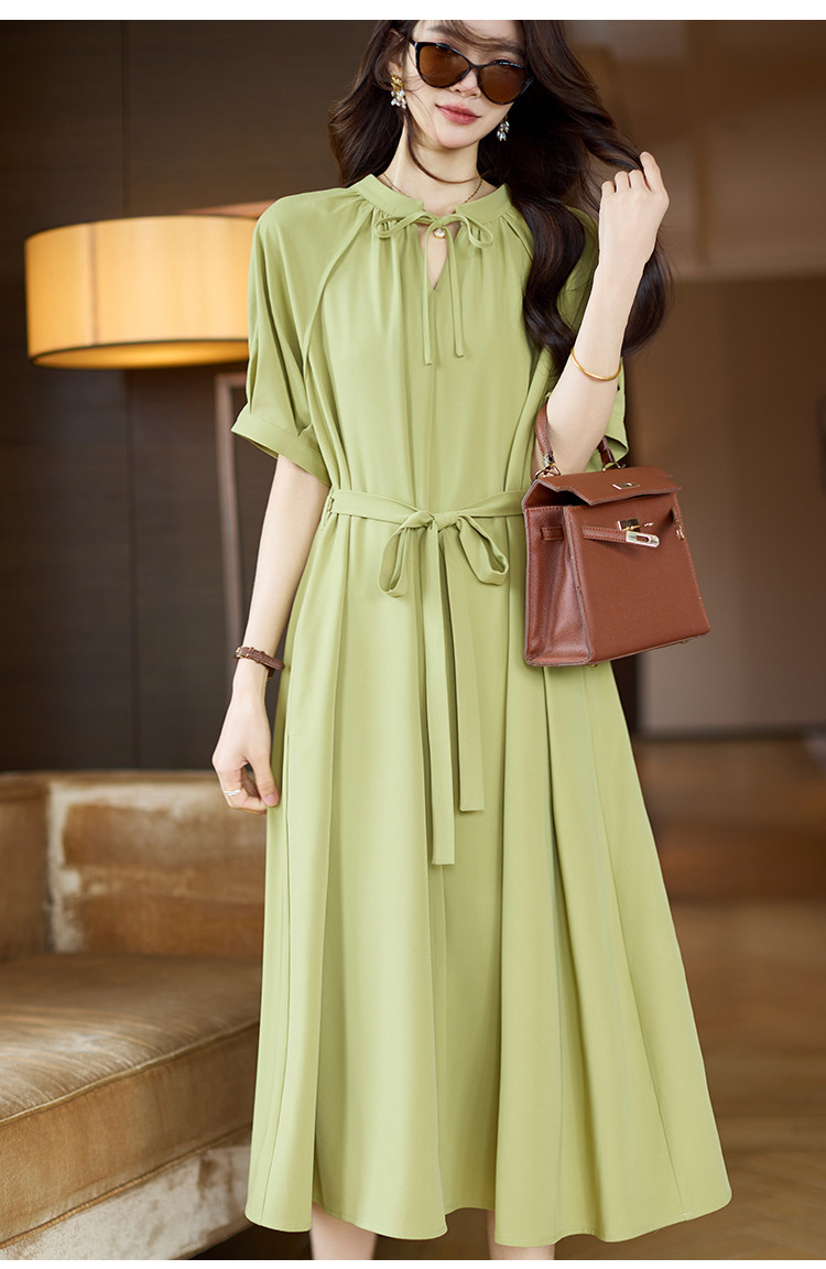 商品名称:清新法式连衣裙女2025夏季新款高级感优雅通勤收腰短袖长裙 040073