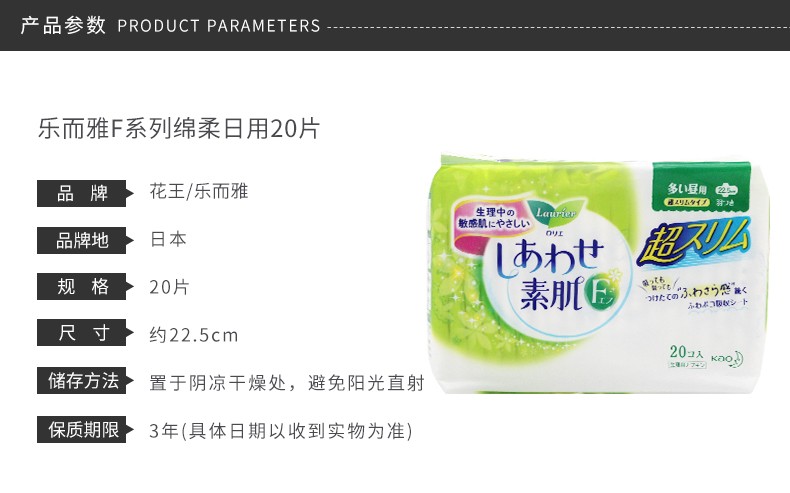 商品名称:【新老版本随机】LAURÍER/乐而雅 透气绵柔超丝薄卫生巾 日用 护翼型 F系列 22.5CM*20片