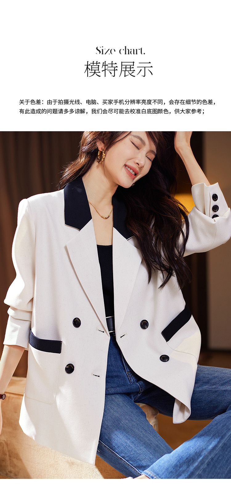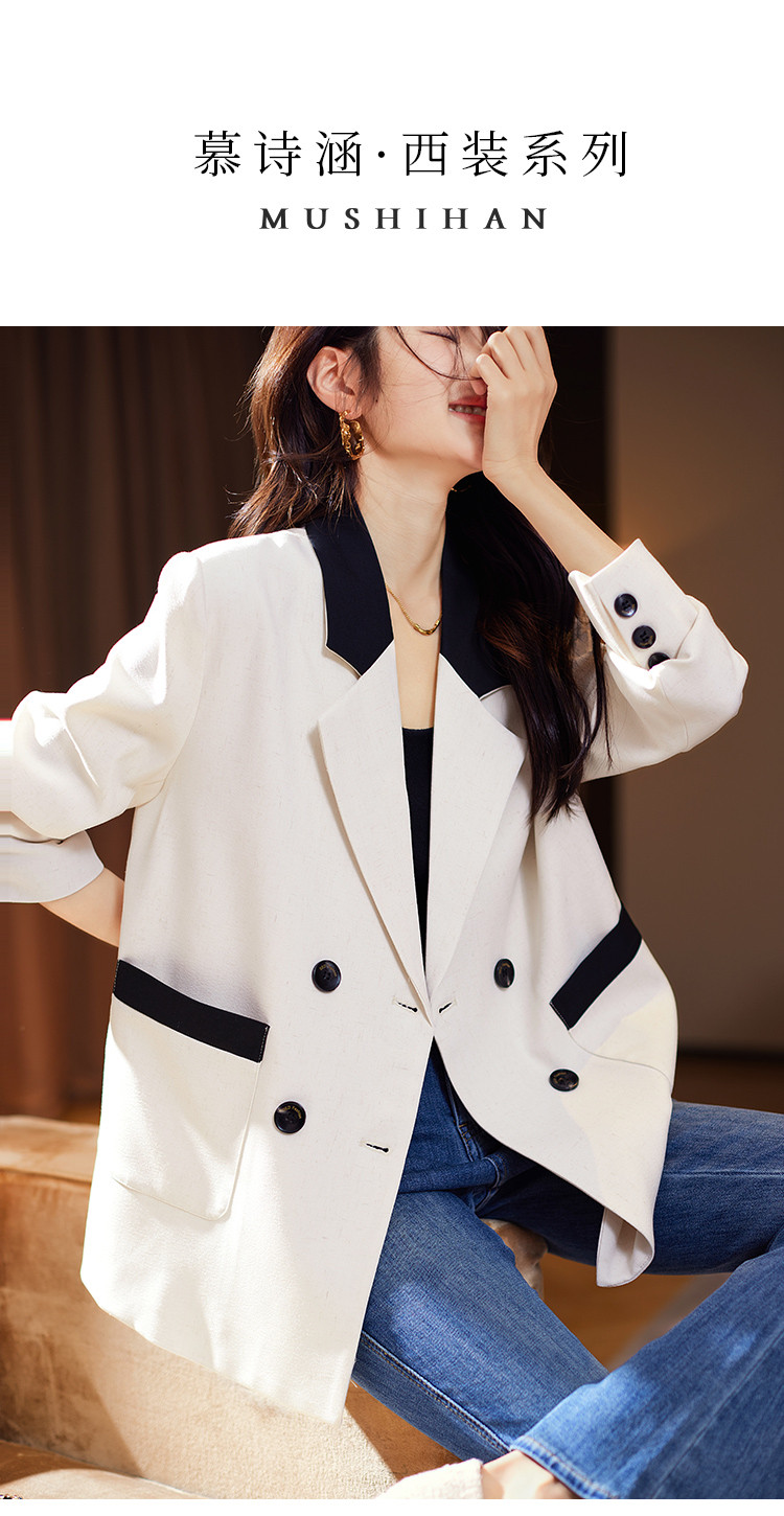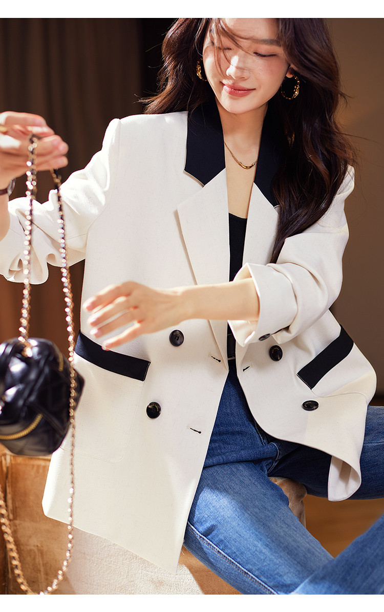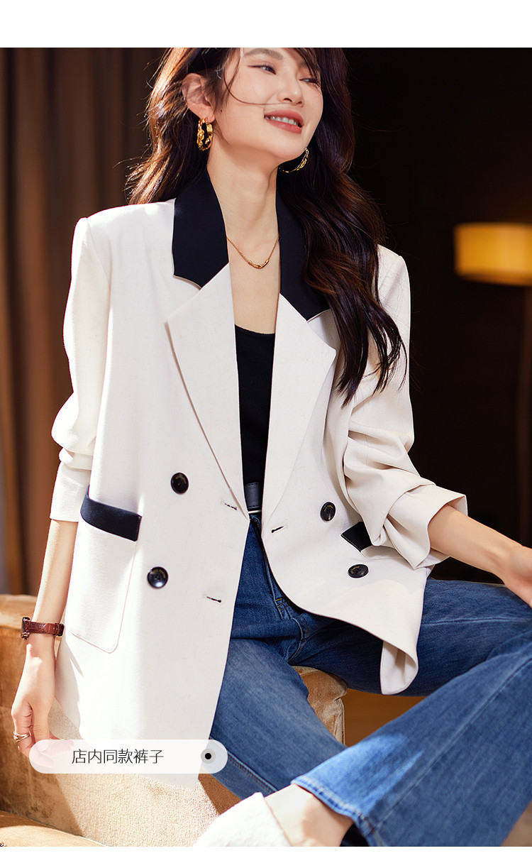 商品名称:通勤西装外套2025年春夏新款撞色高级感休闲西装宽松女式外套 990217