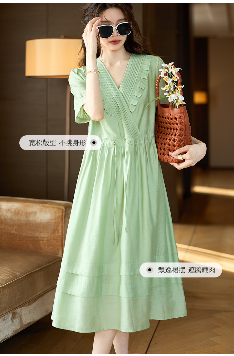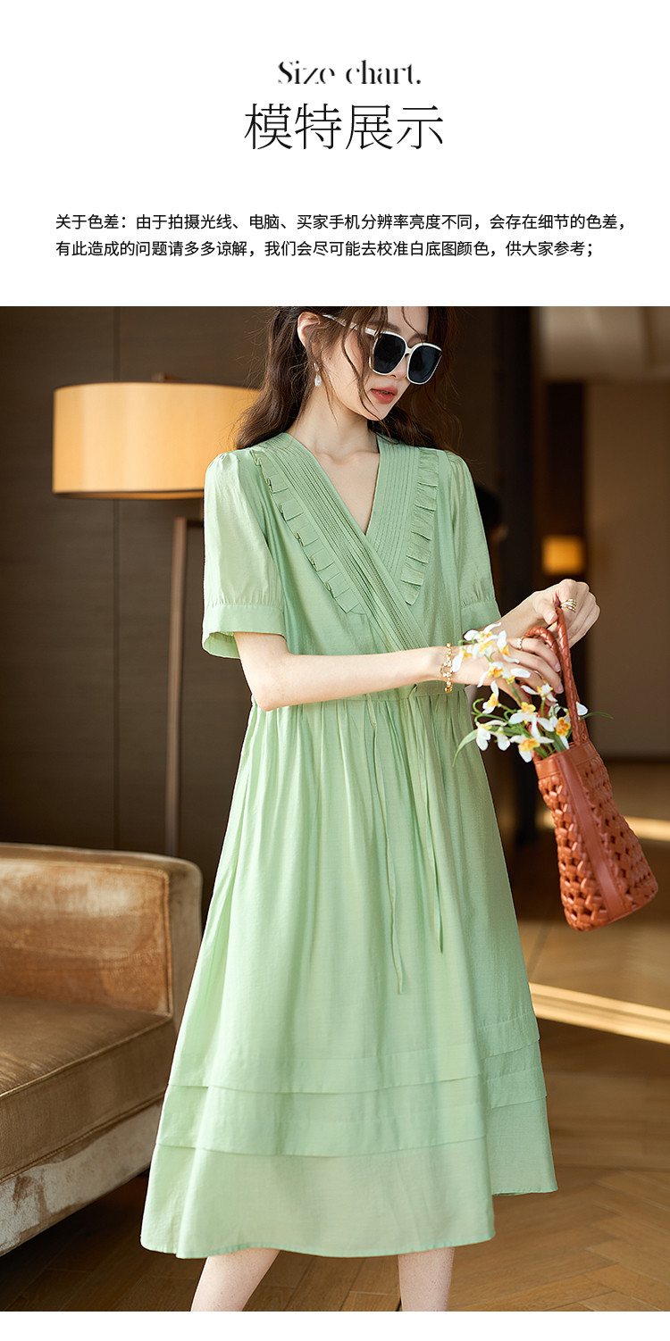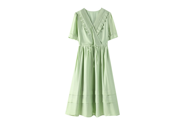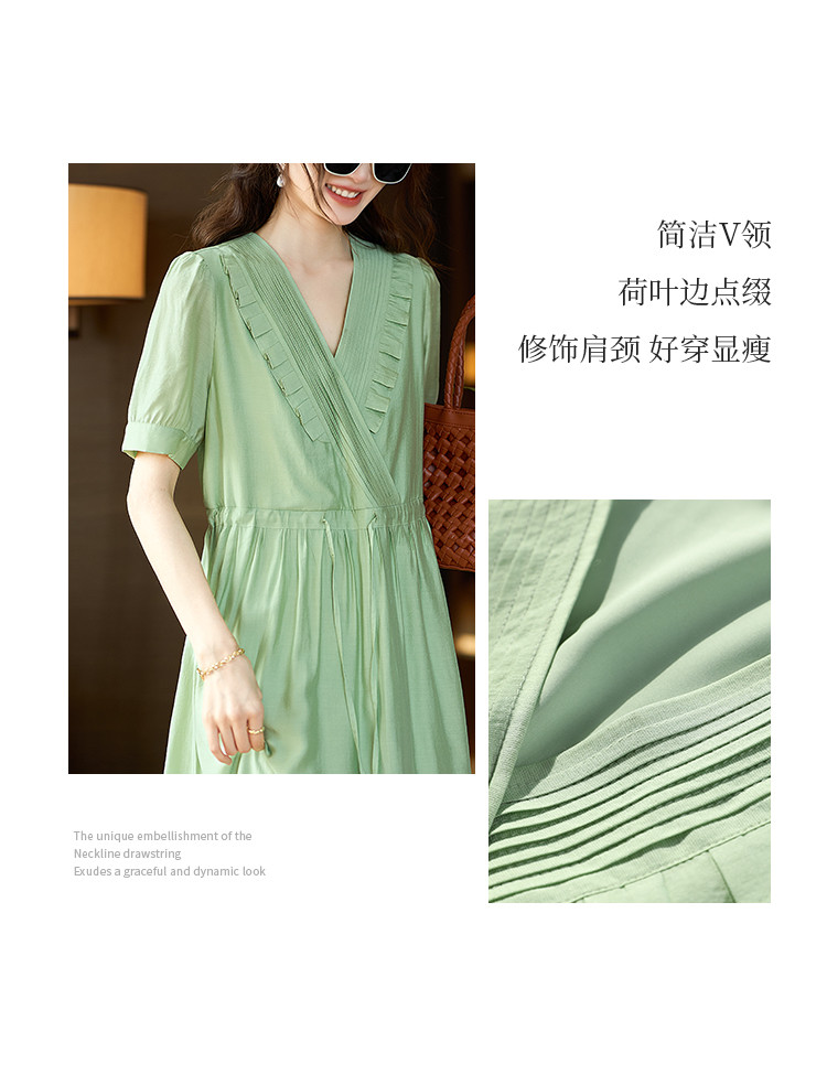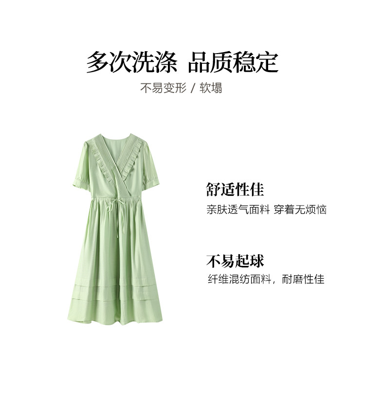 商品名称:清新荷叶领连衣裙2025夏季新款优雅文艺V领收腰显瘦连衣裙女 602121