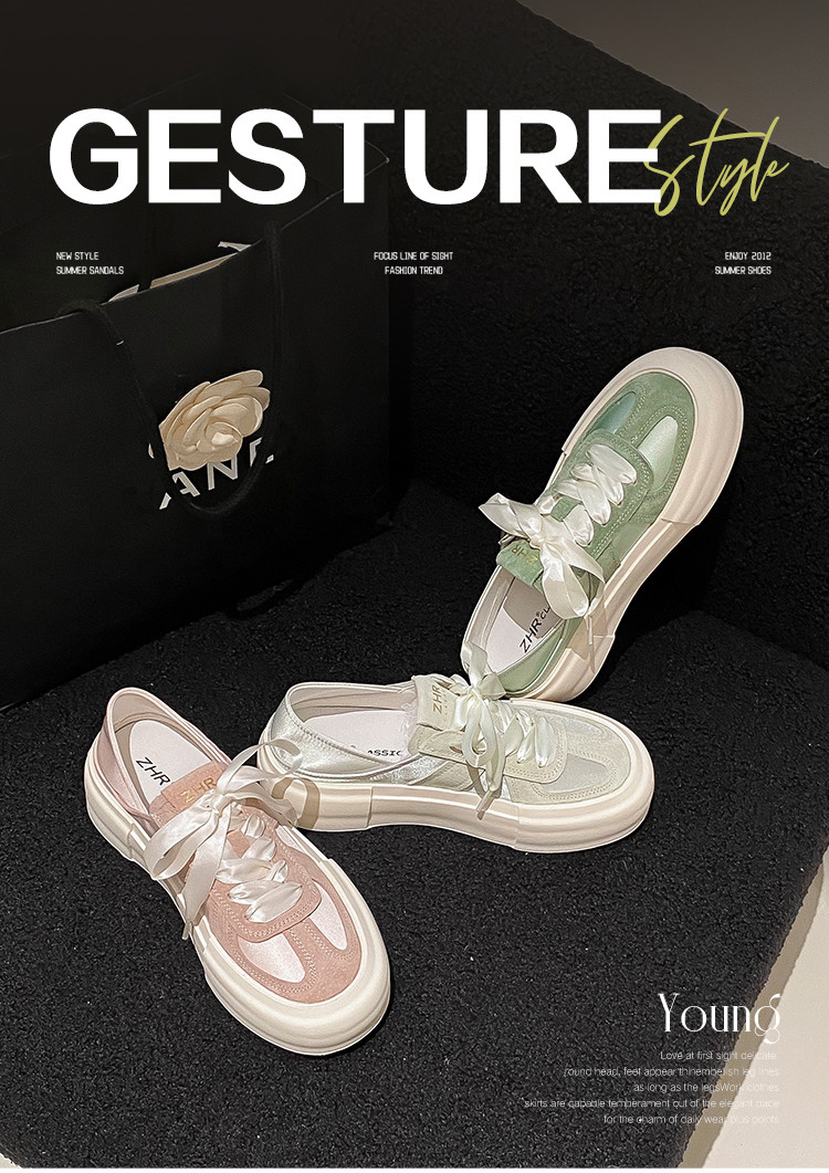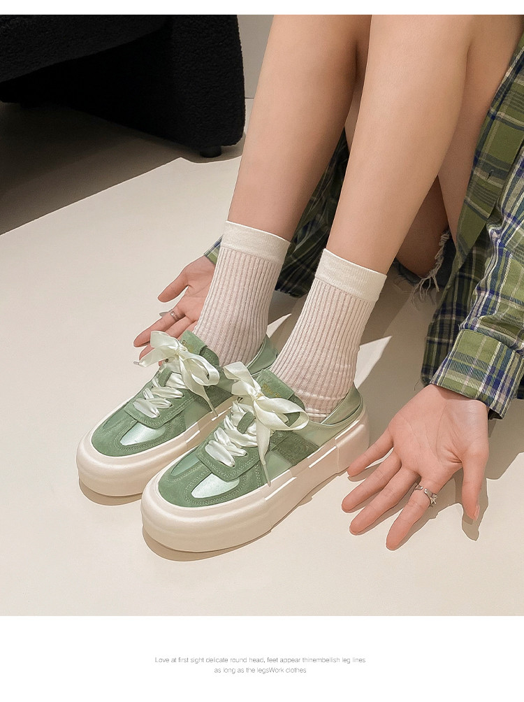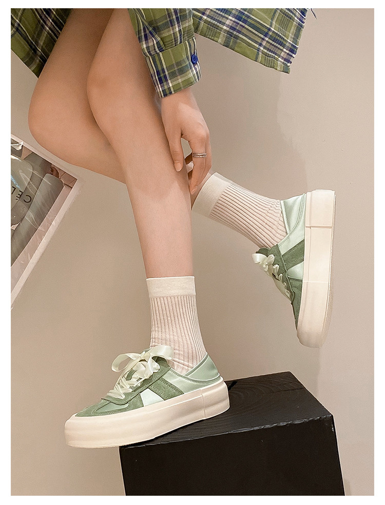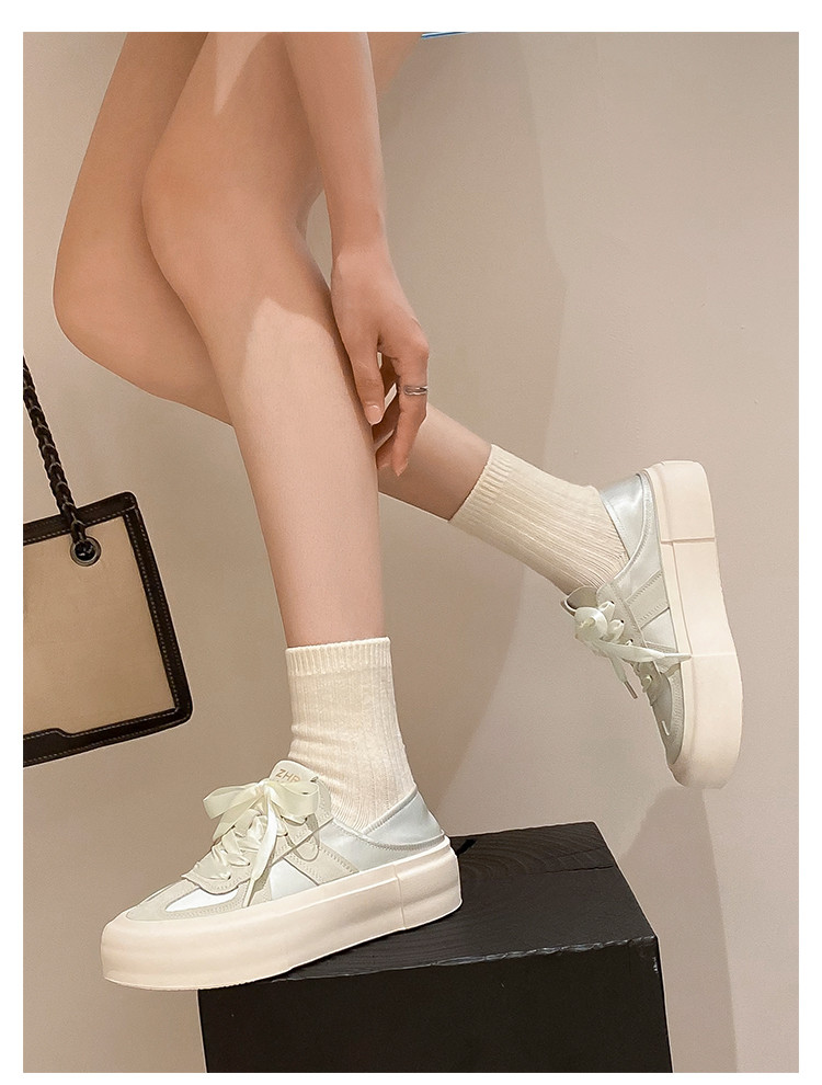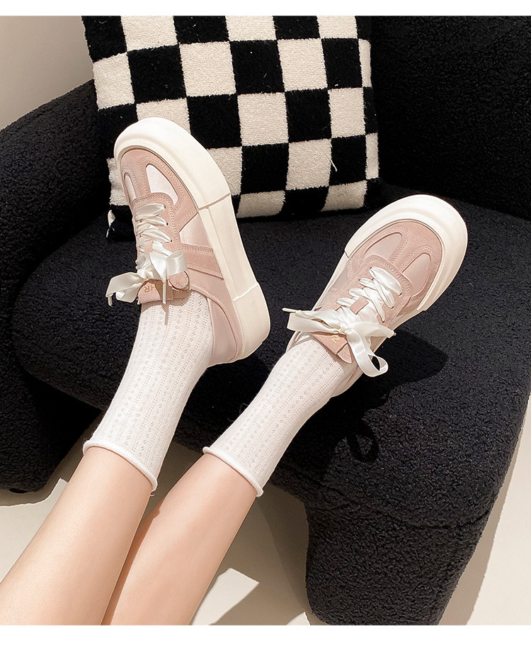 商品名称:【舒适软面】丝带设计厚底鞋女春秋款德训鞋女休闲鞋女款百搭女鞋 448256