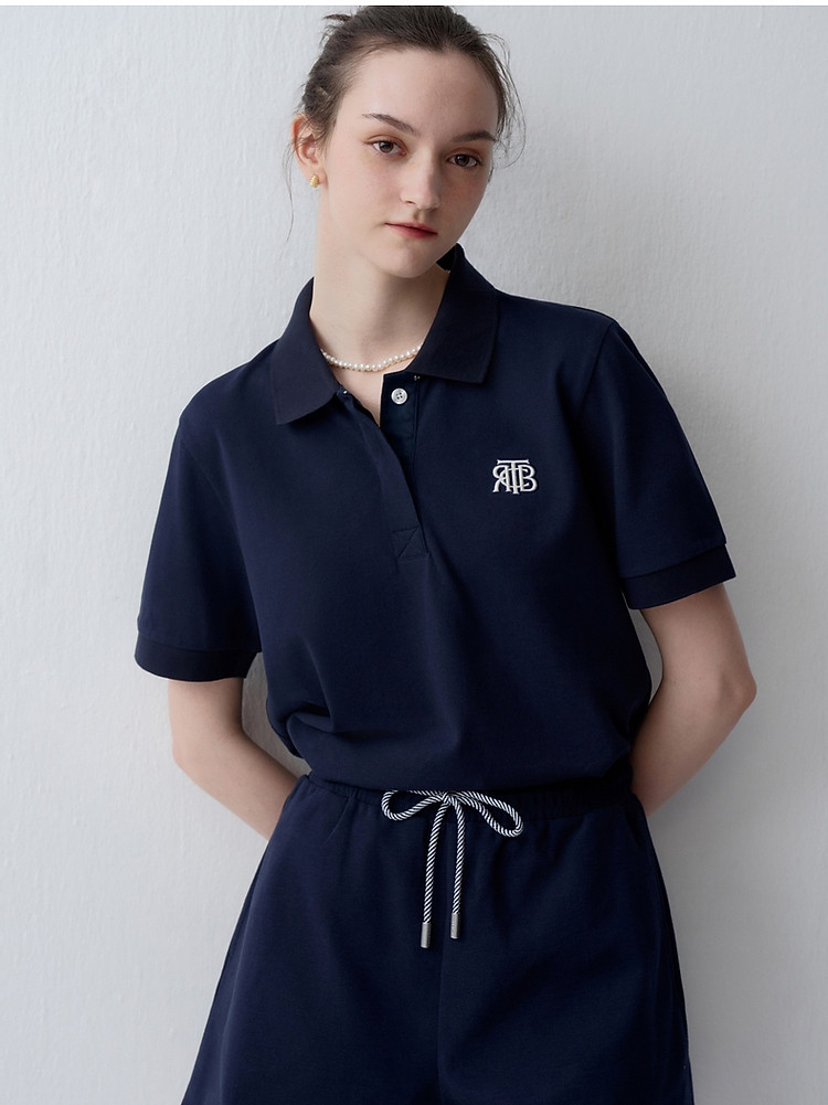 POLO衫女夏季简约休闲刺绣翻领短袖T恤上衣女 791425