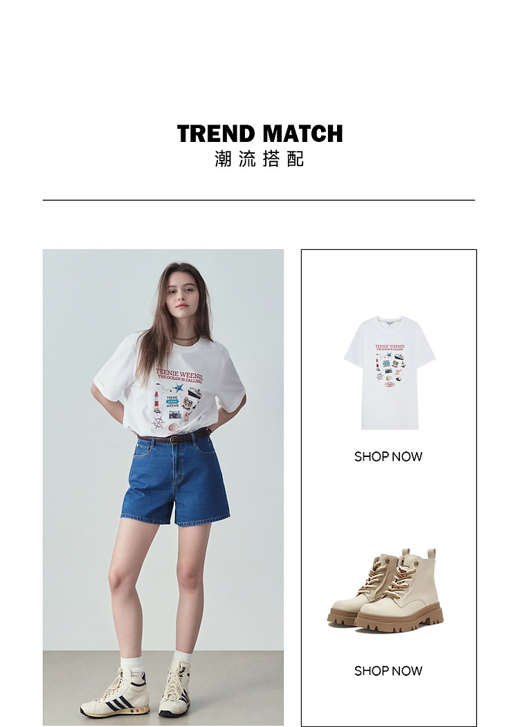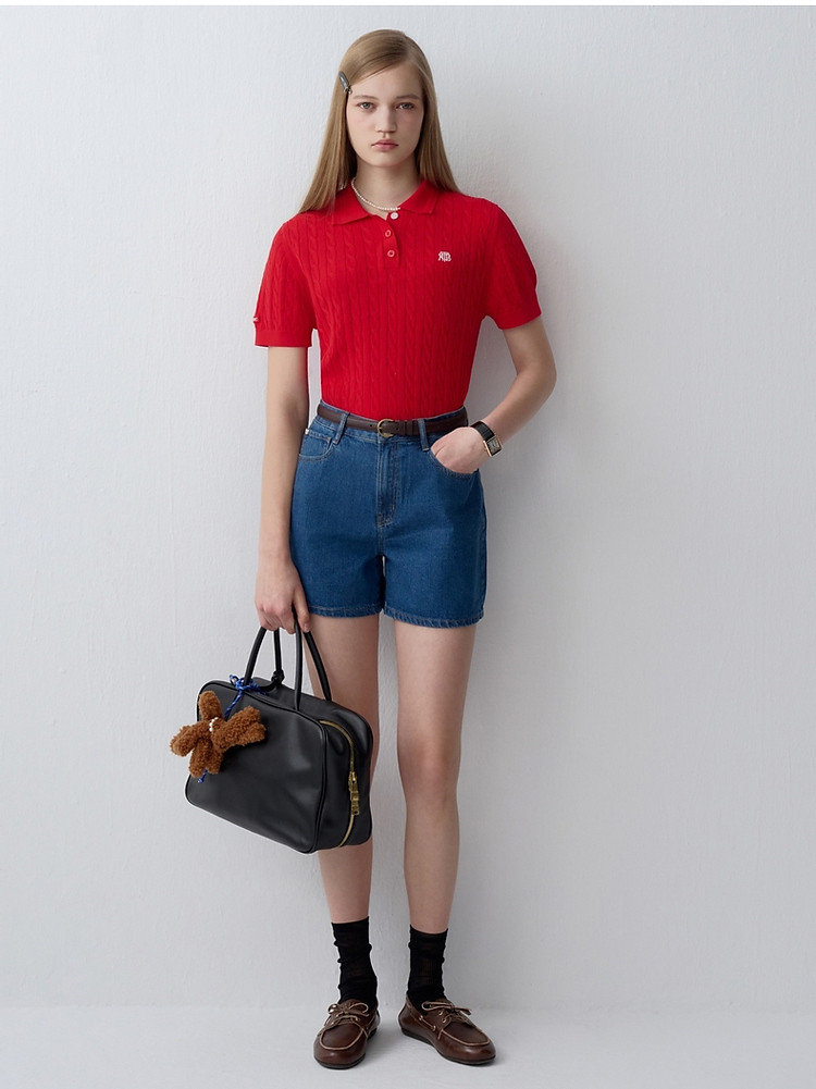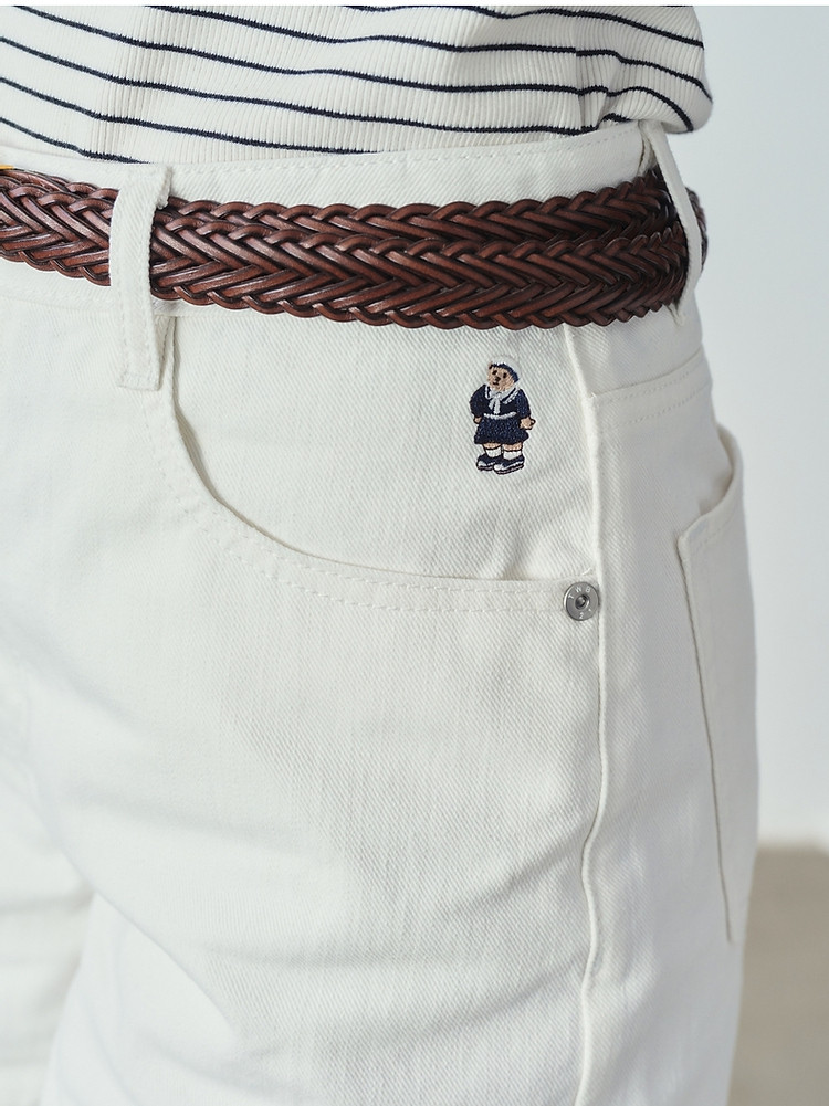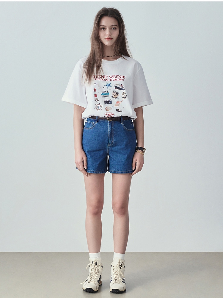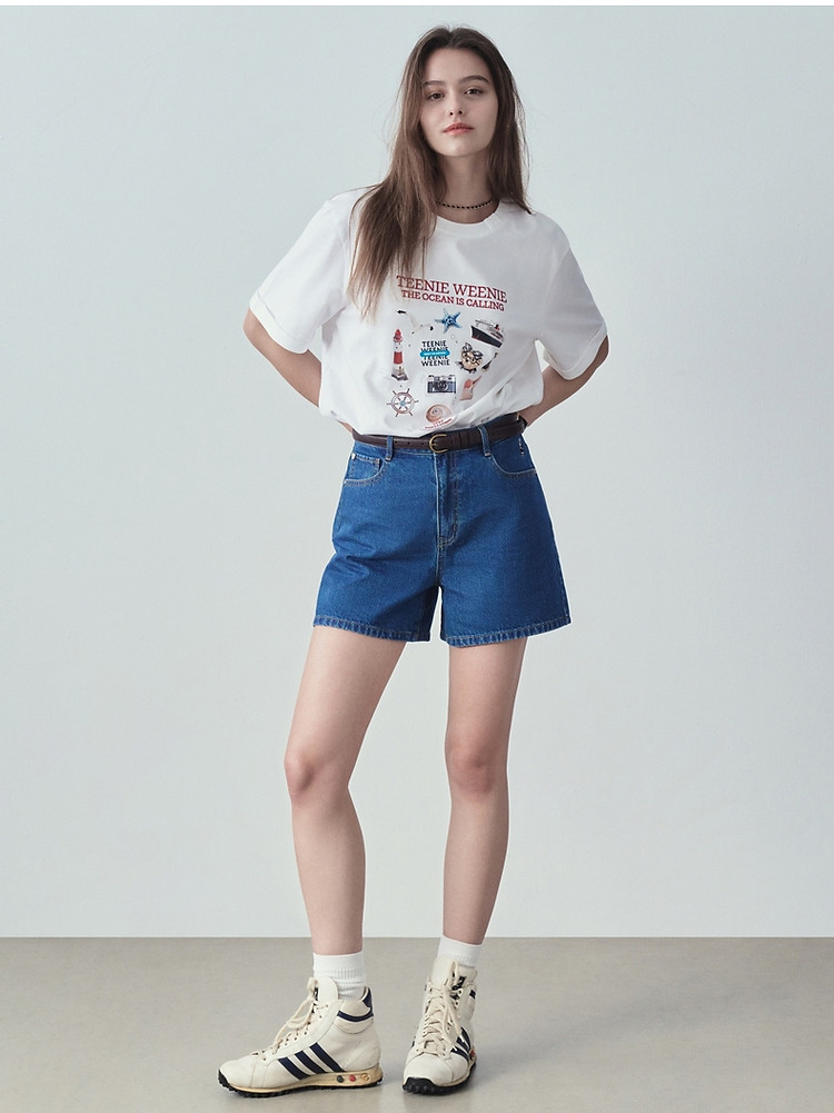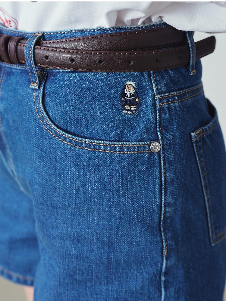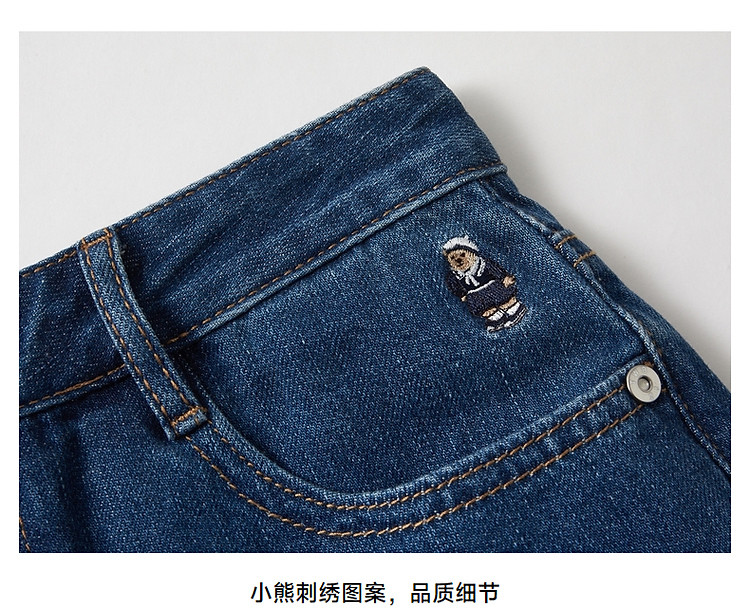 小熊夏季款高腰牛仔裤中裤短裤宽松时尚女士 013377