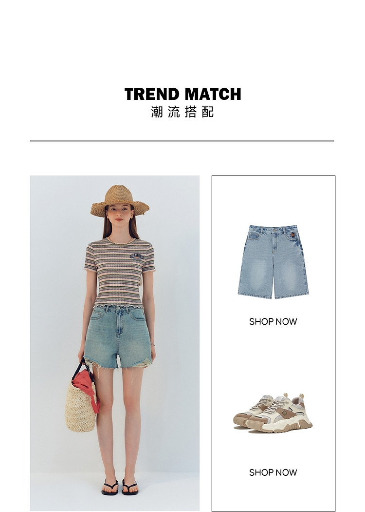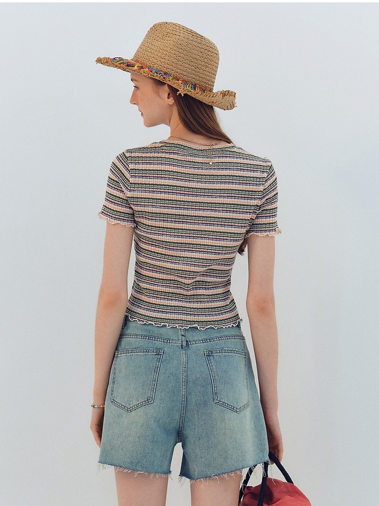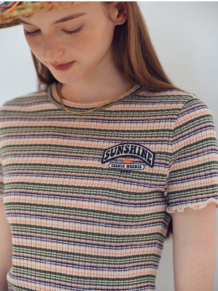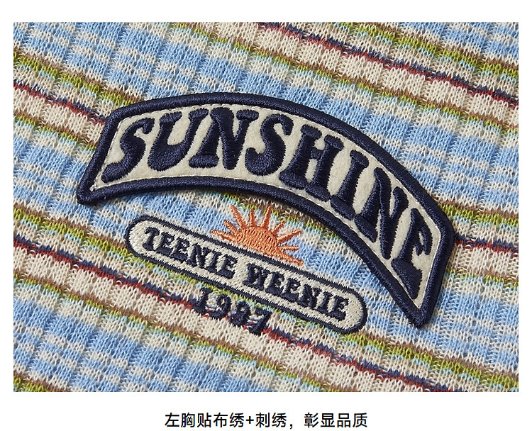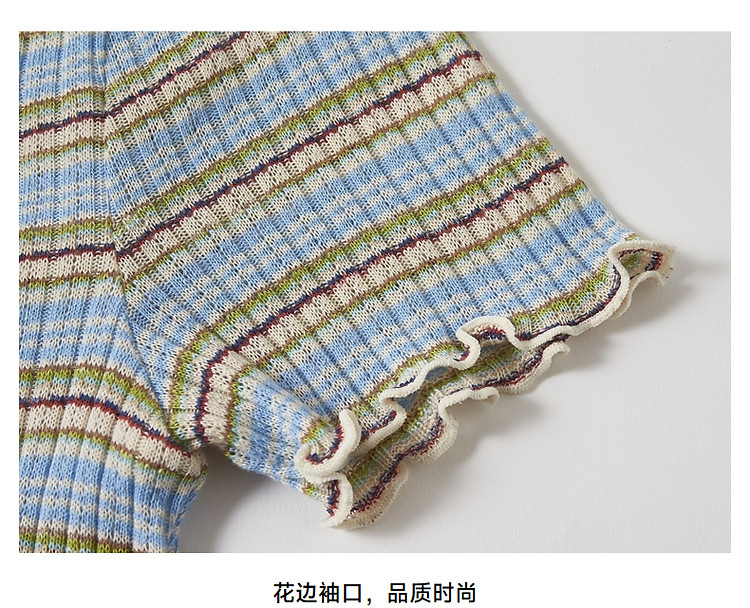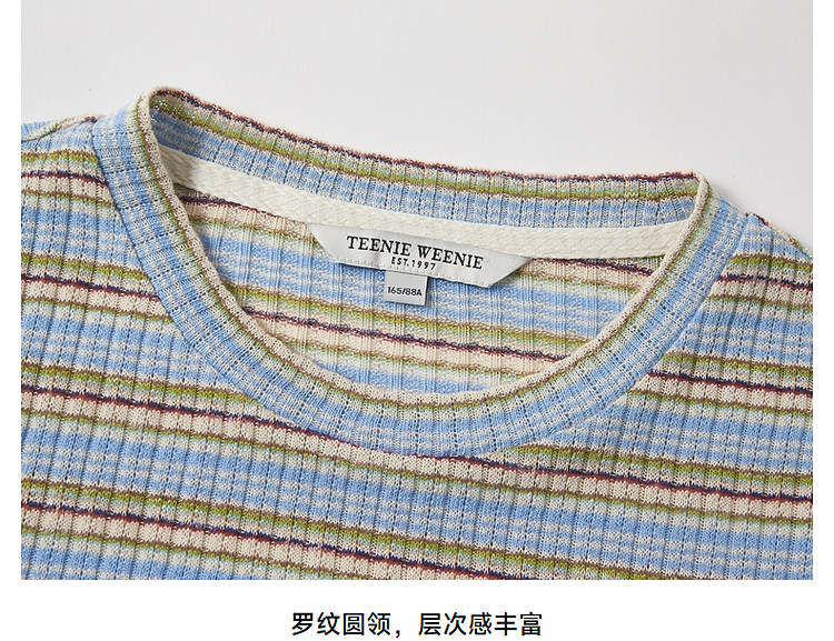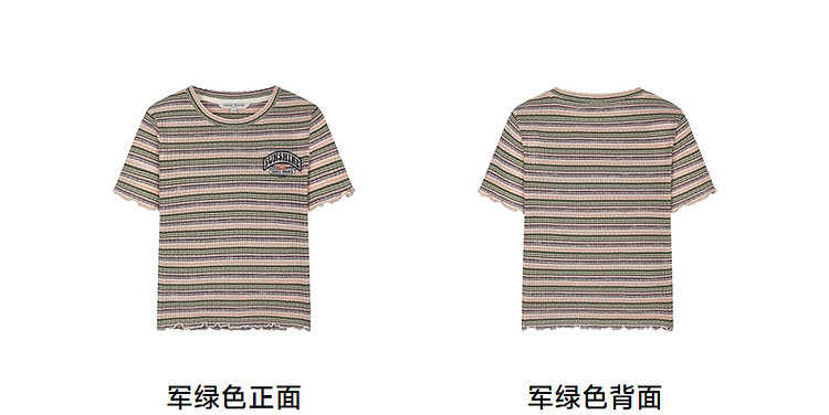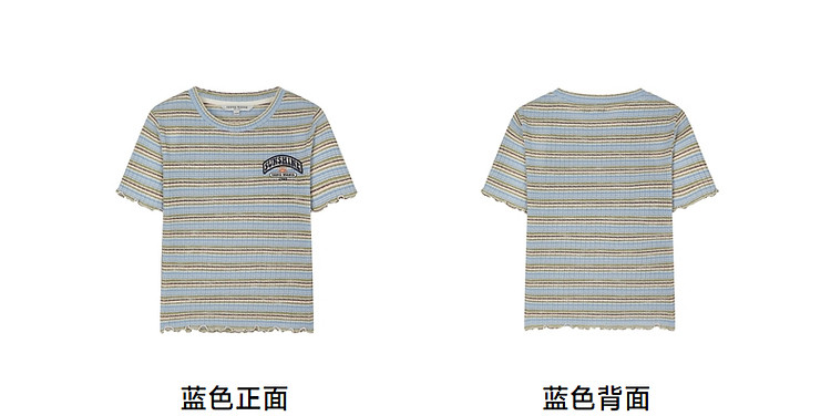 商品名称:小熊夏季简约撞色条纹短款短袖T恤基础款复古时髦女 368641